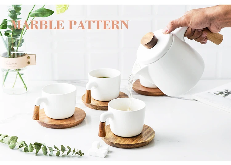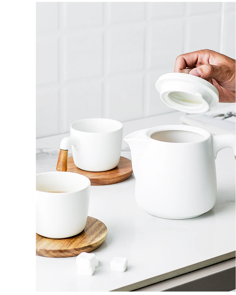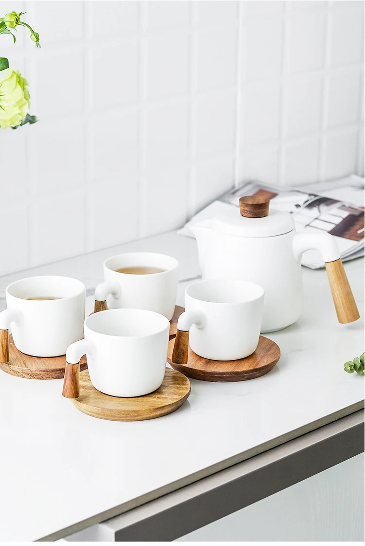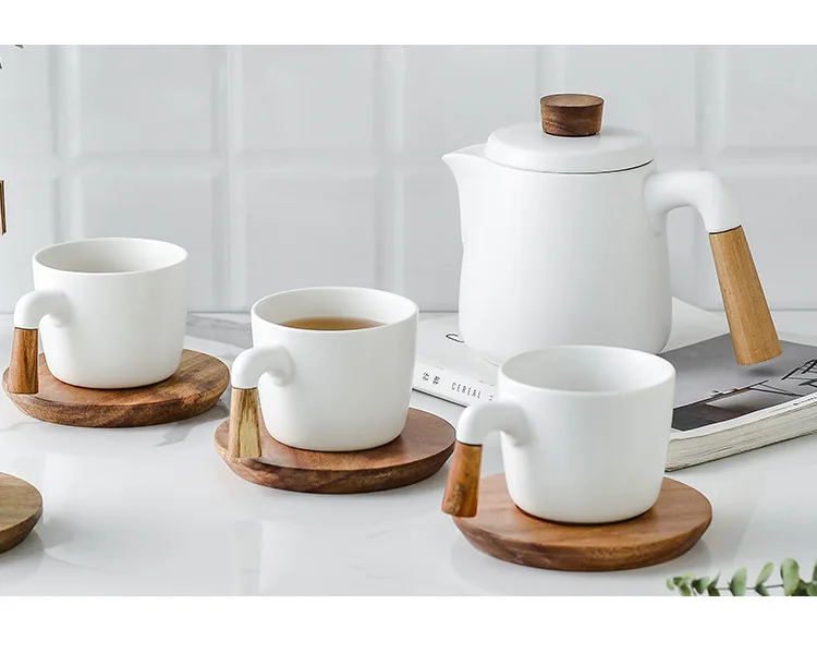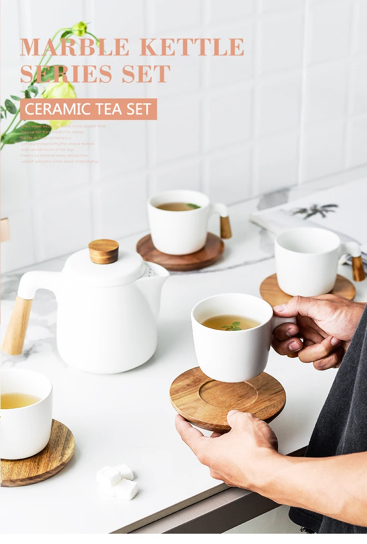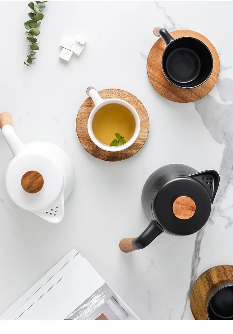 Japanese Style Tea Set Wooden Handle Ceramic Tea Pot Thickened High Borosilicate Glass Transparent Heat Resistant Tea Pot
