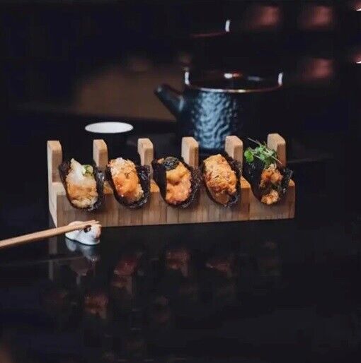 Japanese Sushi Rack Wooden Taco Snack Tray Food Holder Plate Cuisine Stand Decor