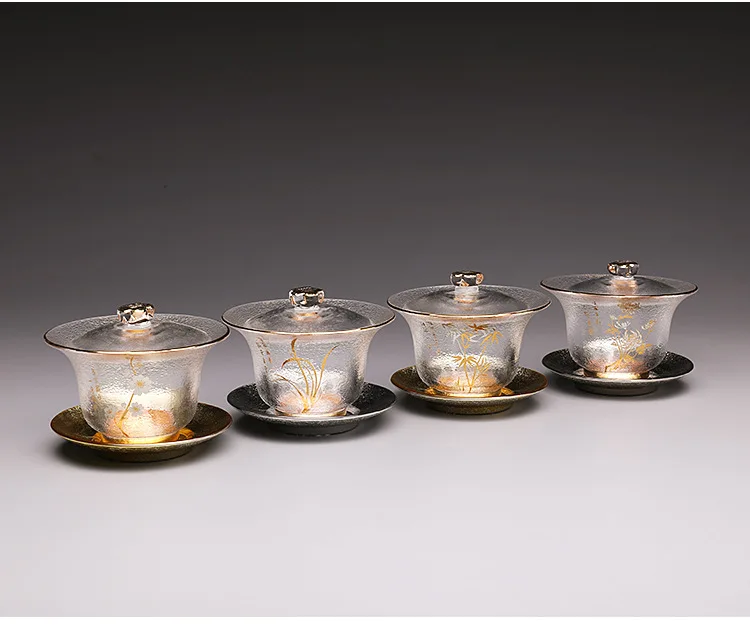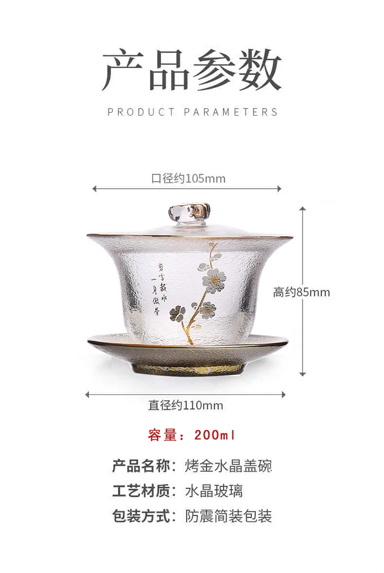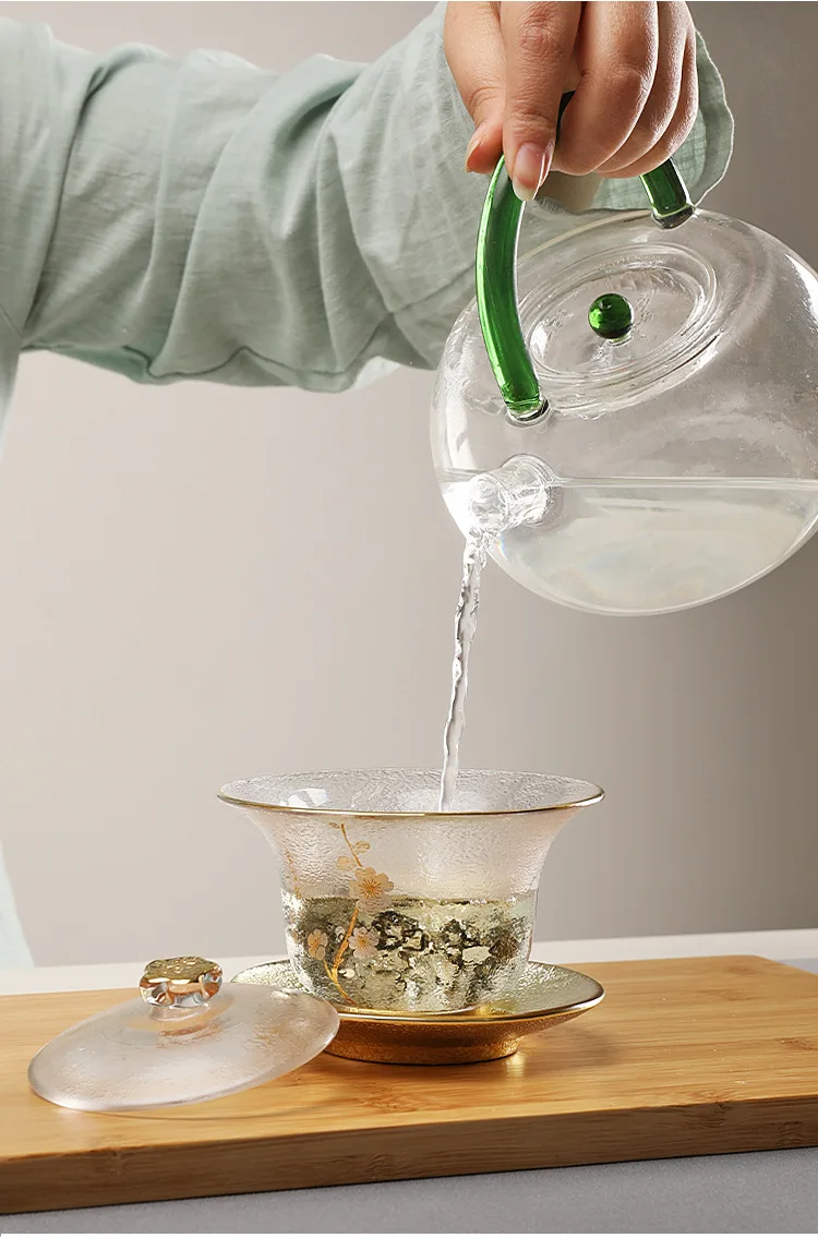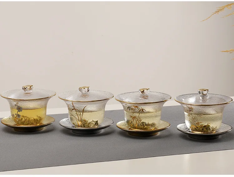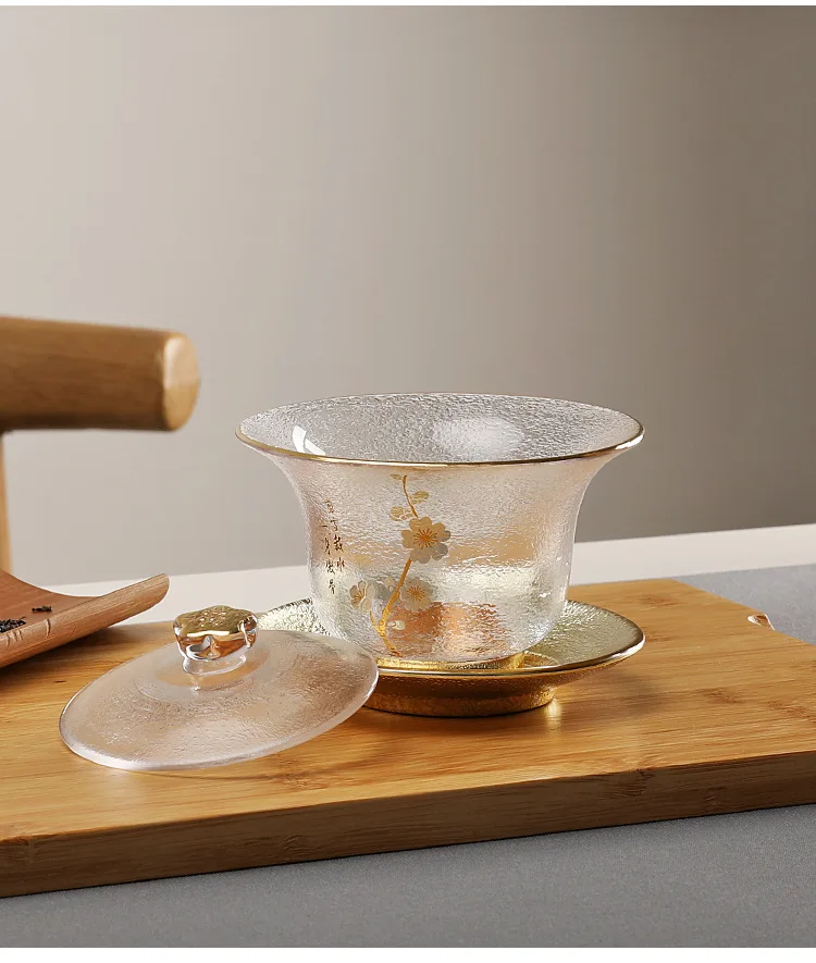 Japaness Glass Transparent Gaiwan Tea Cup Gongfu Tea Set Sancai Tea Bowl Heat-resistant Cover Bowl Tea Cup Teaware