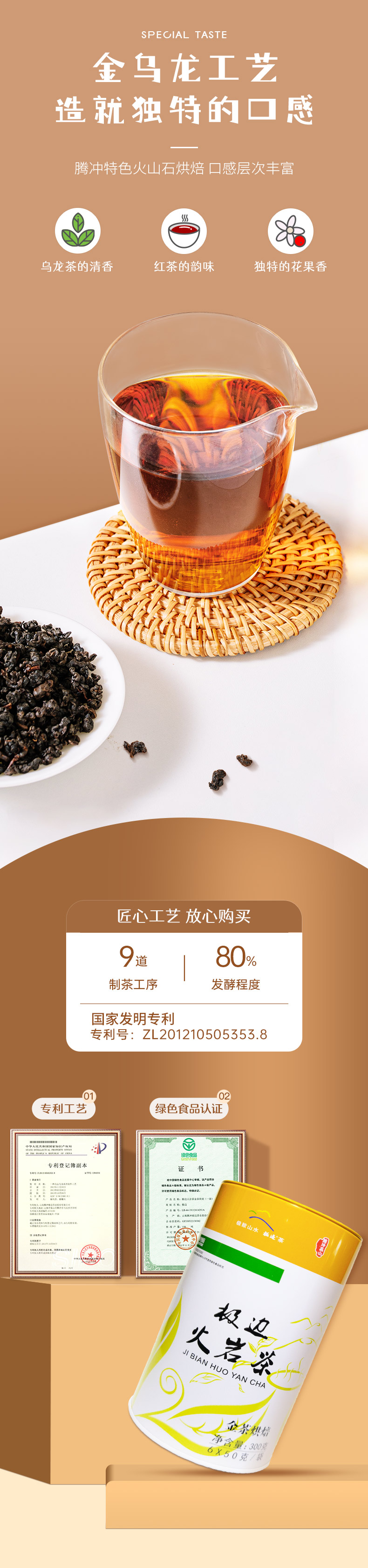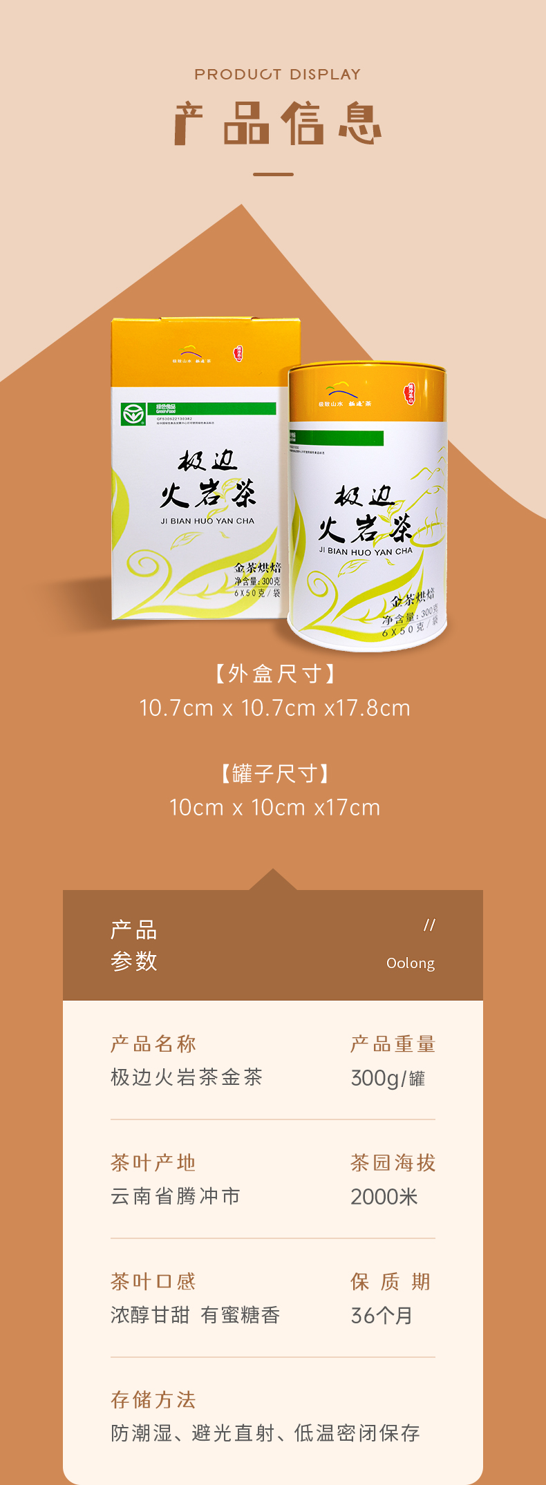 Tea Name: HUO YAN CHA JIN CHA Roasted Yunnan Organic High Mountain Oolong Tea 300g Box
