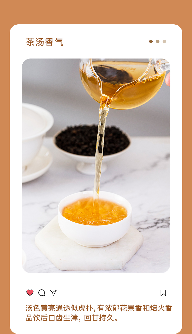 Dried tea leaves is strong, with a delicate aroma, yellow infusion, smells a string floral flavor, taste brisk and fresh, mellow, and a sweet mouth feeling back to your tongue lasts long.