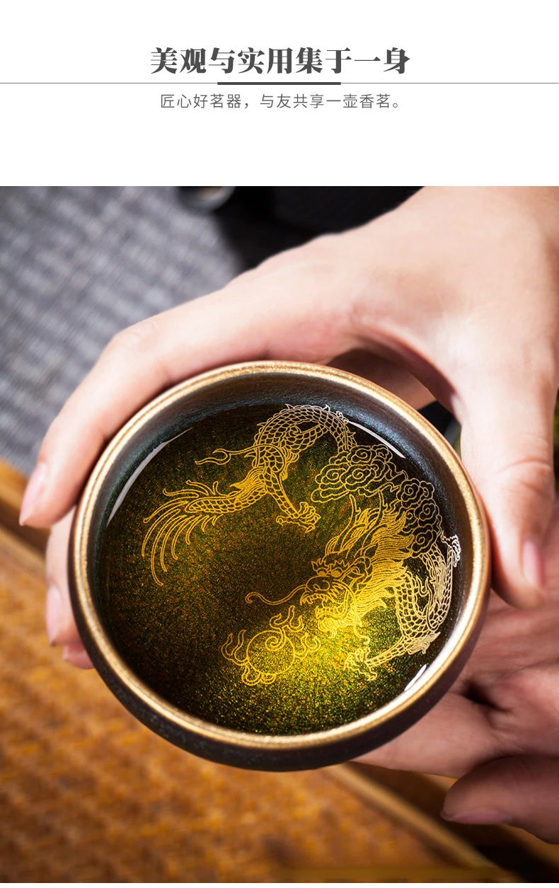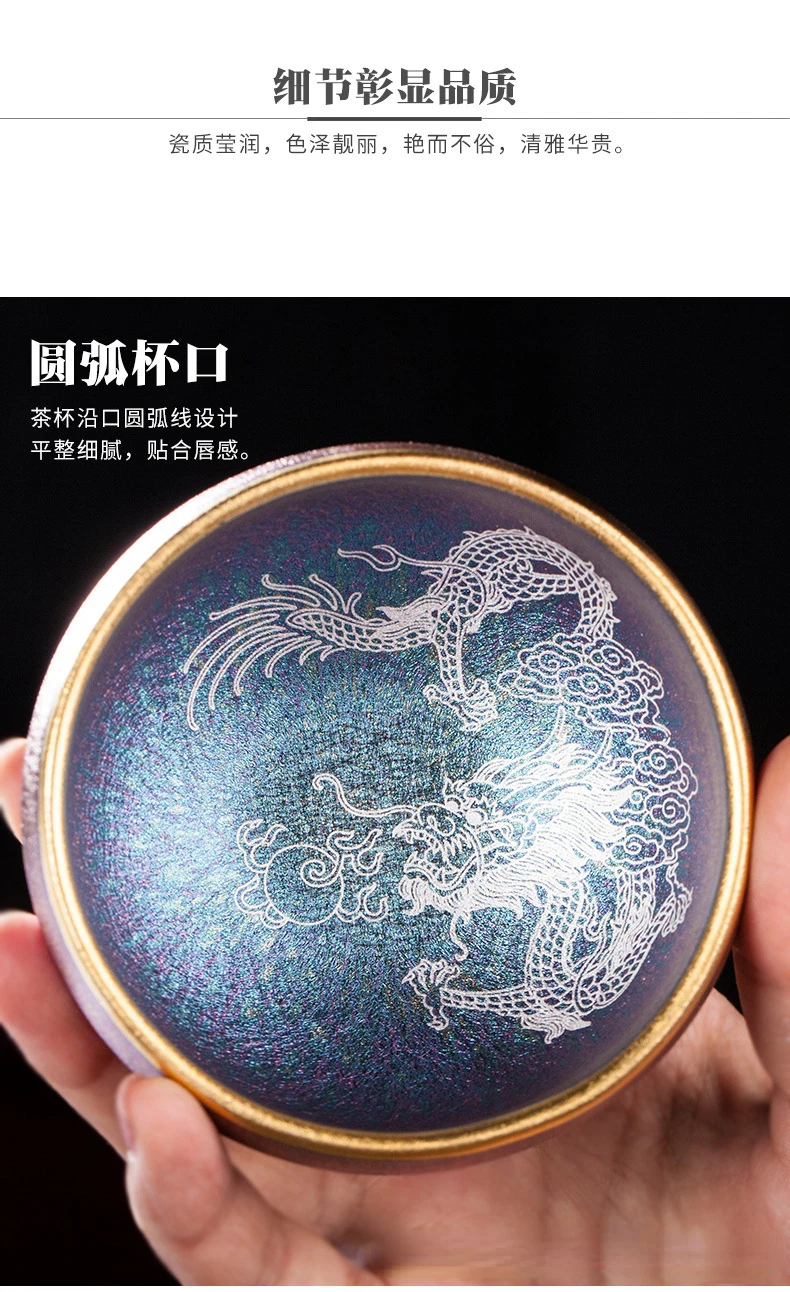 Jianzhan Gilt Tea Cup Kung Fu Tea Set Ceramic Tea Cup Hand-painted Silver Teacup Master Cup Tea Bowl Chinese Wedding Tea Set