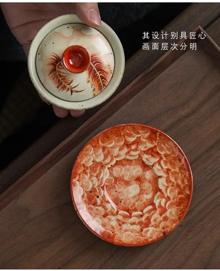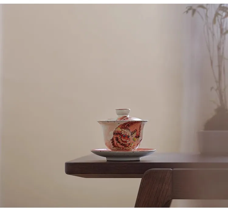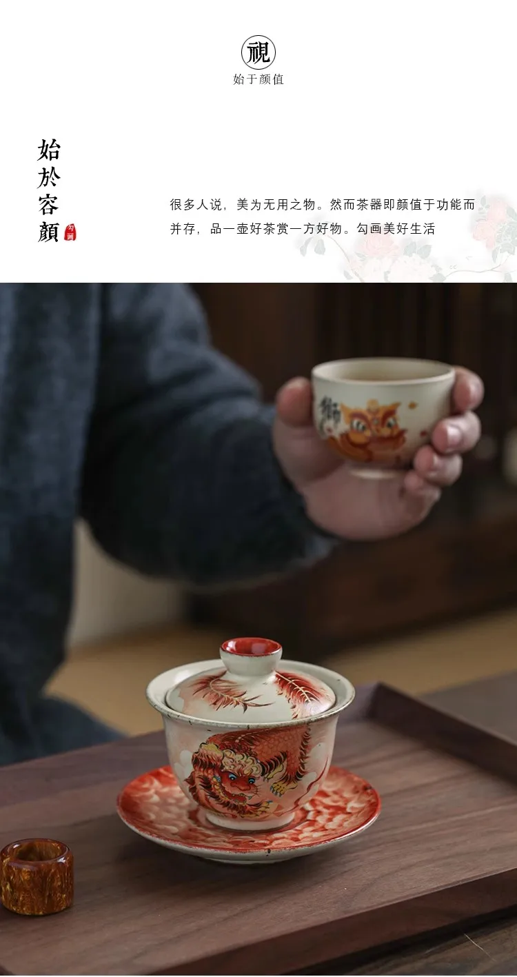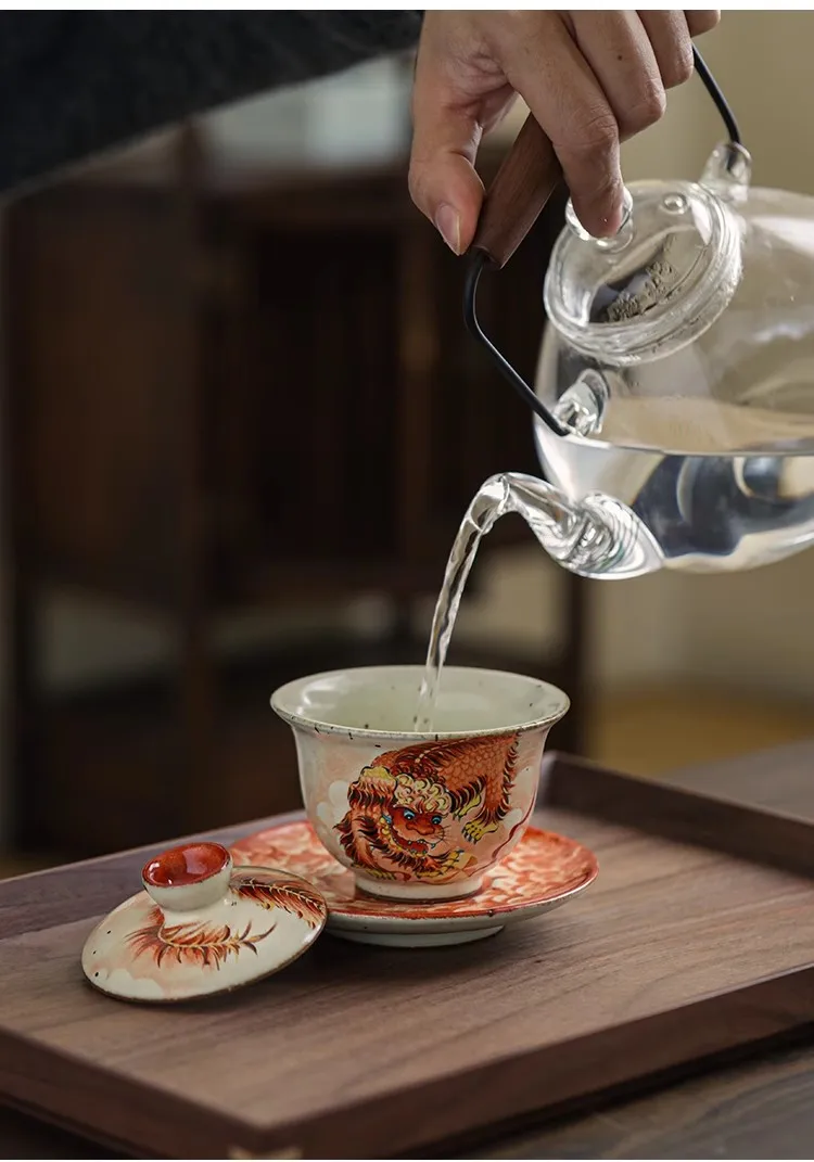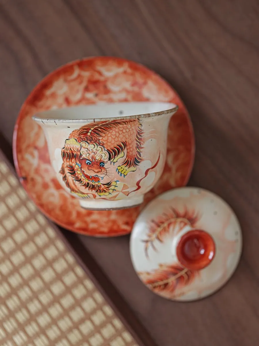 Hand-painted Ceramic Lion Rough Pottery Sansai Gaiwan Palace Style