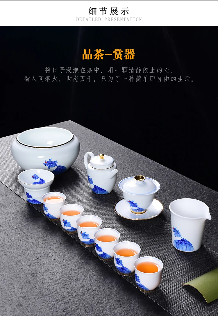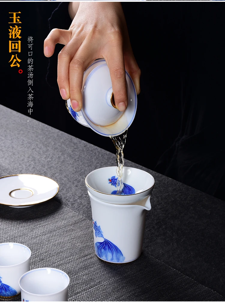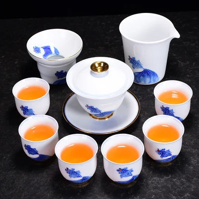 Jingdezhen Ceramic Tea Sets White Jade Porcelain Teapot High Grade Home Teacups Kung Fu Green Tea Oolong Pu-erh Teaware Gift Box