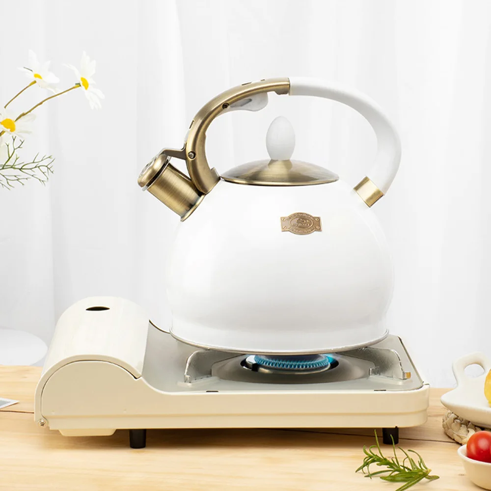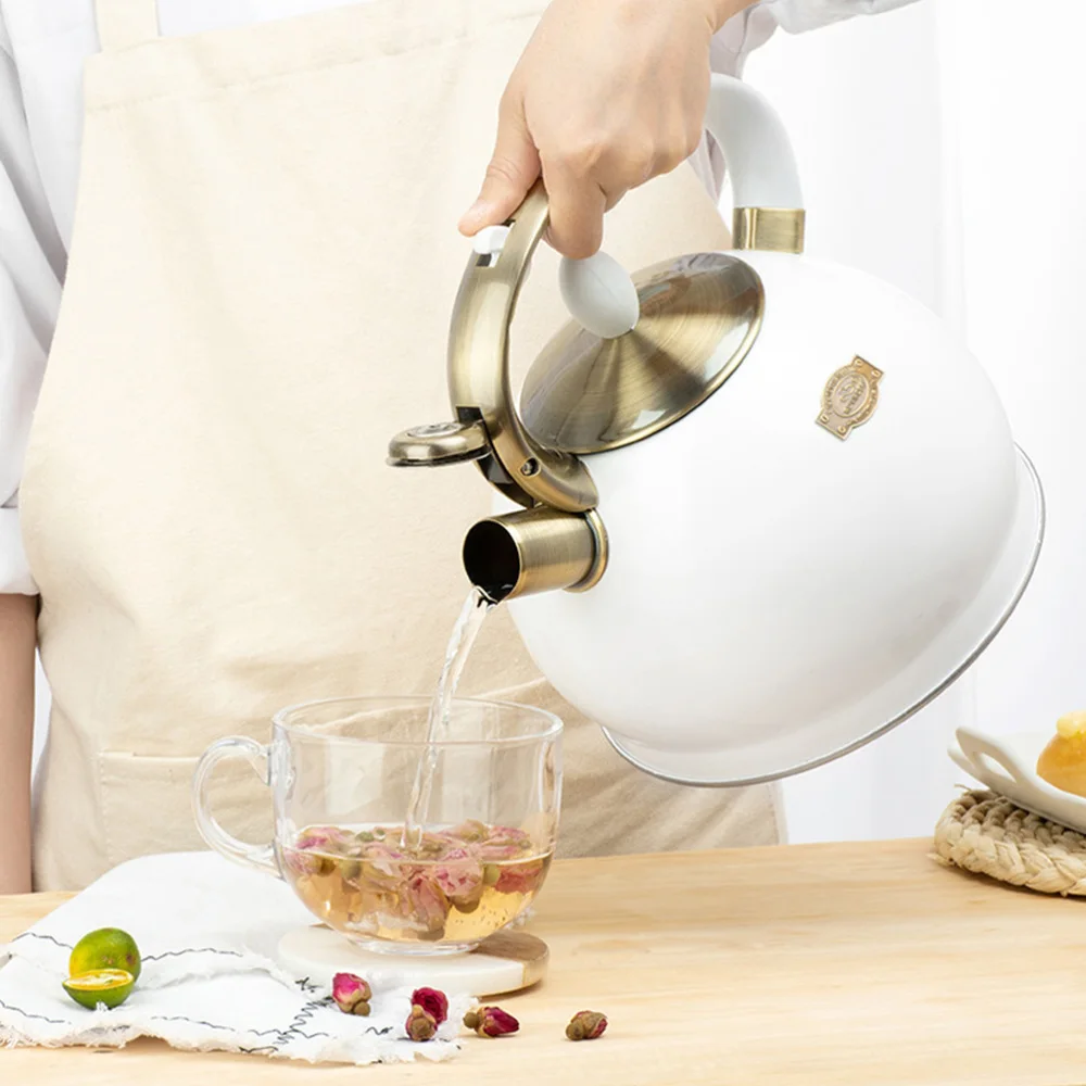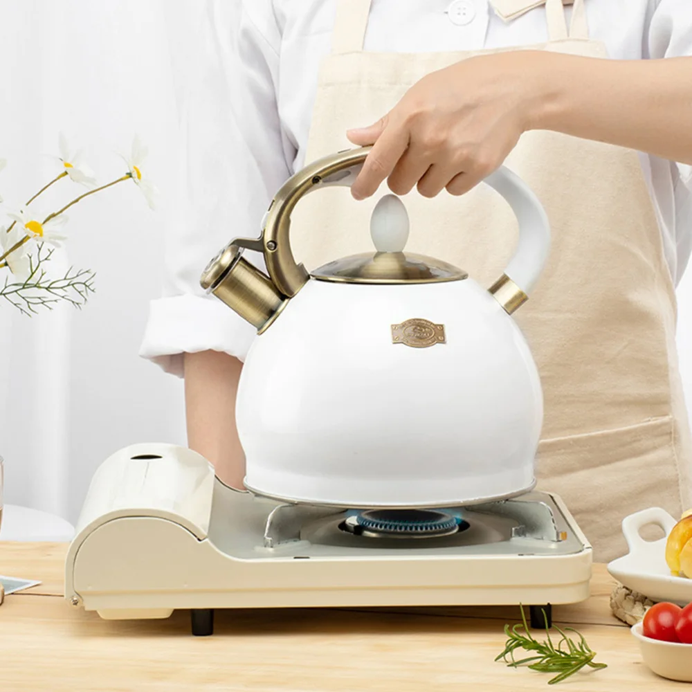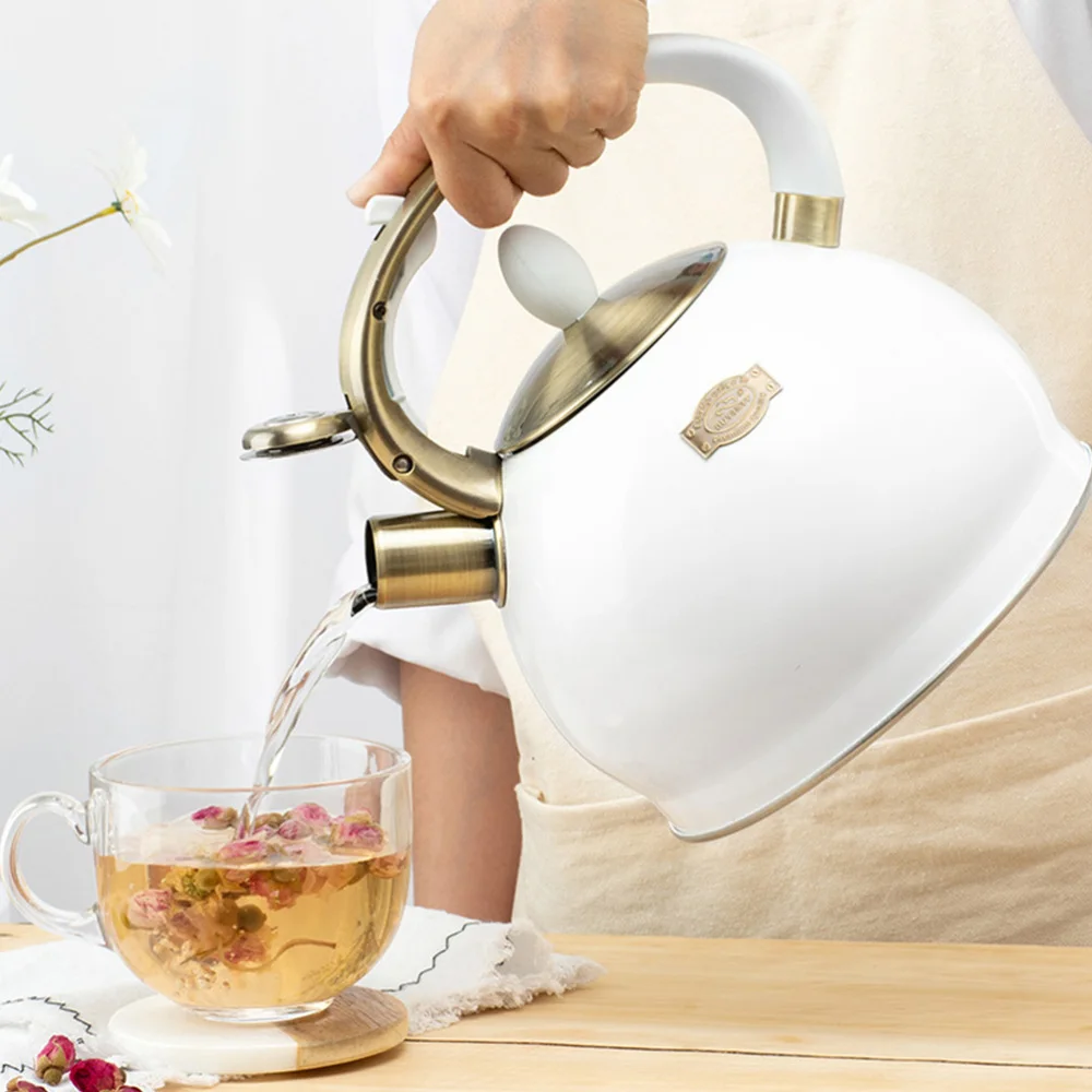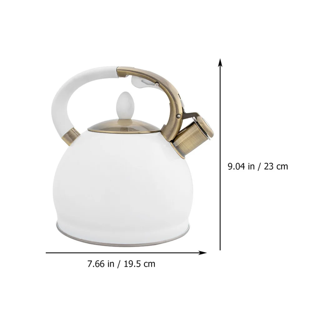 This item is a whistling water kettle manufactured with premium stainless steel and silicone material, so it can serve you for a long time. Fine craftsmanship ensures its durability and practicability. It is perfect for you to heat water, which boils water very quickly, reducing waiting time.