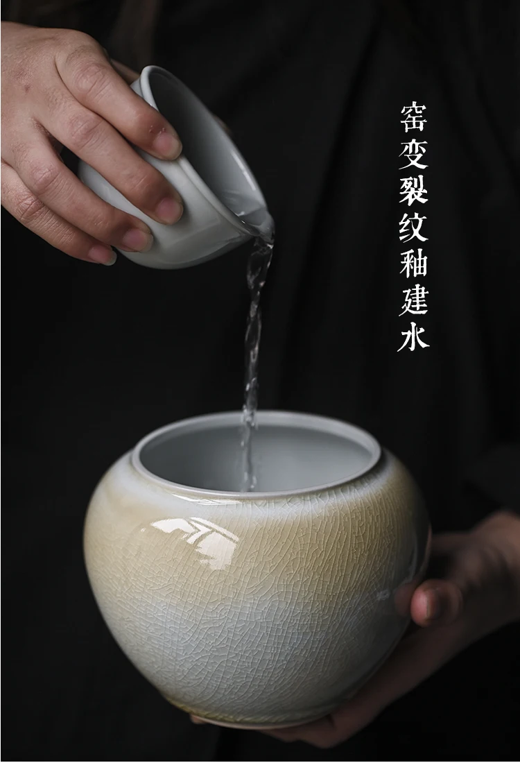 kiln change Kungfu Jianshui ceramics household ice crack glaze slag bucket water bowl tea slag jar wash tea cup bowl