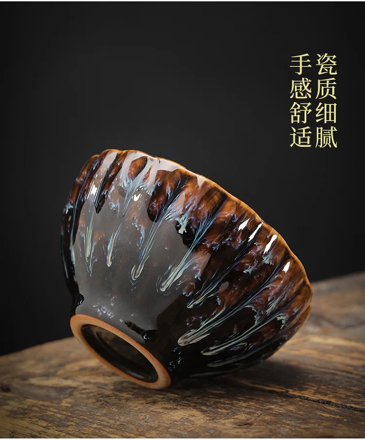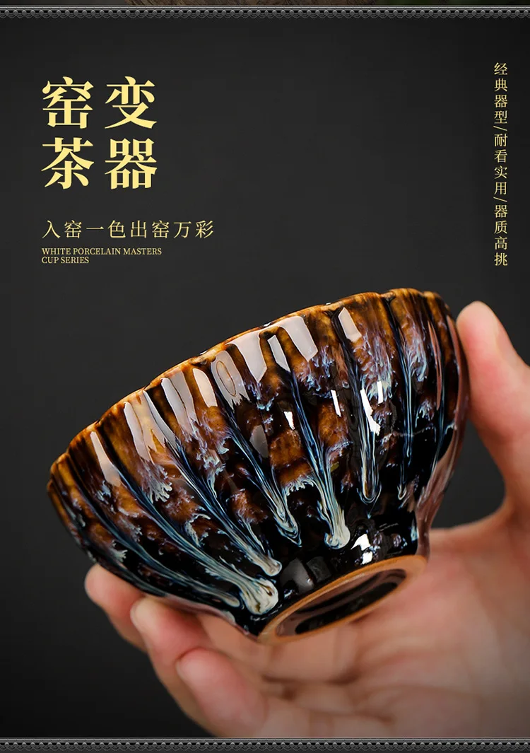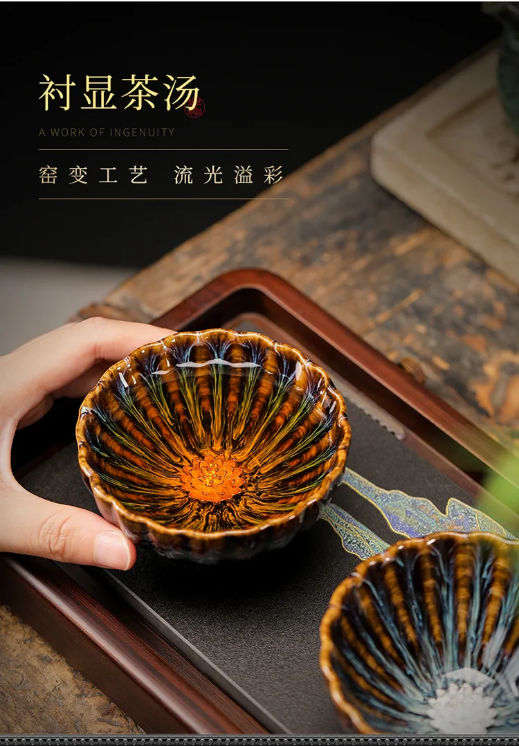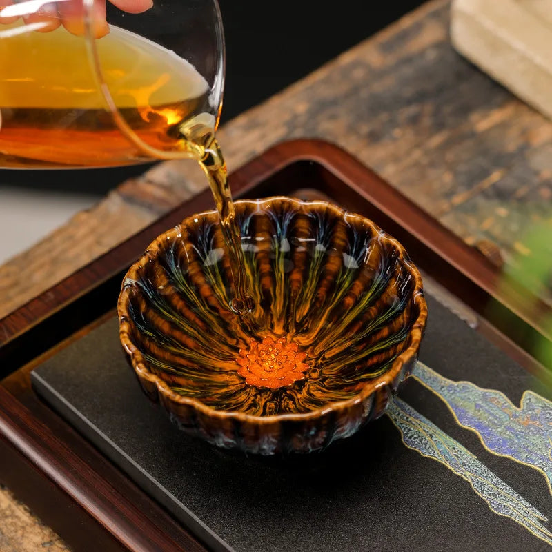 Kiln Transformation Tea Cup Temmoku Glaze Ceramic Tea Cup Inlaid Lotus Chinese Kung Fu Tea Set Jianzhan Teacup Tea Bowl Teaware