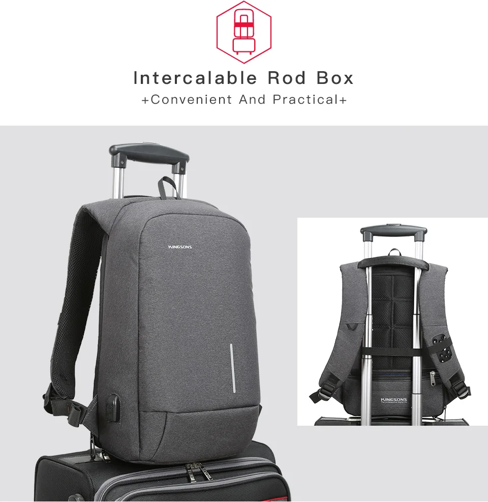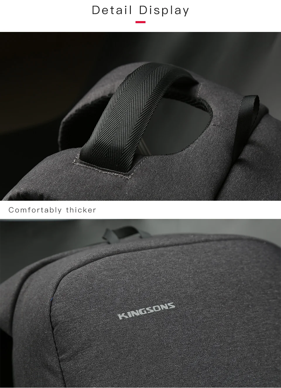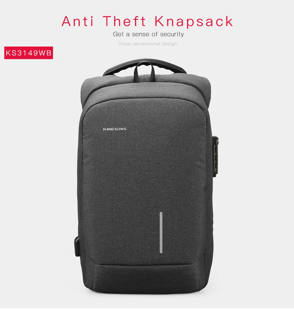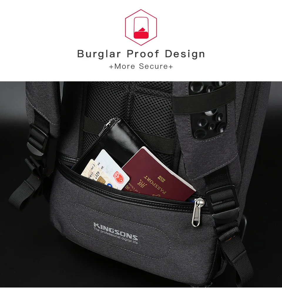 Kingsons Men's 13-17 Inch Laptop Backpack Simple Reflective Strips Fully open Shoulder Bag Waterproof Business Pack USB Charging