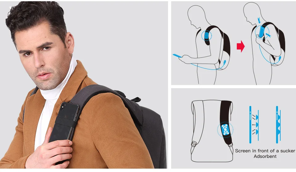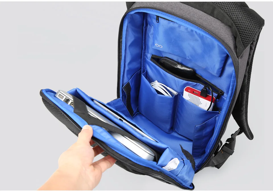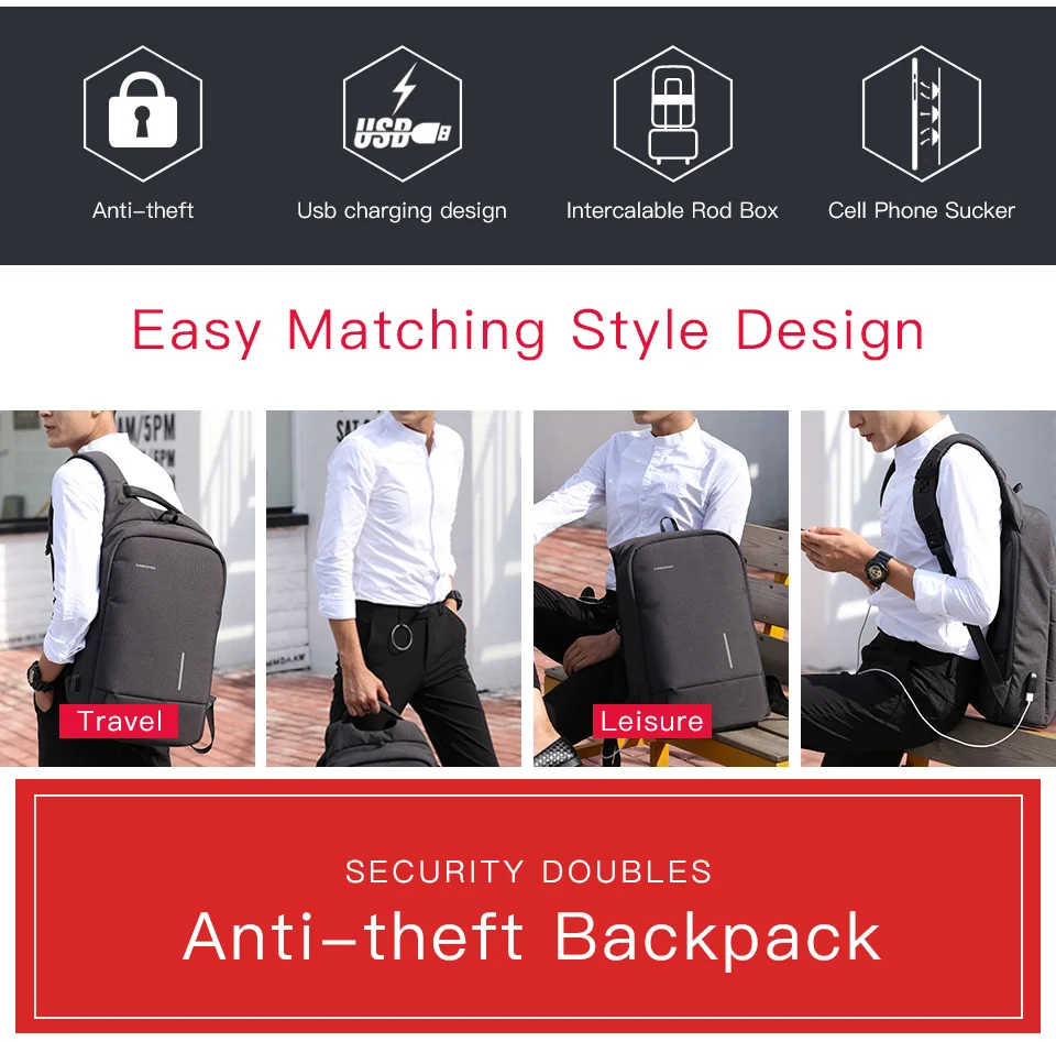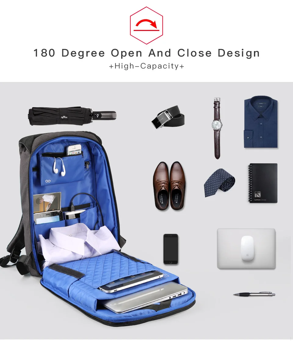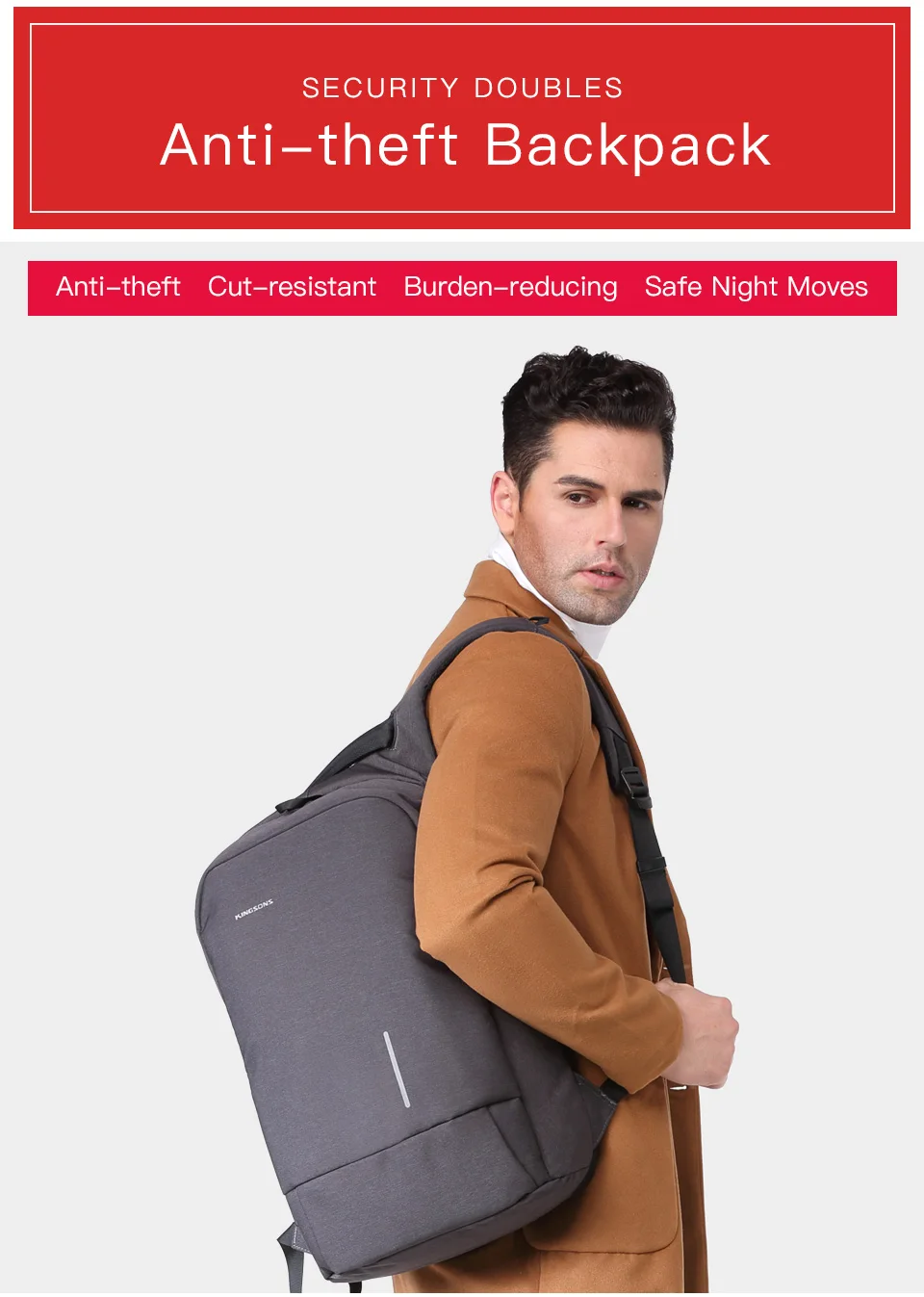 Kingsons Men's 13-17 Inch Laptop Backpack Simple Reflective Strips Fully open Shoulder Bag Waterproof Business Pack USB Charging