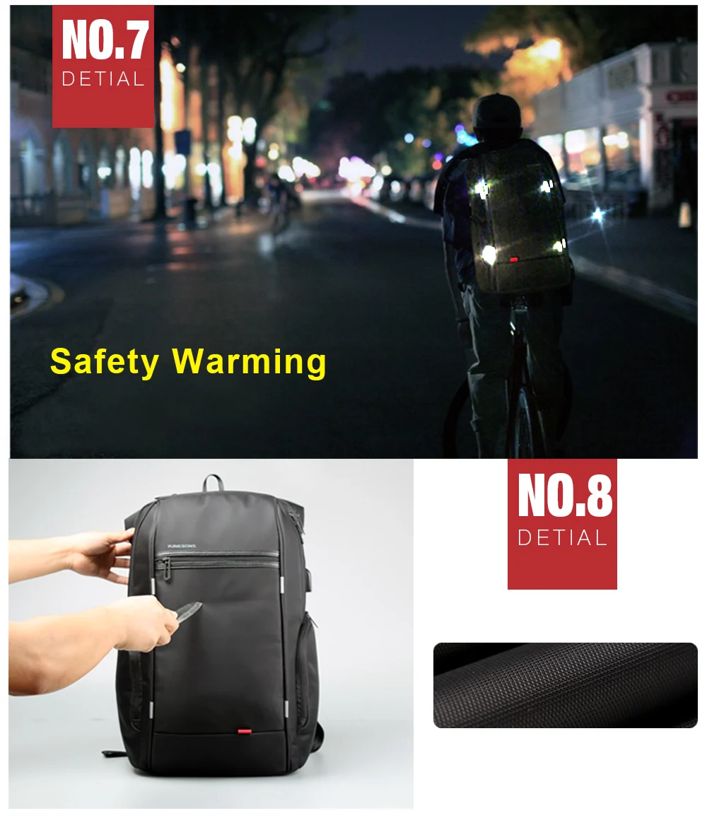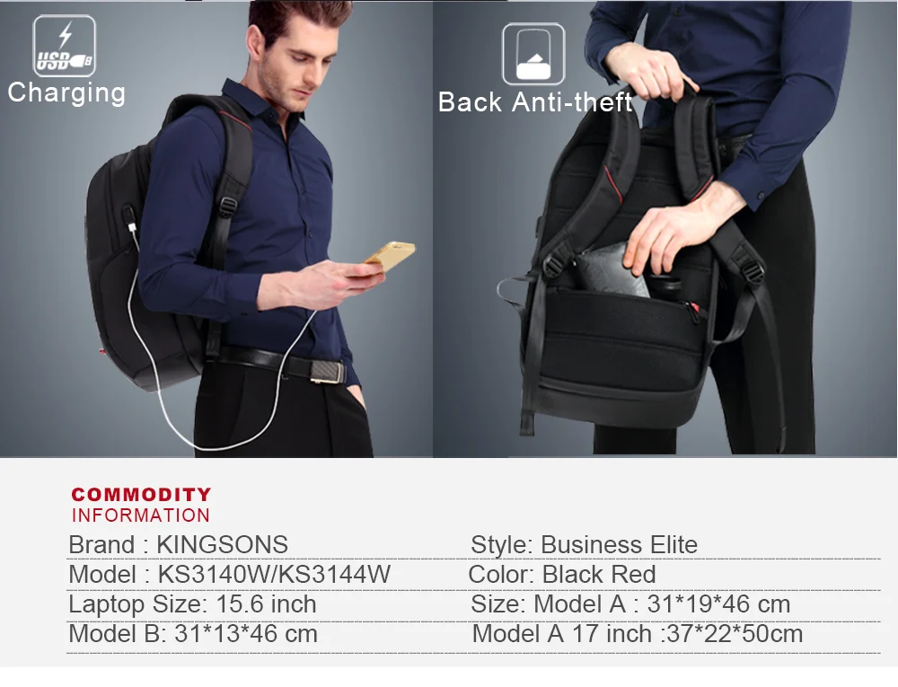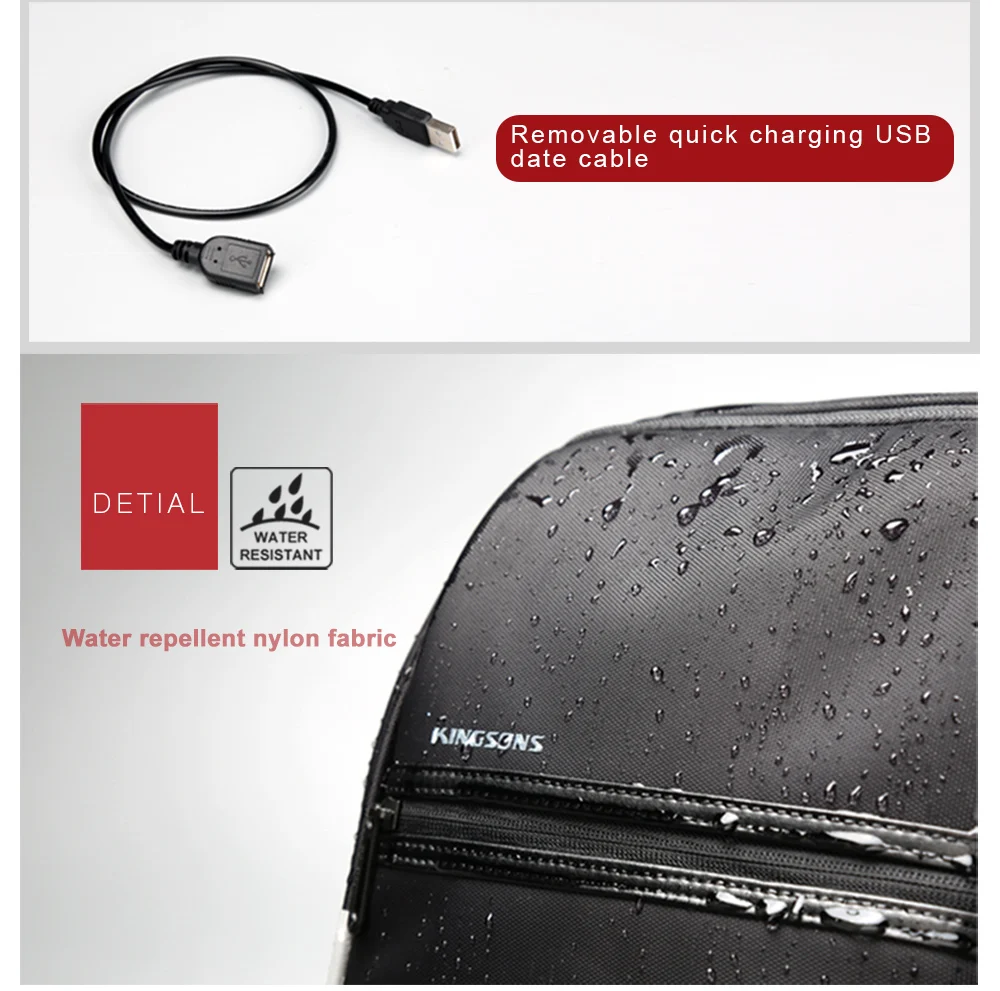 Kingsons Men 15.617.3 Inch Laptop Business Backpack Male Anti-theft Travel Bag USB Charging Waterproof Backpacks For Teenage