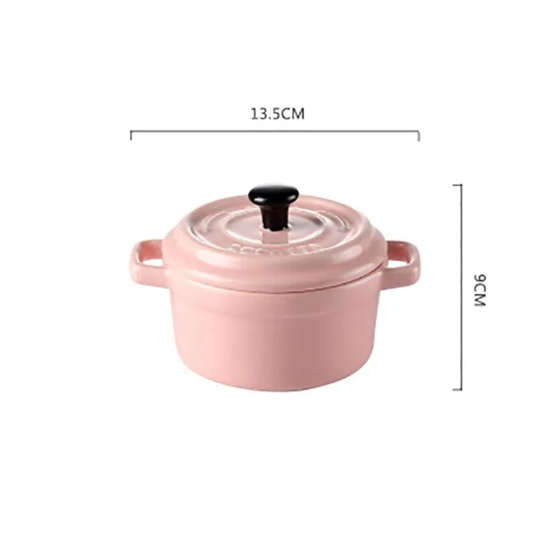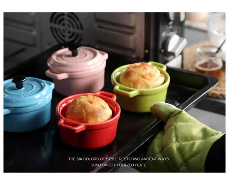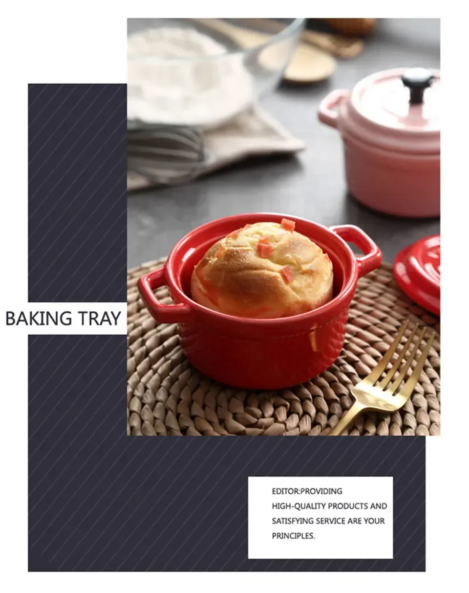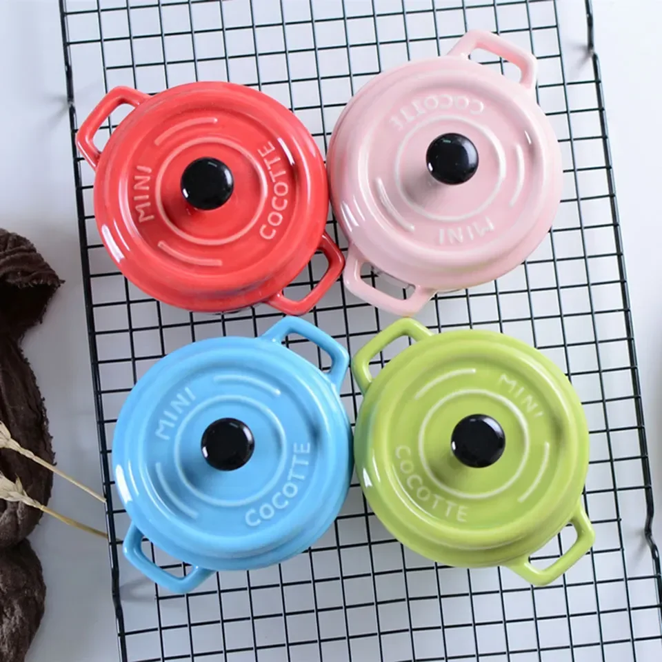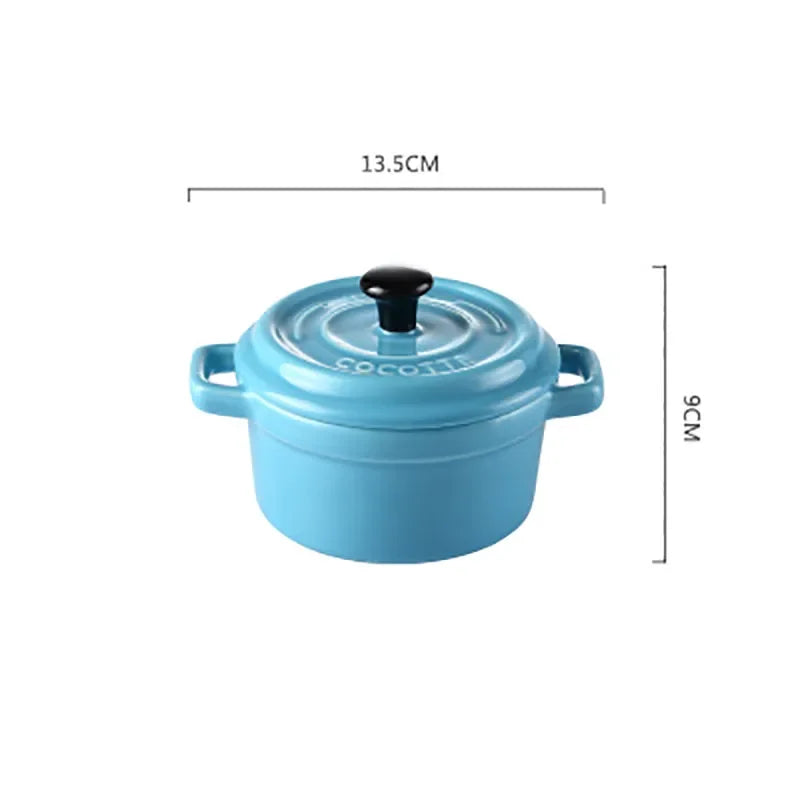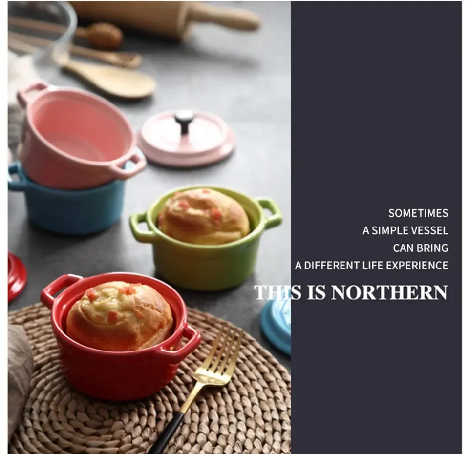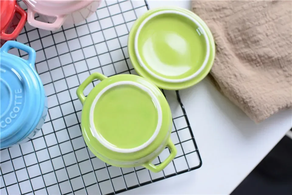 Kitchen Ceramic Bowls Soup Pot Double Ears Baking Bowl with Lid Microwave Oven Dessert Container Mini Casserole Home Cooking Pot