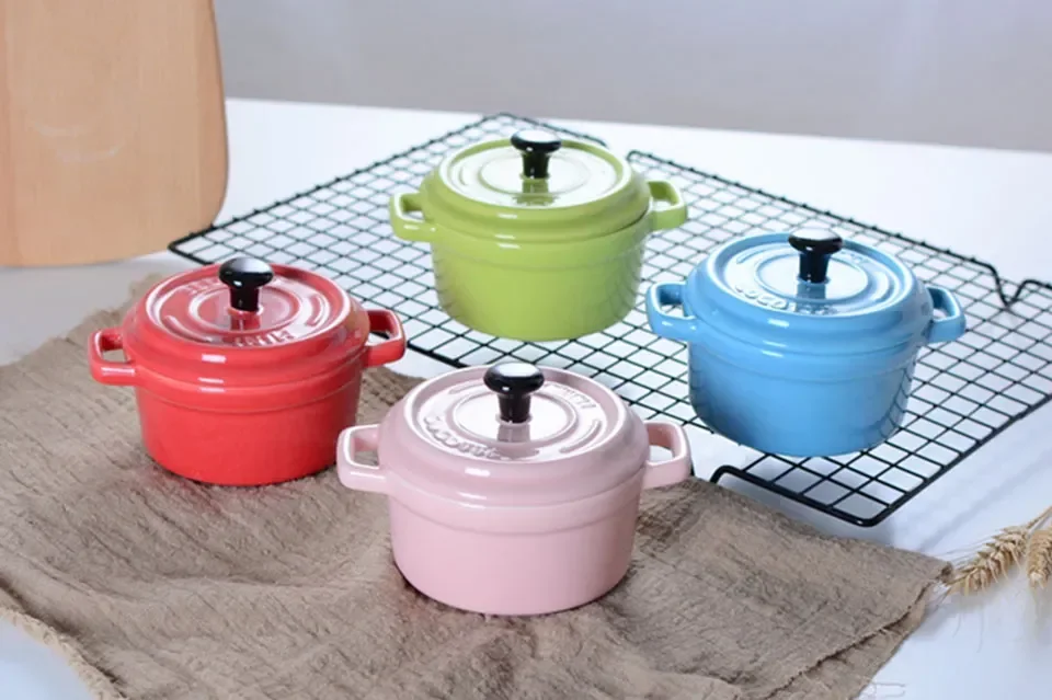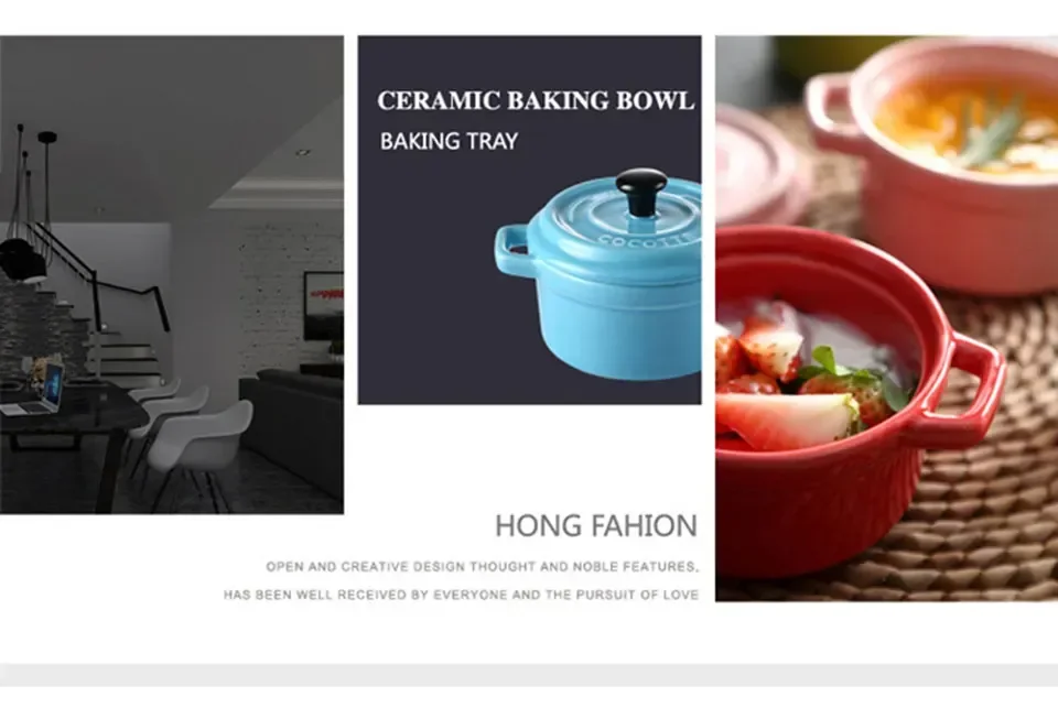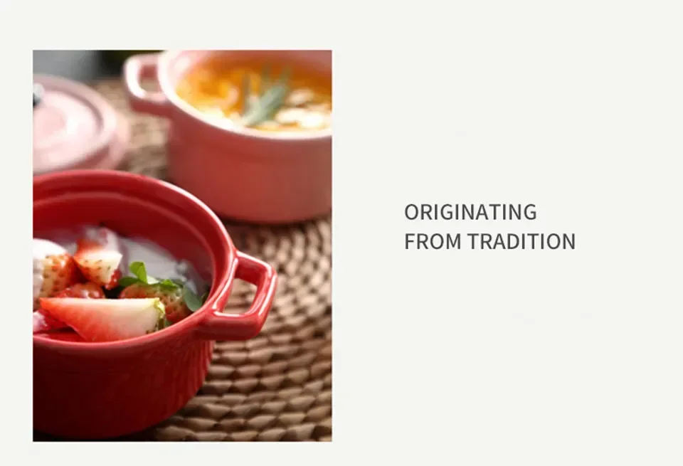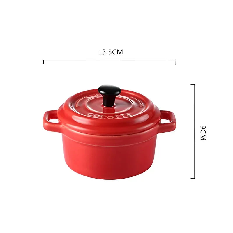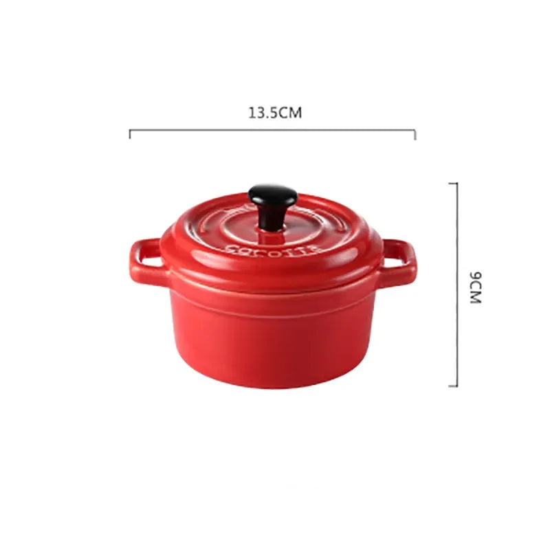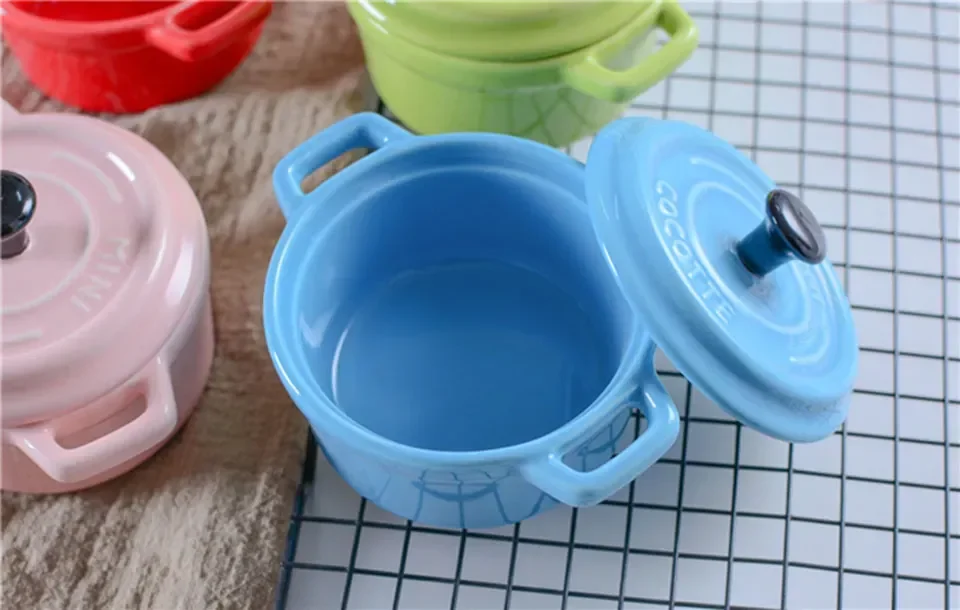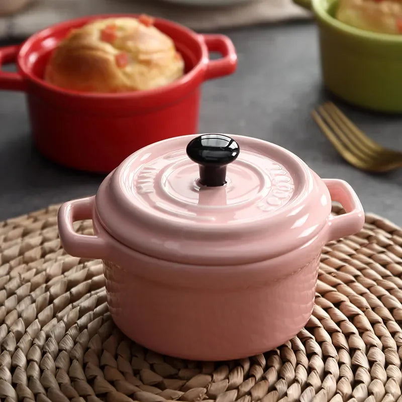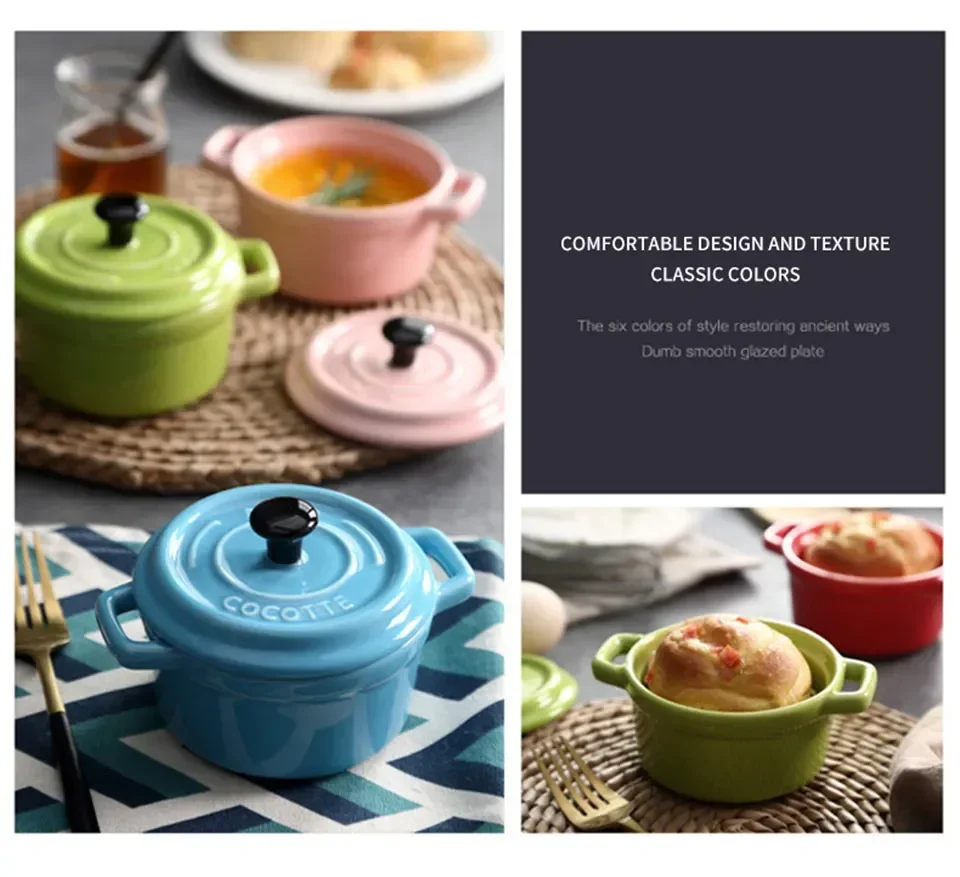 Kitchen Ceramic Bowls Soup Pot Double Ears Baking Bowl with Lid Microwave Oven Dessert Container Mini Casserole Home Cooking Pot