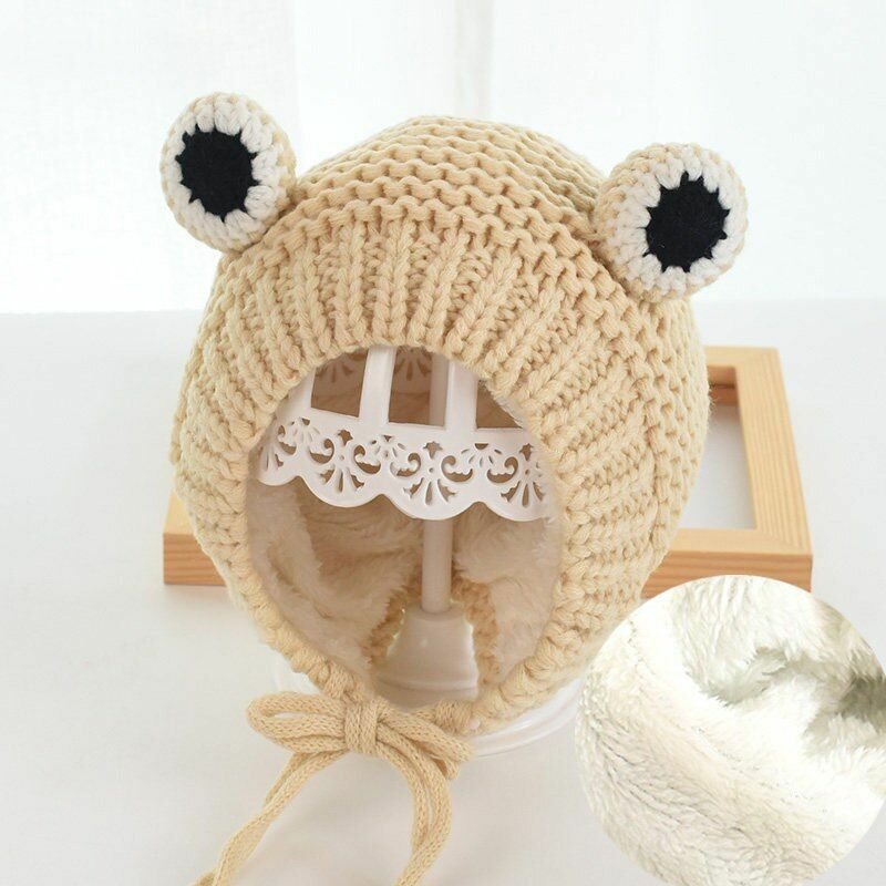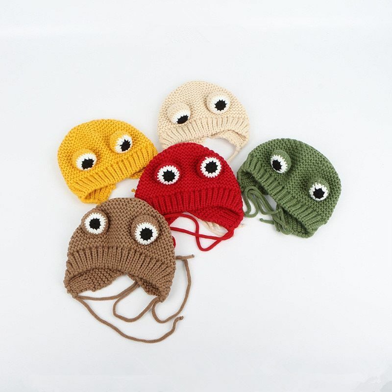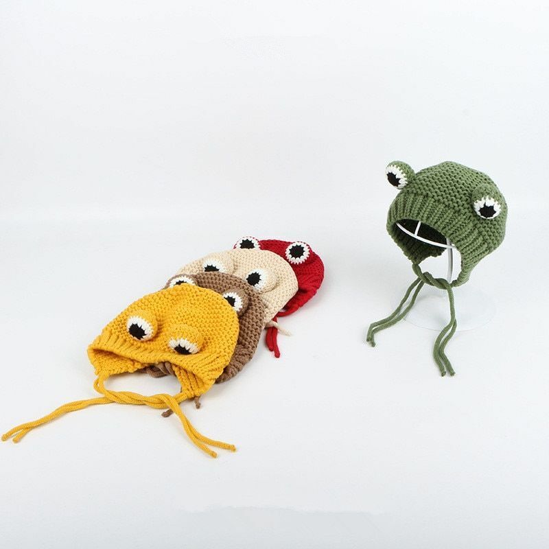 Knitted Hat Solid Color Cartoon Frog Winter Warm Skullies Cap Beanie Kids Unisex