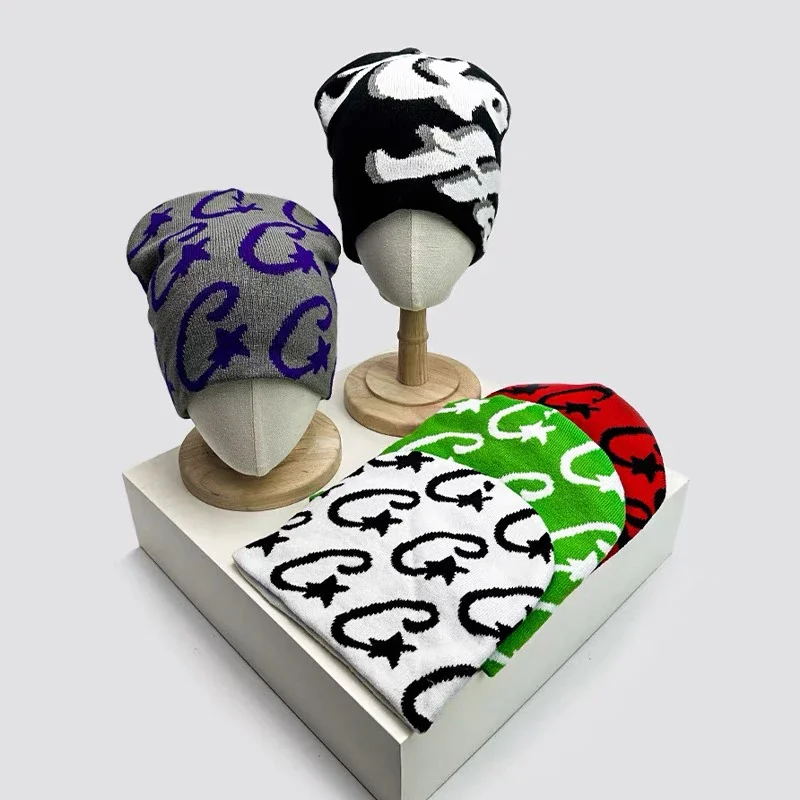 Knitted Jacquard Caps Hip-hop Trendy Beanie Hat 2024 Letter Design For Women Male Winter Hot Girl Warm Knitted Yarn Hat
