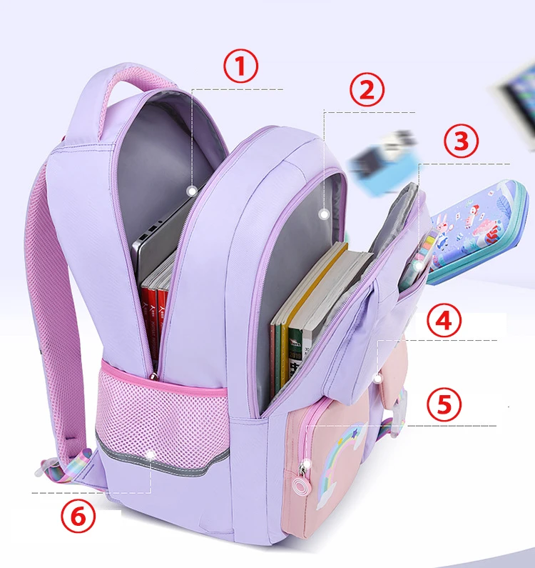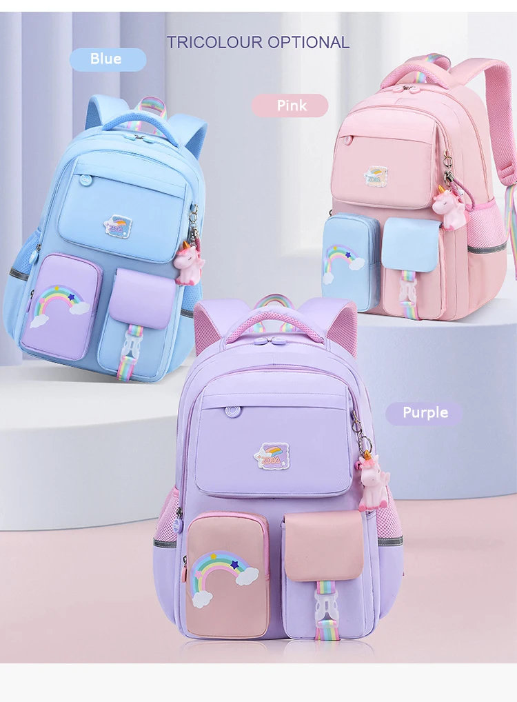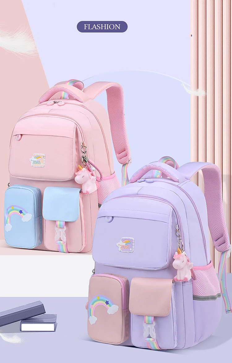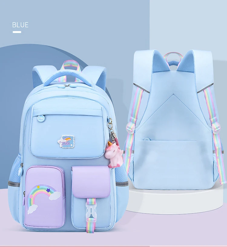 Korean fashion rainbow shoulder strap school bag for teenagers girls Children's waterproof backpacks kids schoolbags mochilas