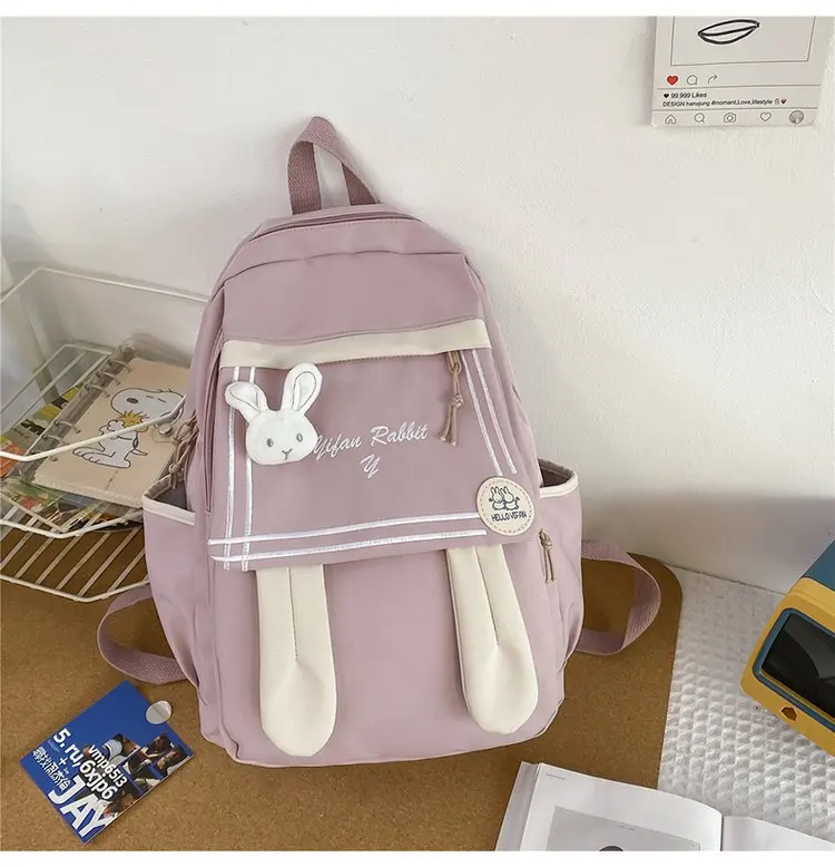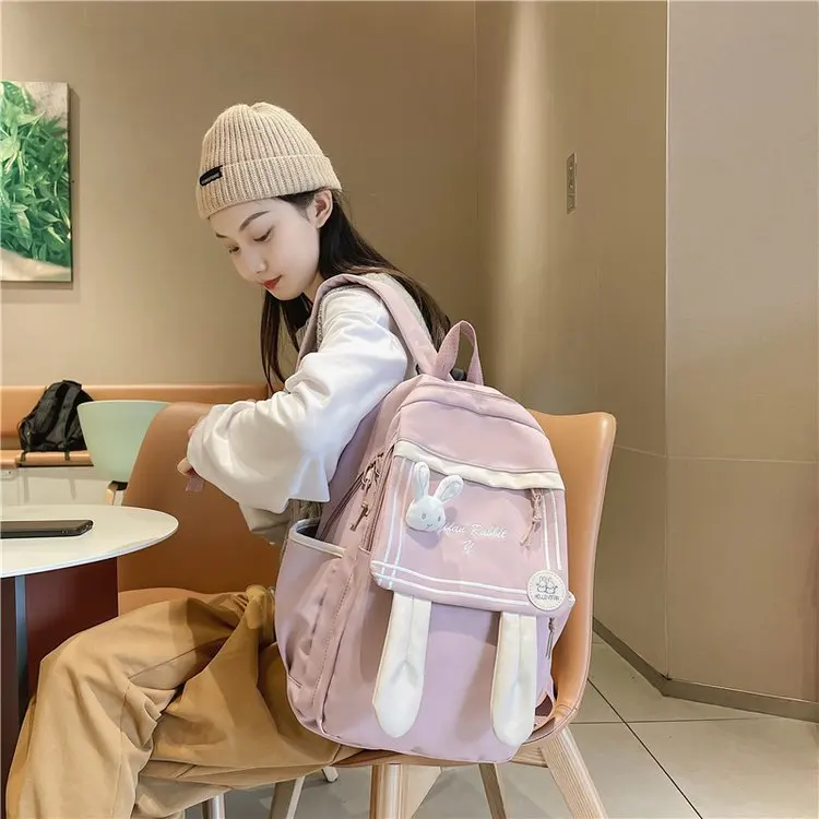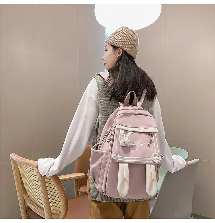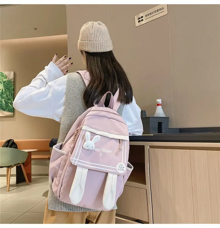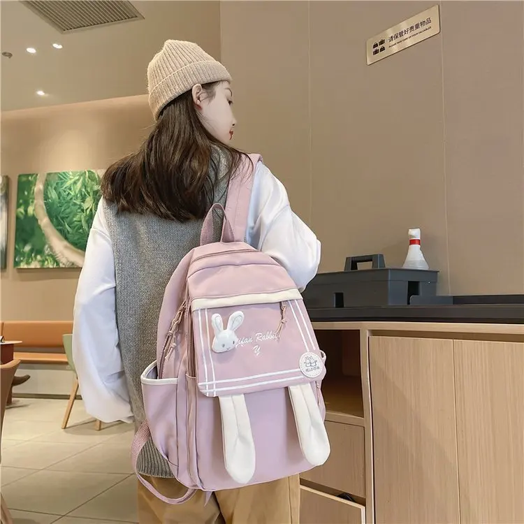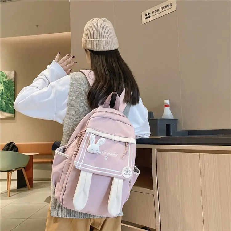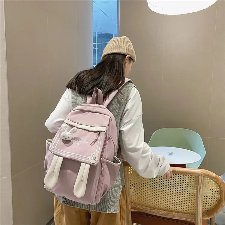 Korean Kawaii Cute School BagsSoft Bunny Ears Sweet Teens Girls Schoolbag Kids Casual Women Nylon Travel Backpack Laptop Bags