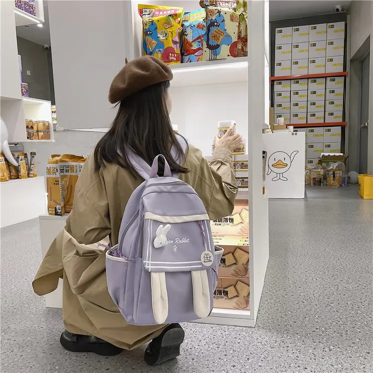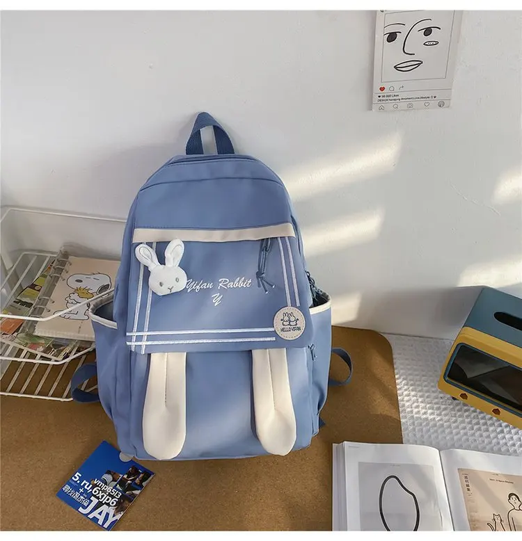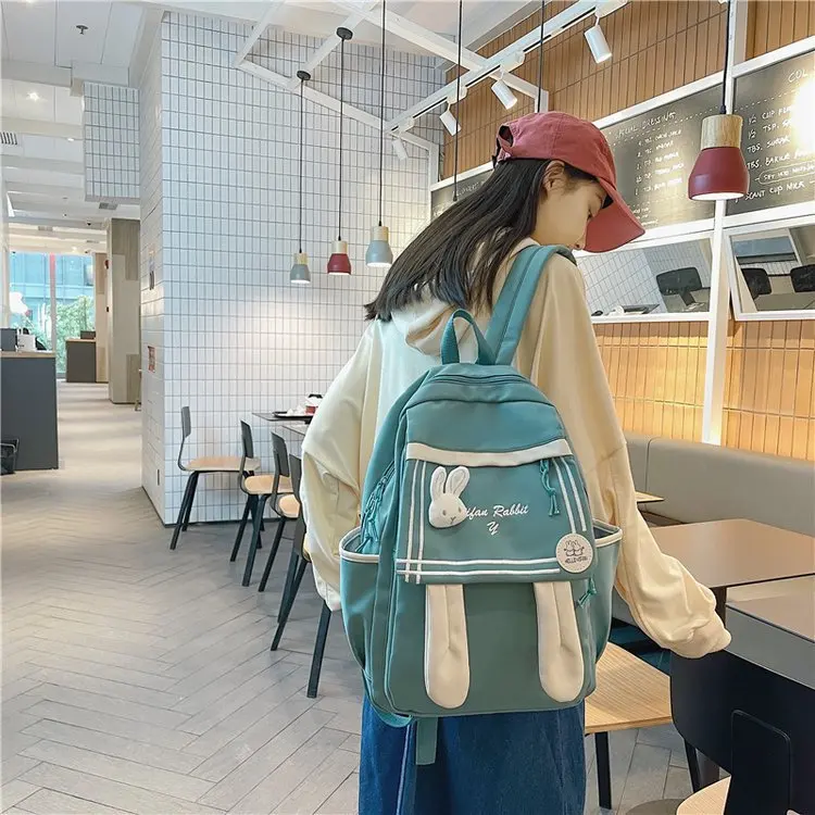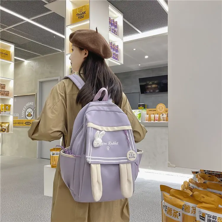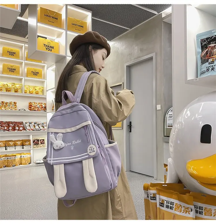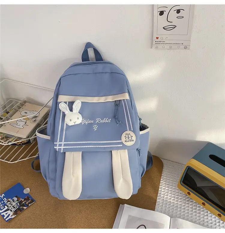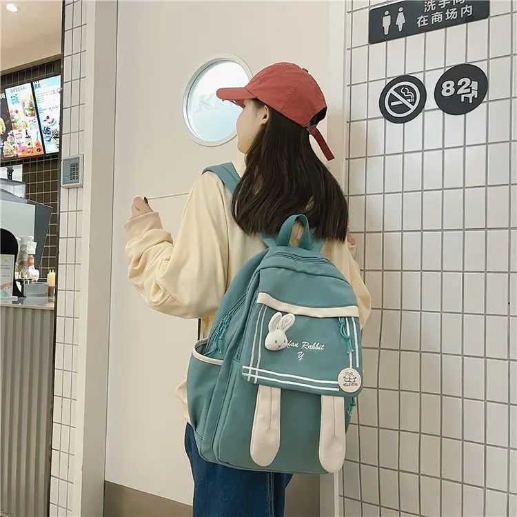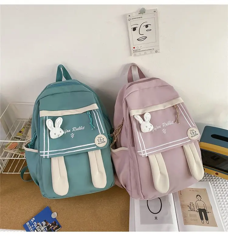 Korean Kawaii Cute School BagsSoft Bunny Ears Sweet Teens Girls Schoolbag Kids Casual Women Nylon Travel Backpack Laptop Bags