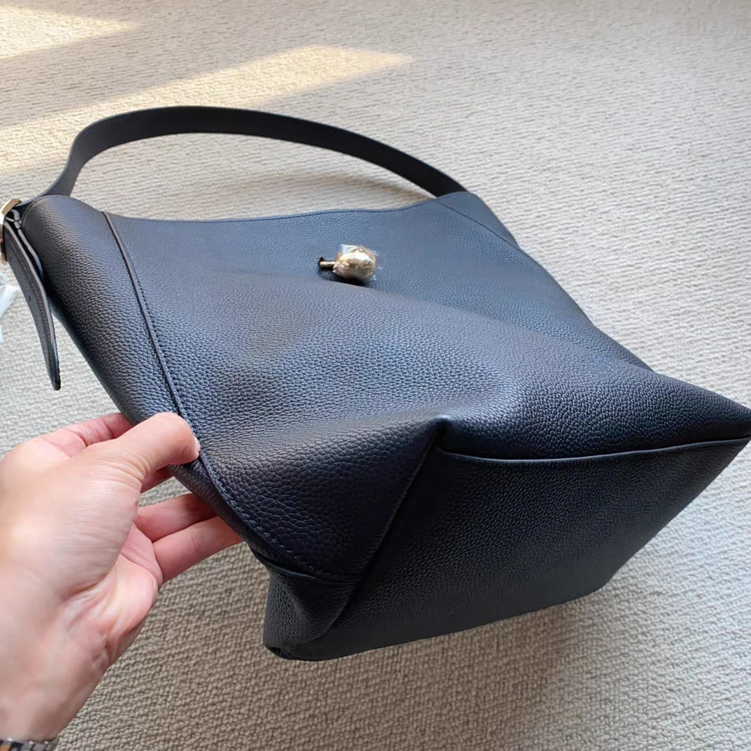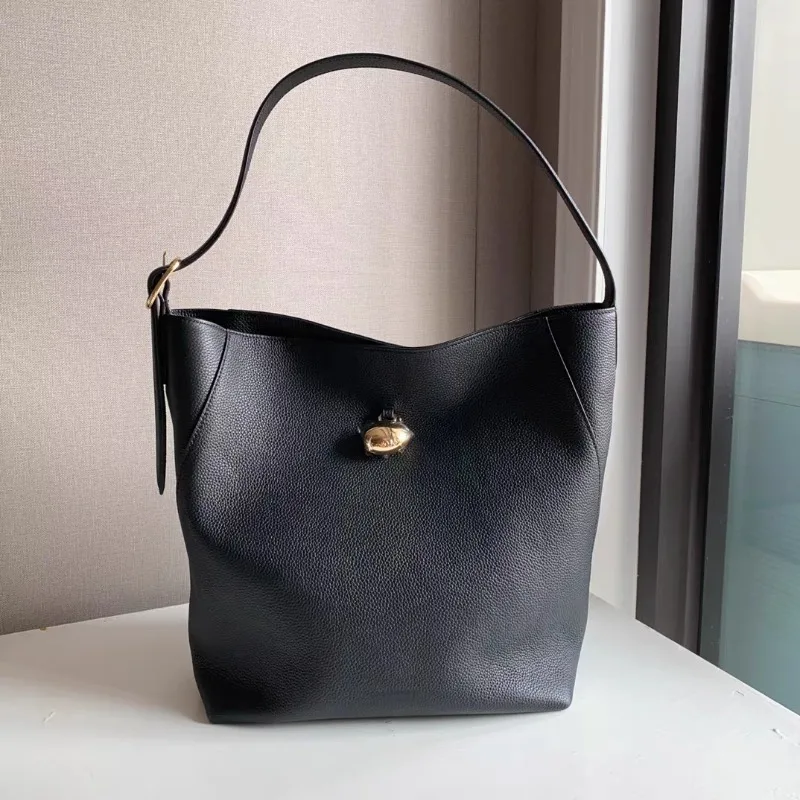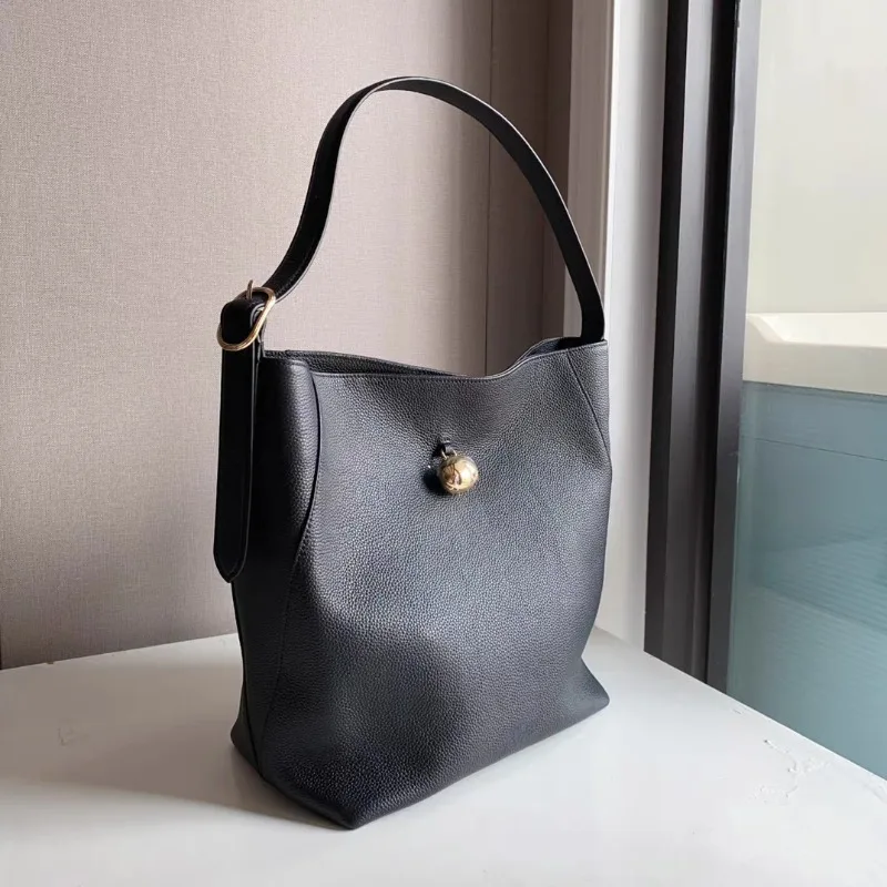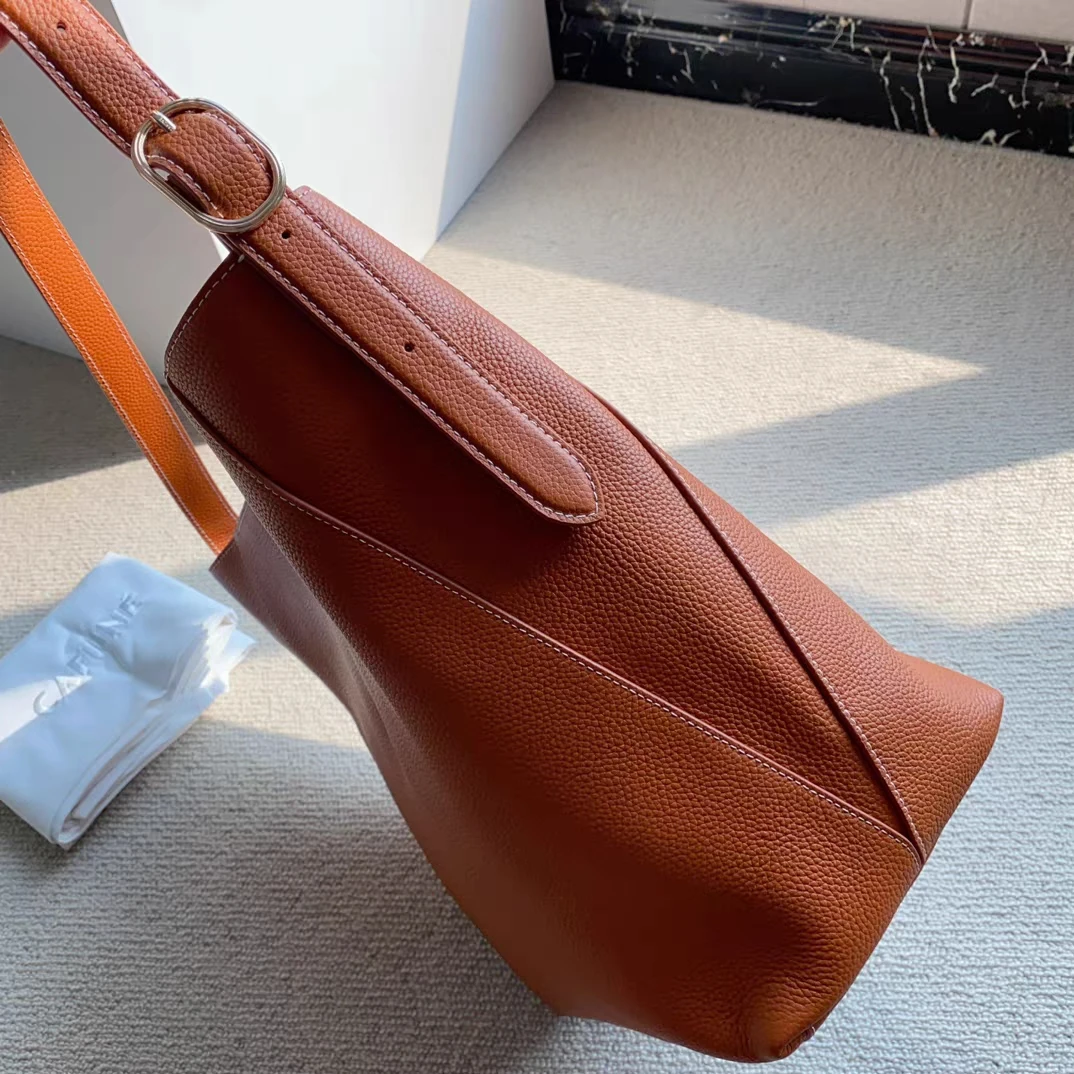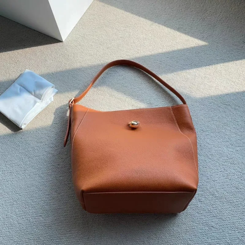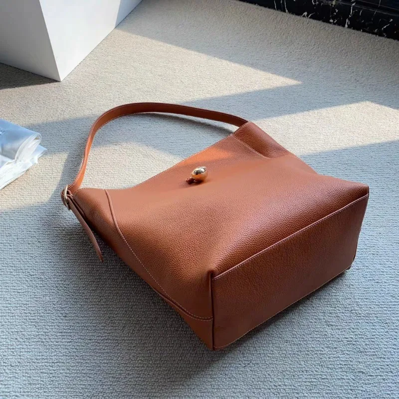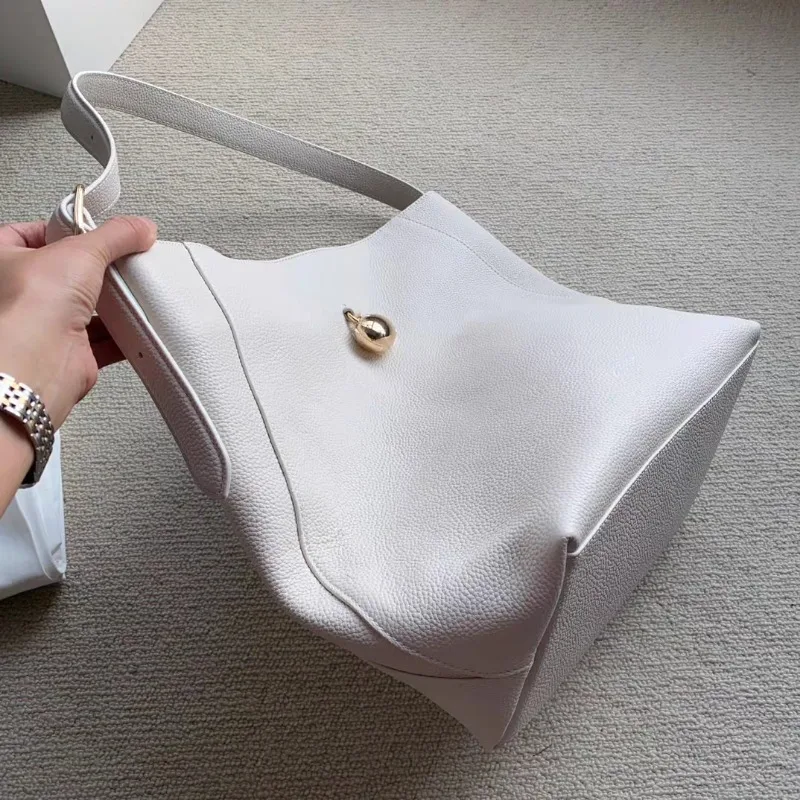 Korean Minority Designer Luxury Cowhide Handbags Large Capacity Single Shoulder Bucket Bag Casual Commuter All-match Tote Purses