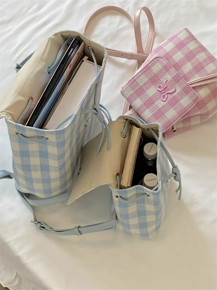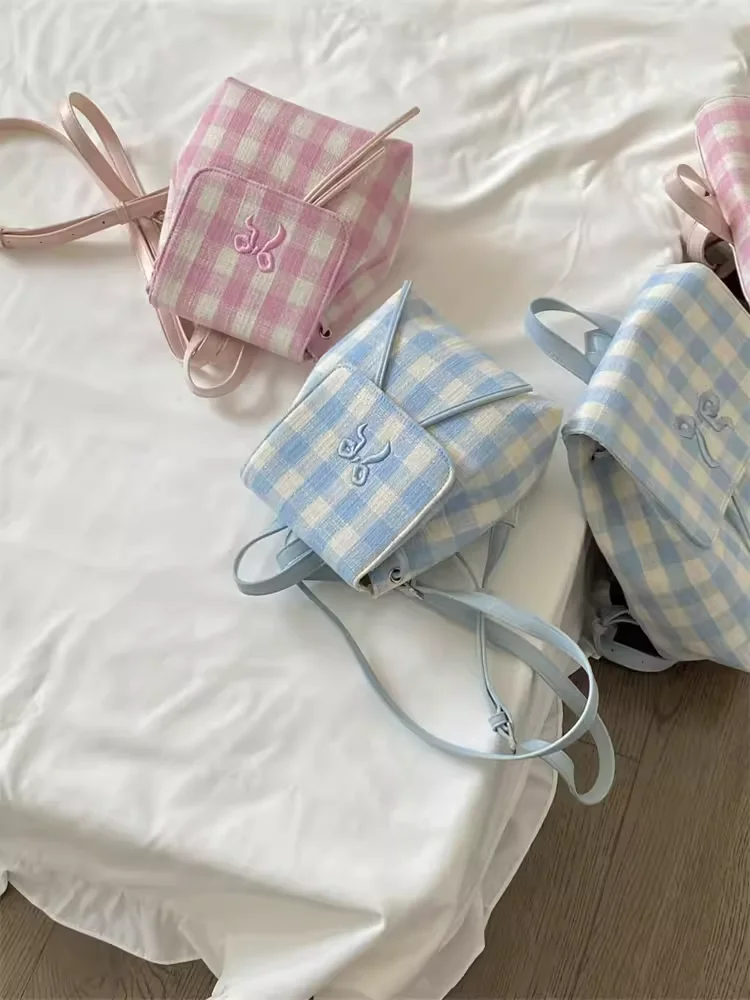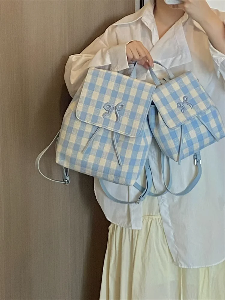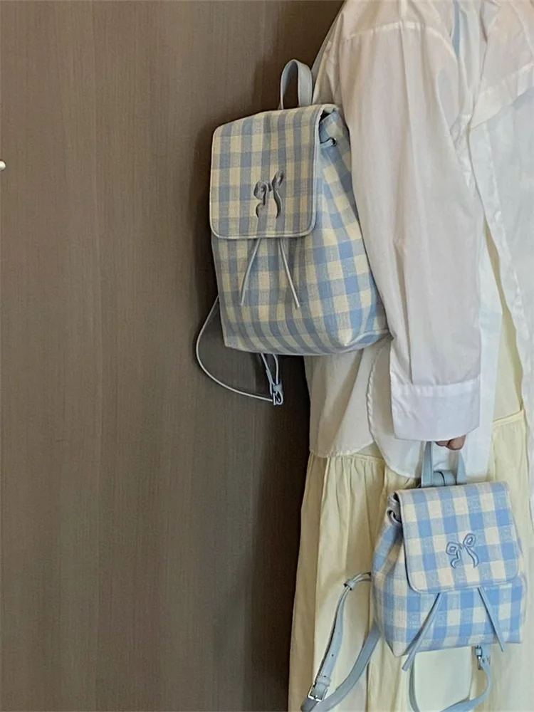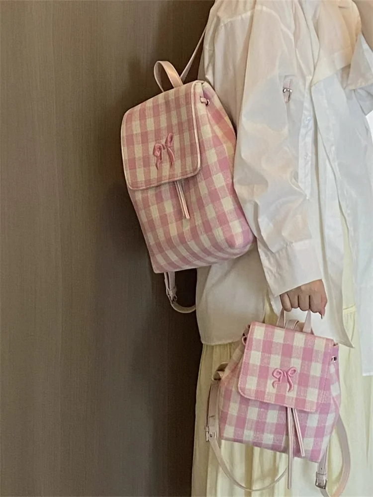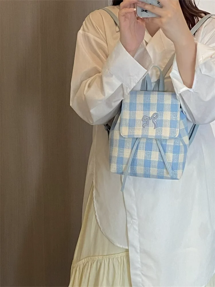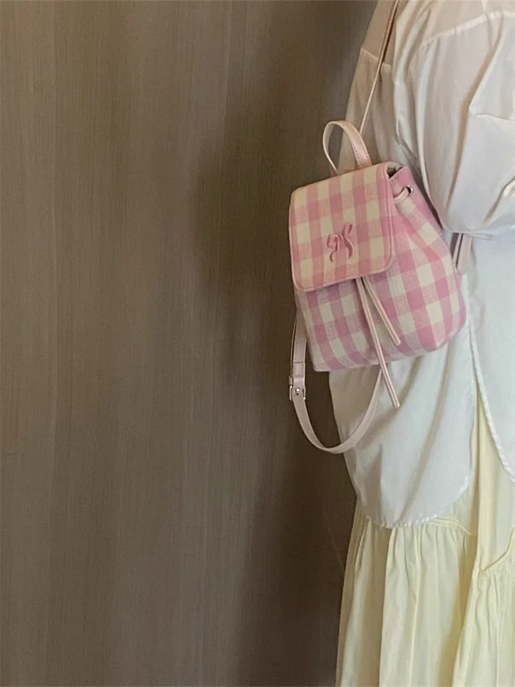 Korean style college style pattern backpack women's casual niche design bow backpack high-end handbag 2024 new small fresh bag