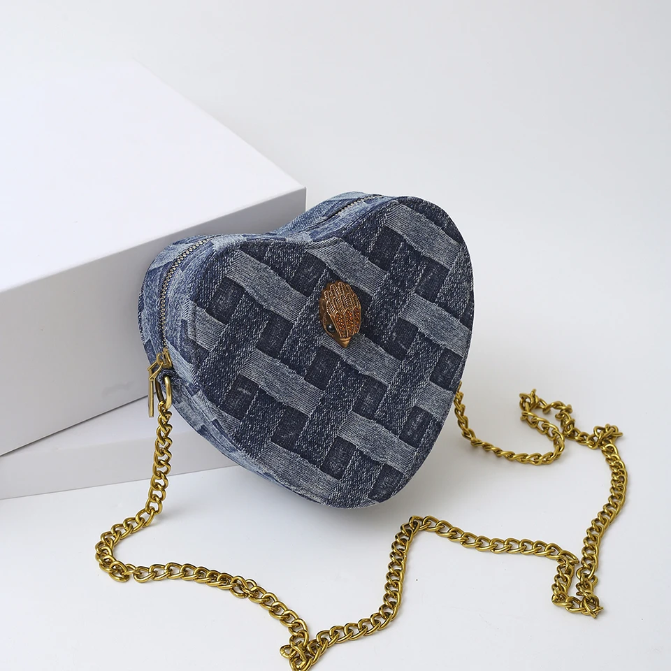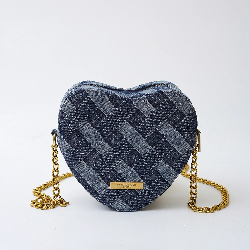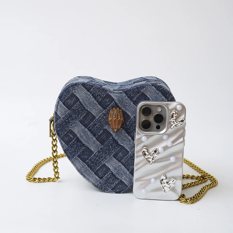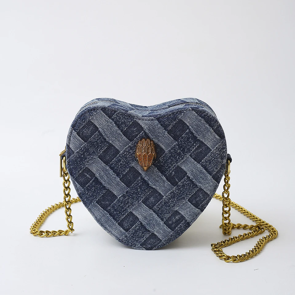 KURT GEIGER LONDON New Eagle Head Shoulder Bag Heart Shape Denim Cross Body Bag Luxury Designer Zipper Handbag Leisure Phone Bag