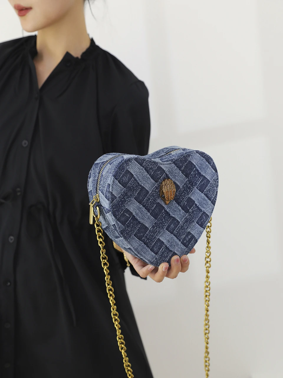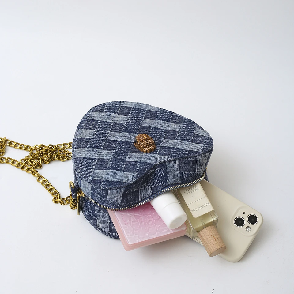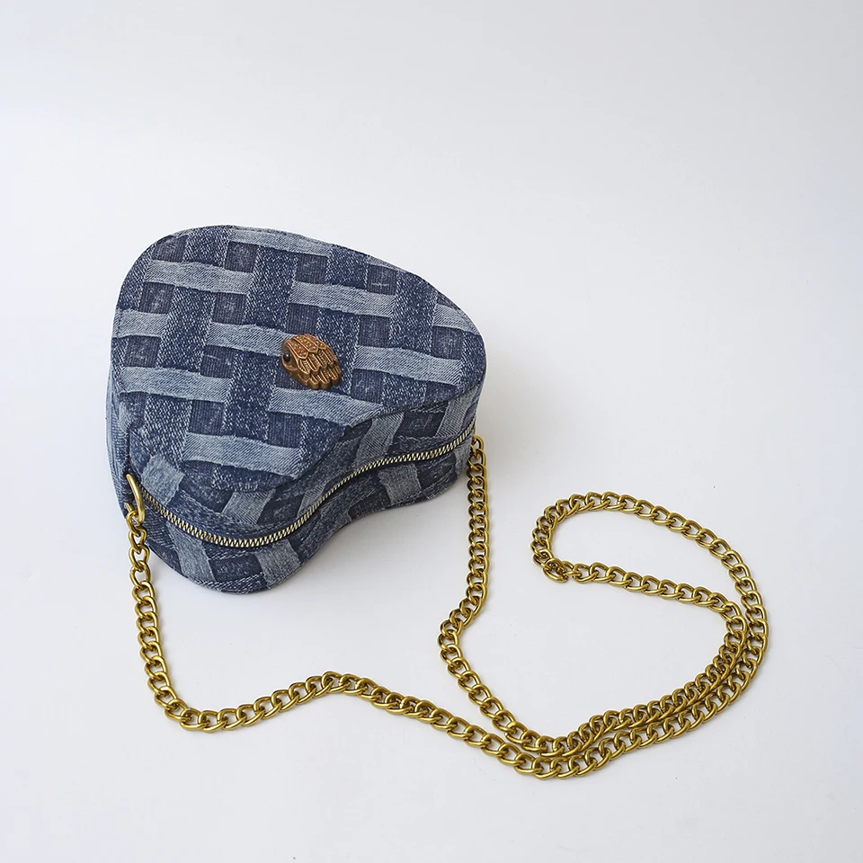 KURT GEIGER LONDON New Eagle Head Shoulder Bag Heart Shape Denim Cross Body Bag Luxury Designer Zipper Handbag Leisure Phone Bag