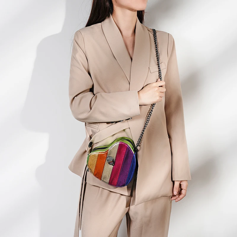 KURT GEIGER LONDON Women Shoulder Bag Chain Retro Mini Heart Shaped Purse Handbag PU Leather Tote Bag Fashion Crossbody Bags Y2K