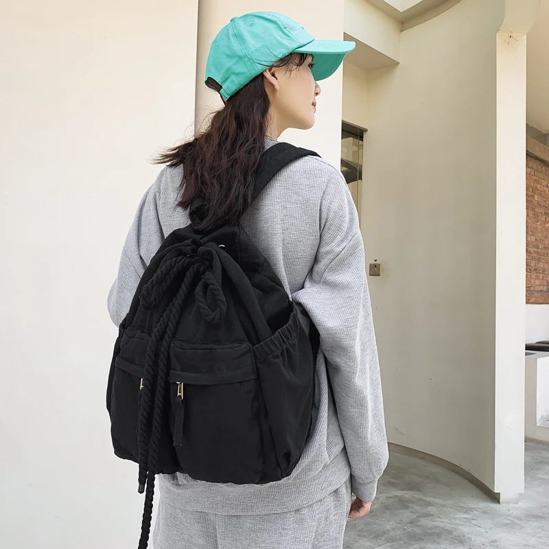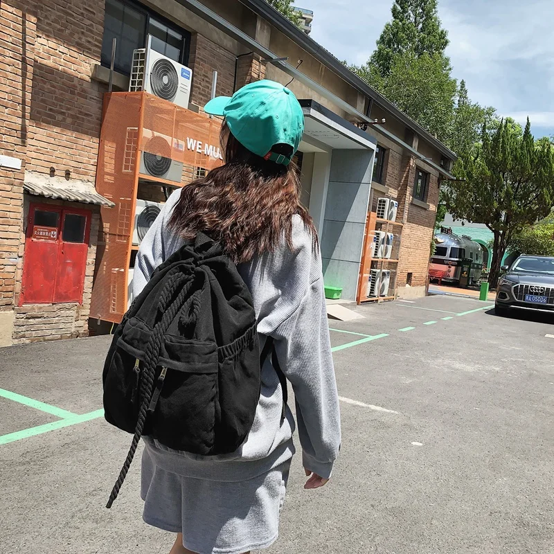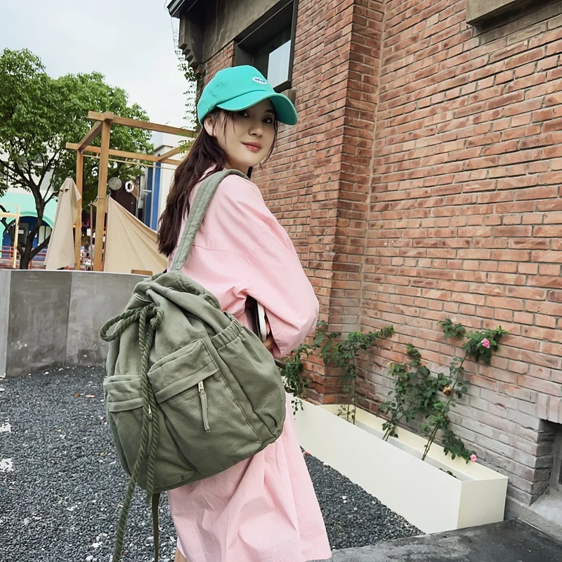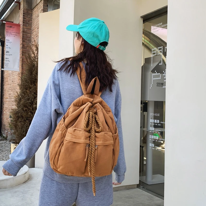 Ladies Canvas Girl Book Bag Brown Laptop Backpack Women Travel School Bag Cool