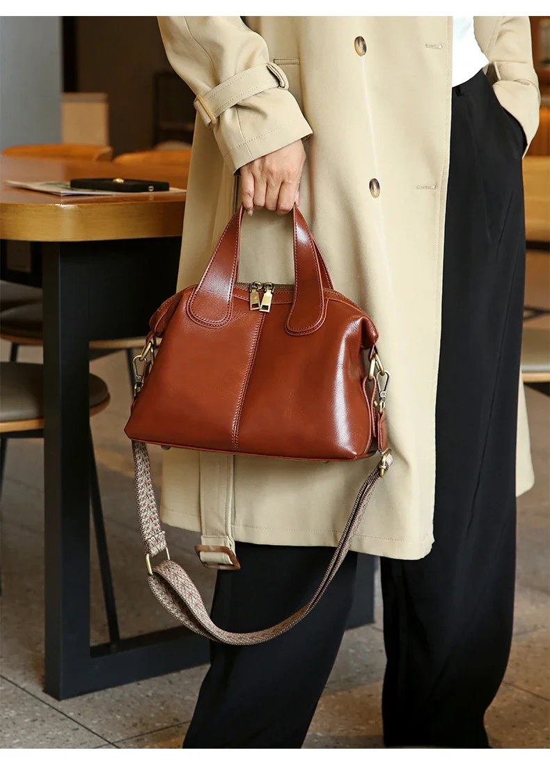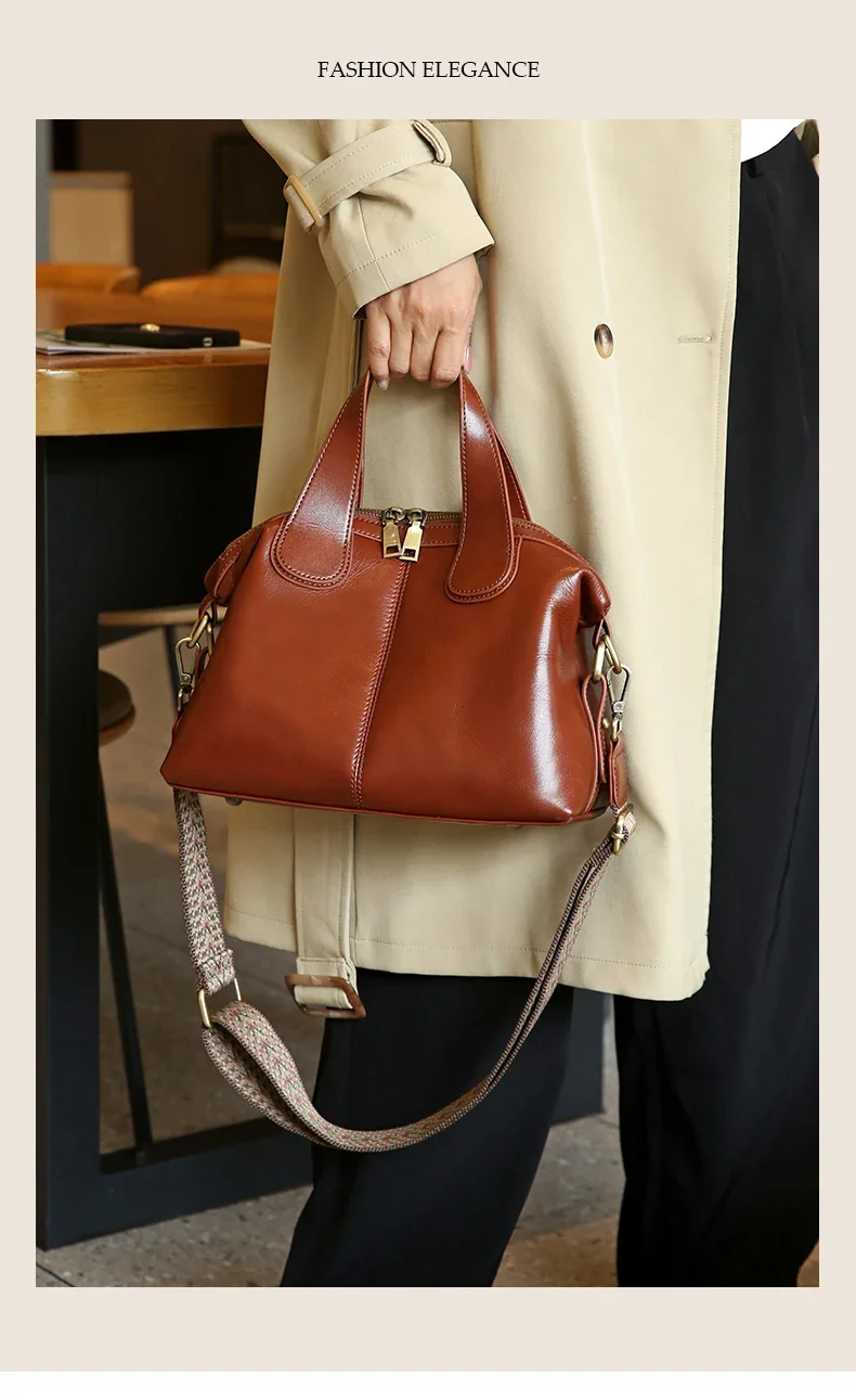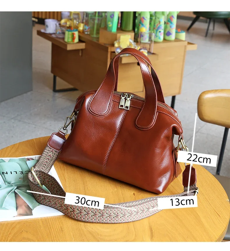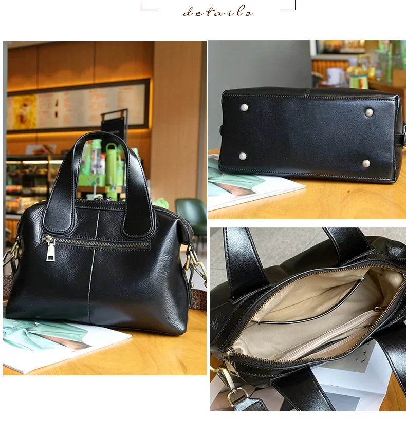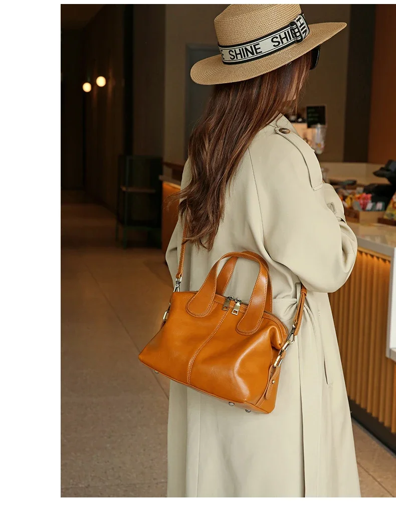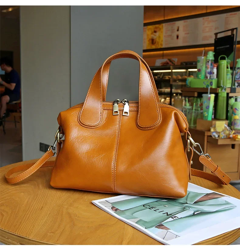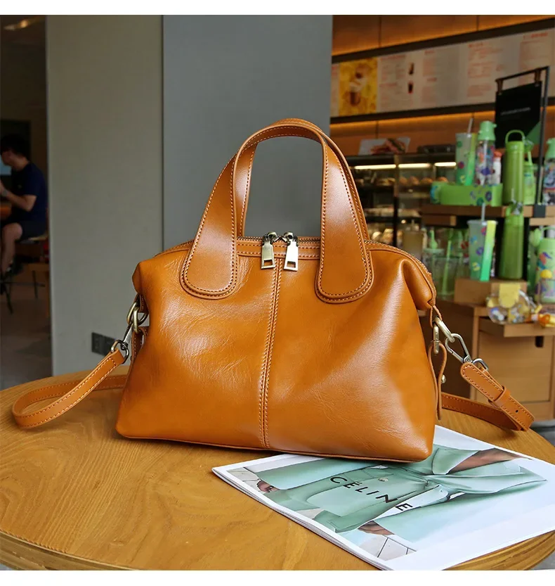 Ladies Cowhide Genuine Leather Bag Women's Retro Versatile Shoulder Handbag Female Commuting Luxury Large Capacity Tote Bags