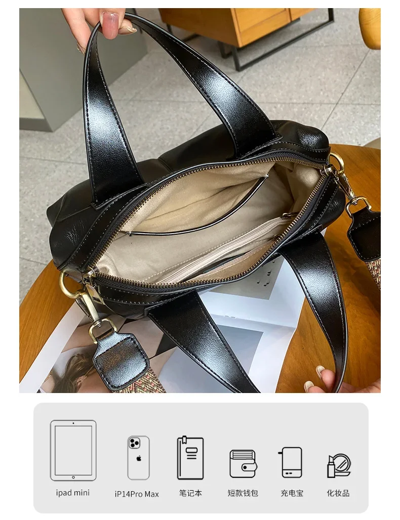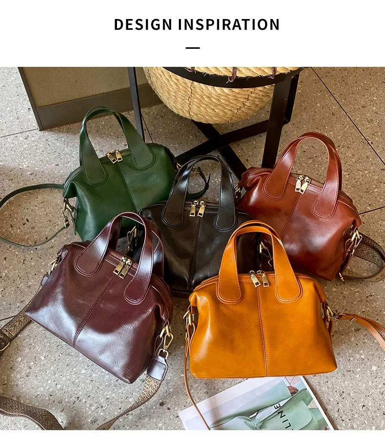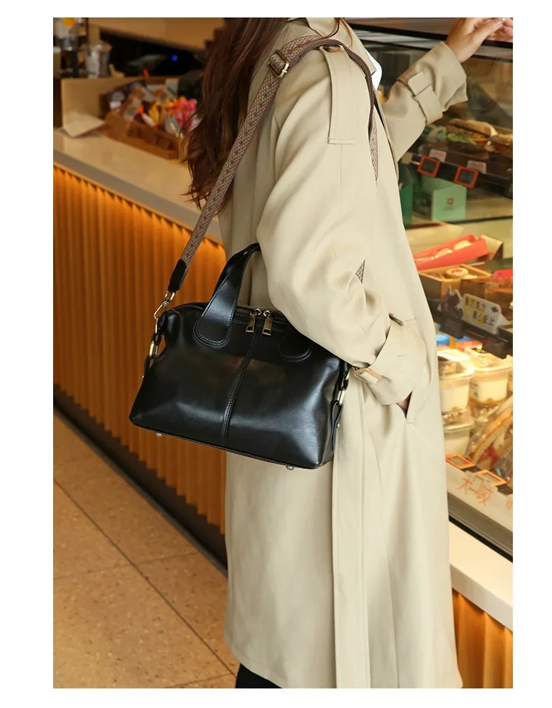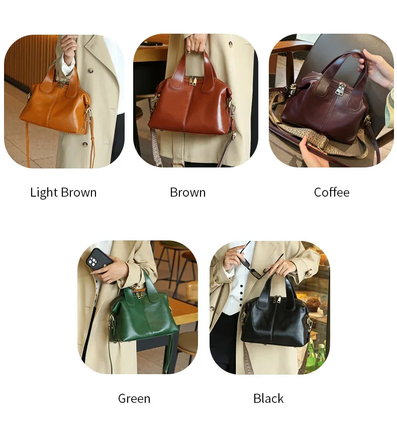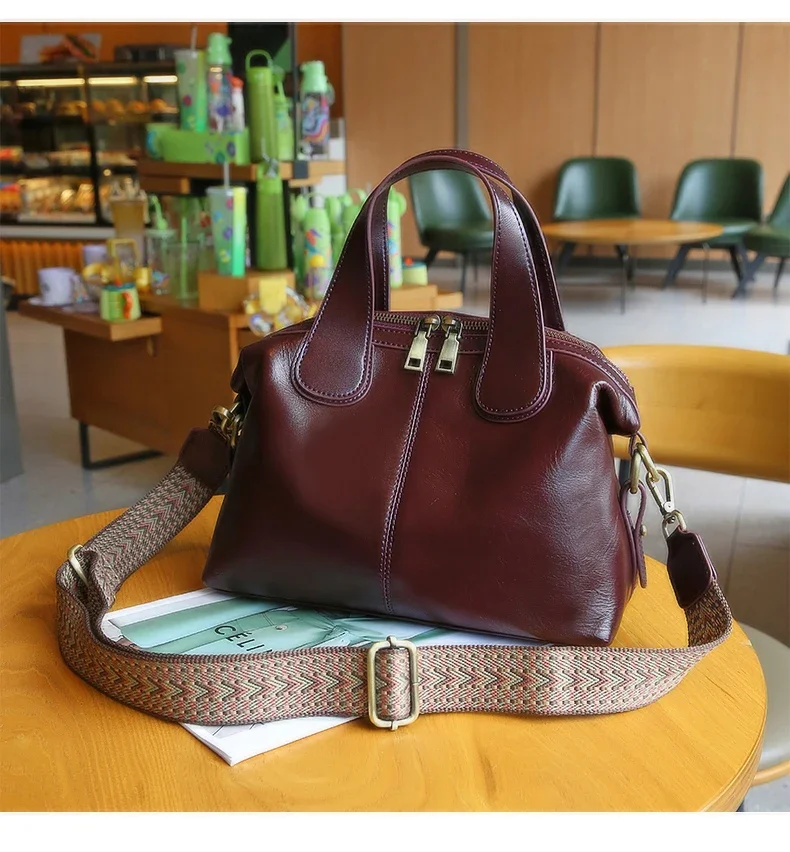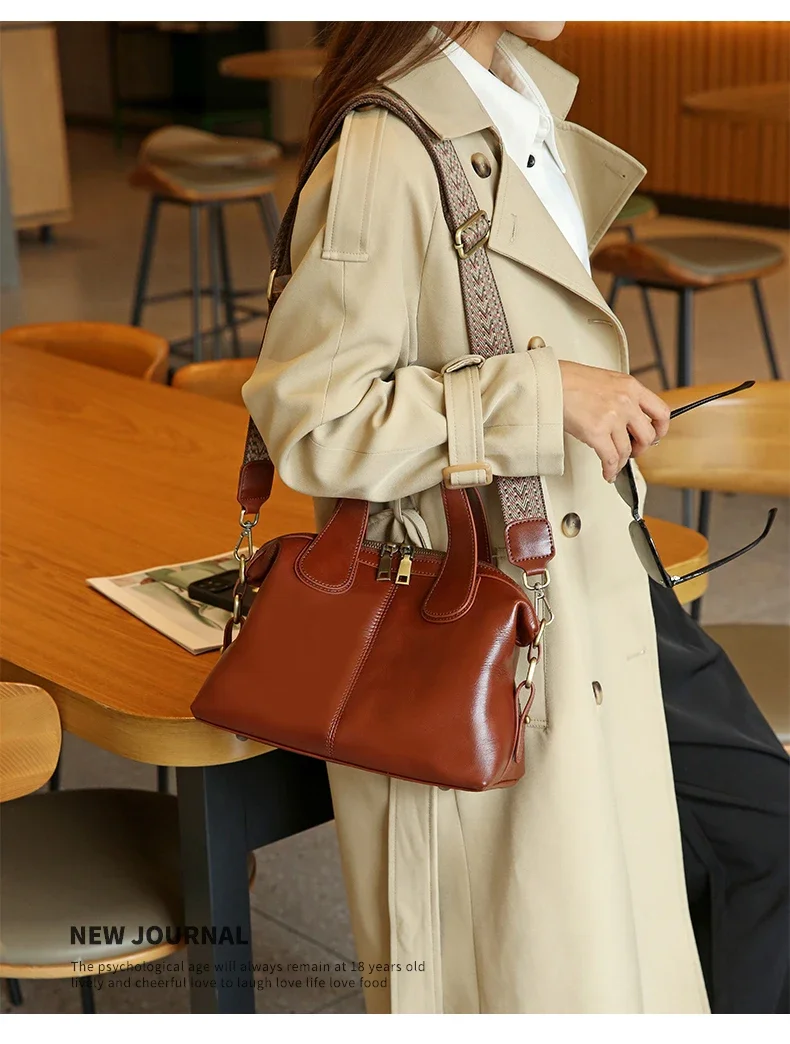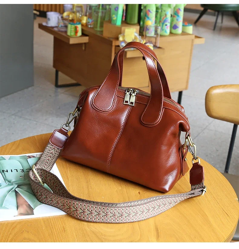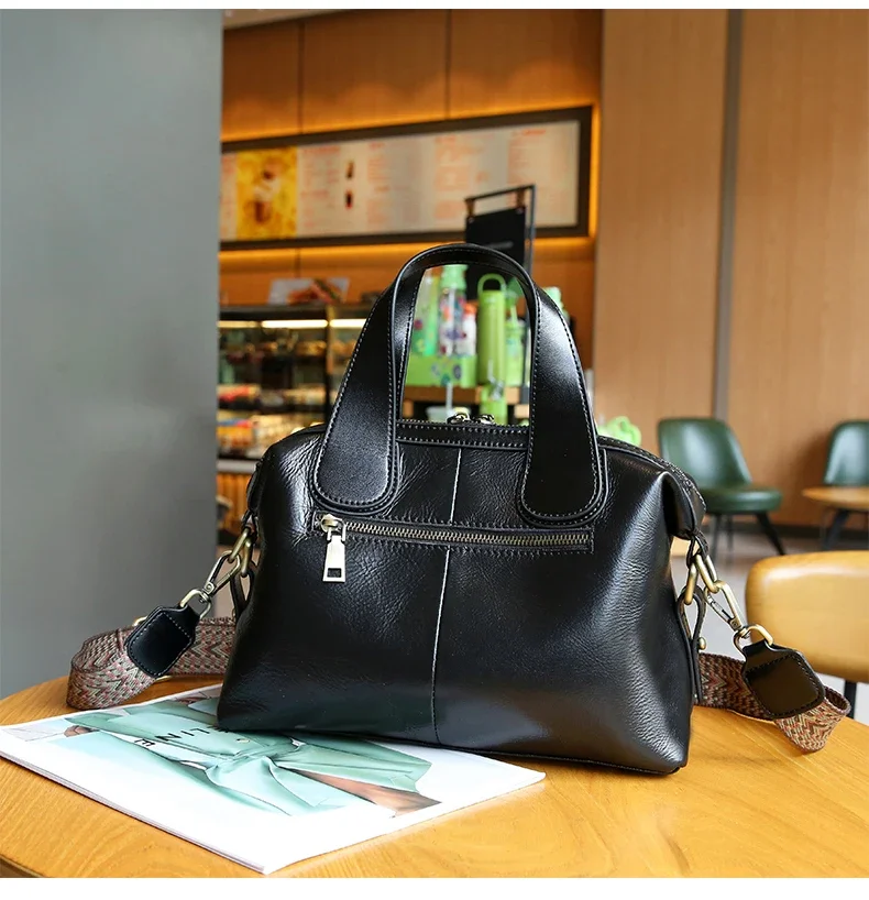 Ladies Cowhide Genuine Leather Bag Women's Retro Versatile Shoulder Handbag Female Commuting Luxury Large Capacity Tote Bags