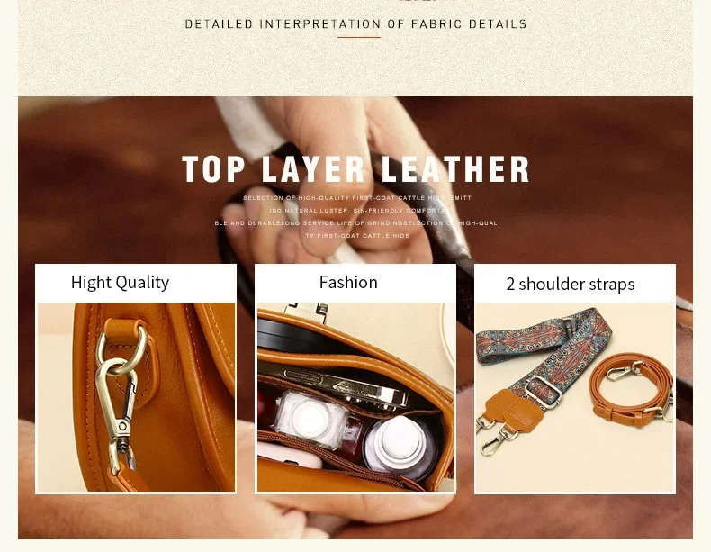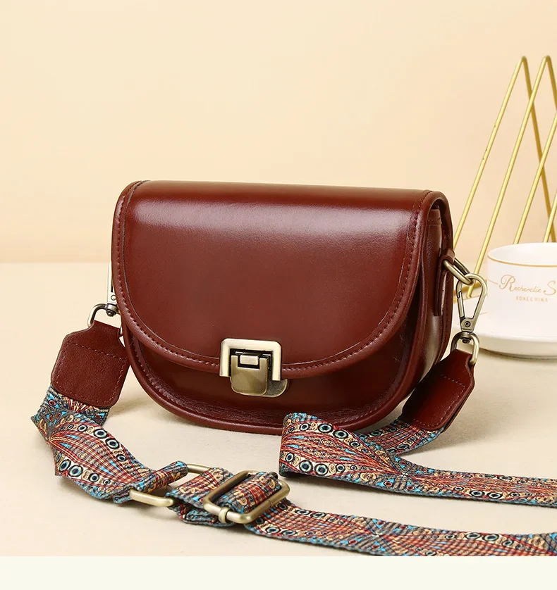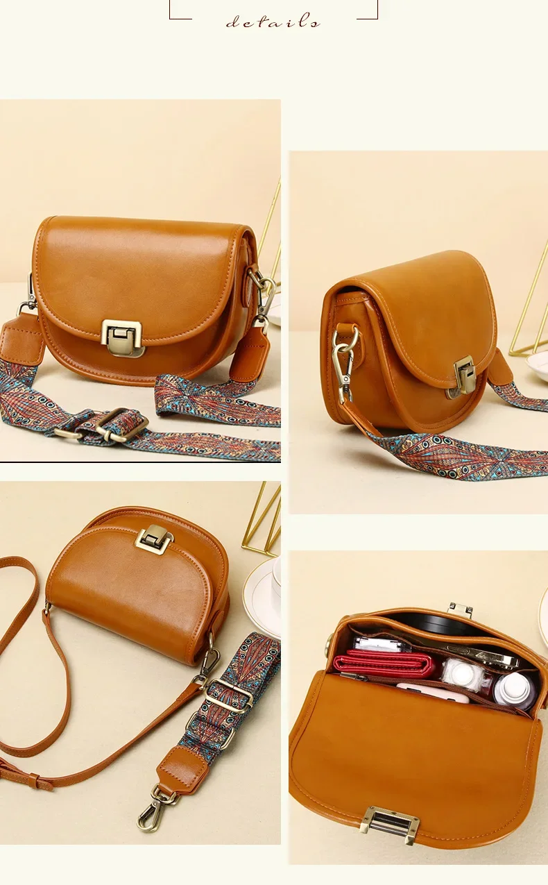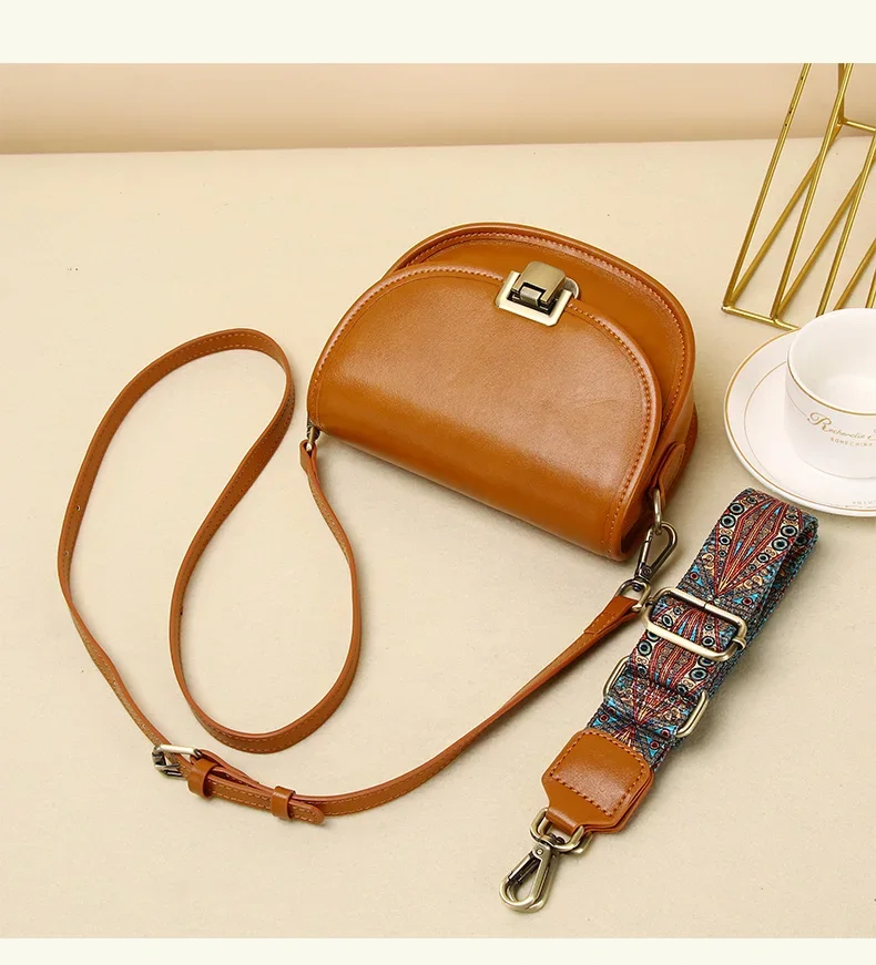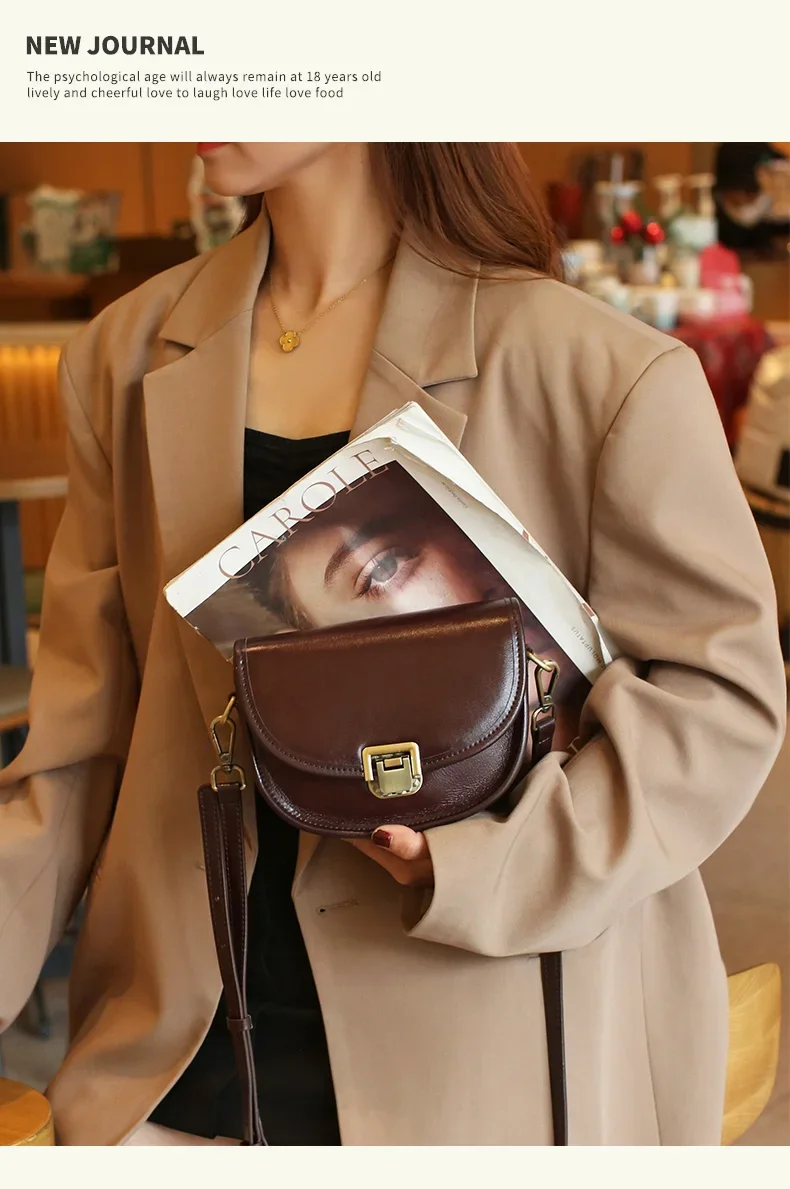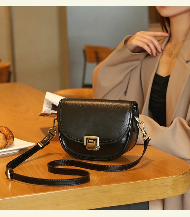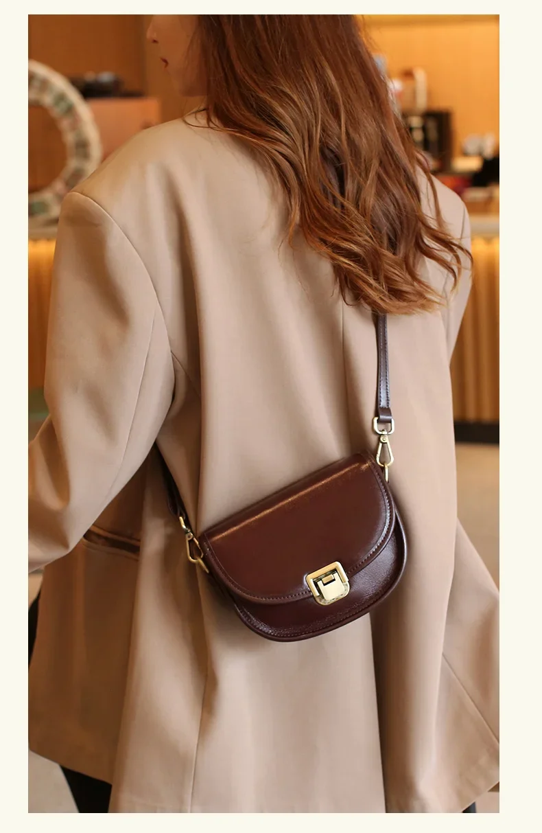 Ladies Cowhide Genuine Leather Bag Women's Retro Versatile Shoulder Handbag Female Designer Luxury Underarm Crossbody Bags New