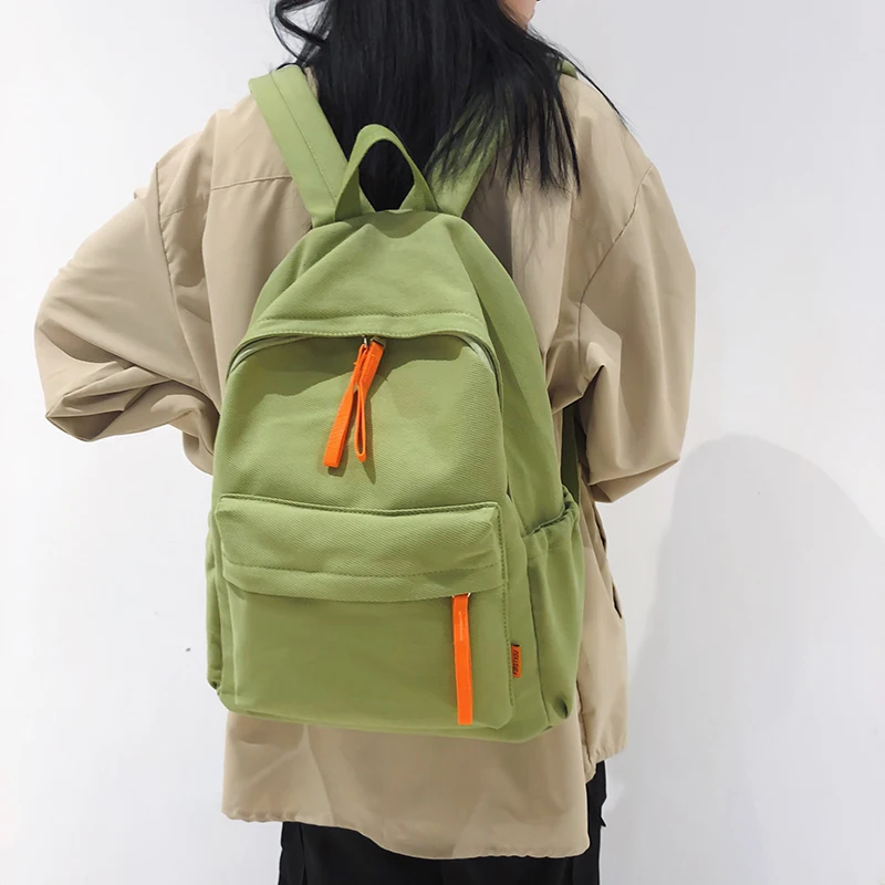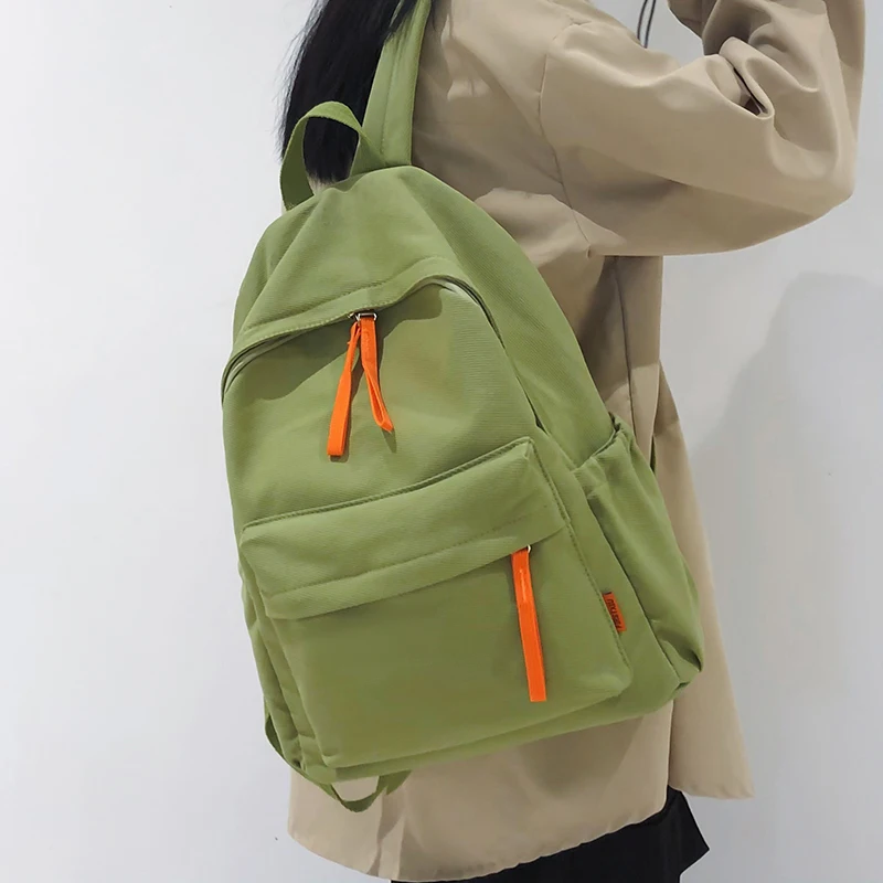 Ladies Green Solid Color College Backpack Trendy Girl Boy Travel School Bag Cool Men Women Leisure Fashion Male Female Book Bags