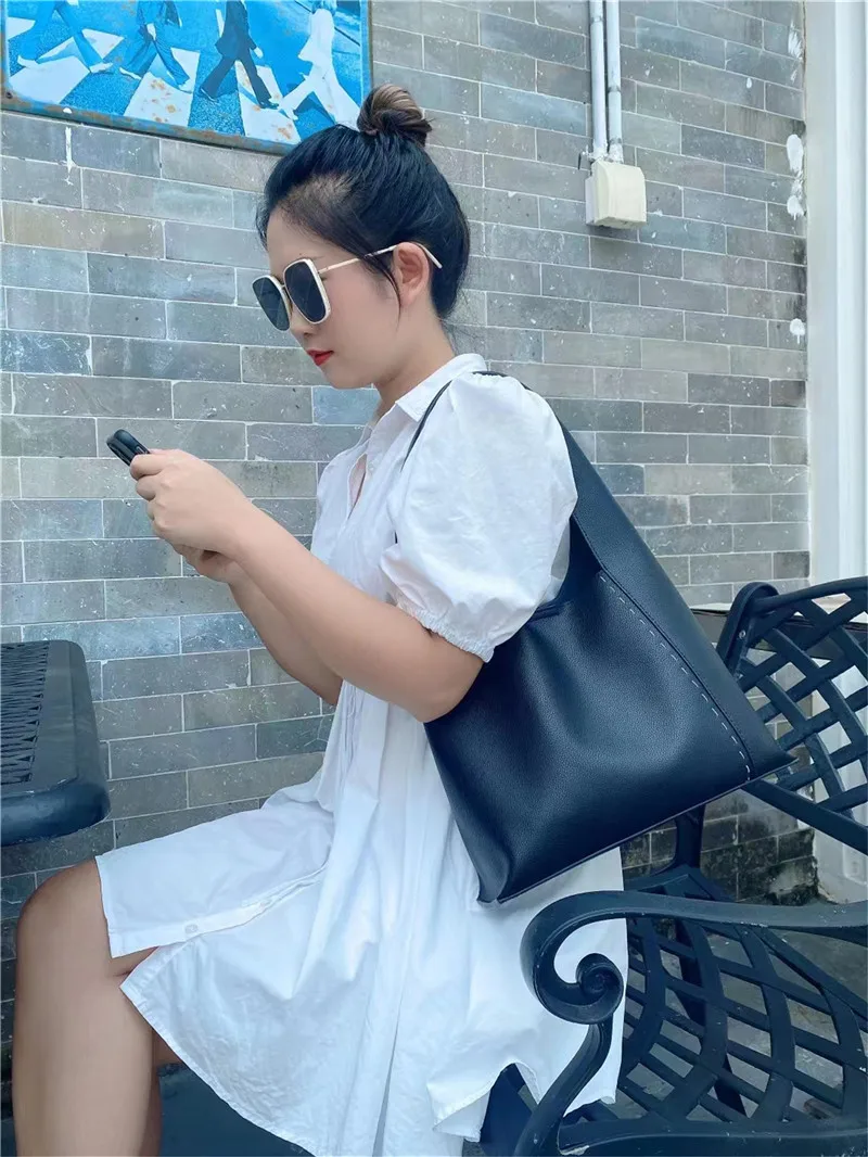 牛皮包包2022年秋冬新款复古时尚百搭通勤大包大容量休闲腋下包女