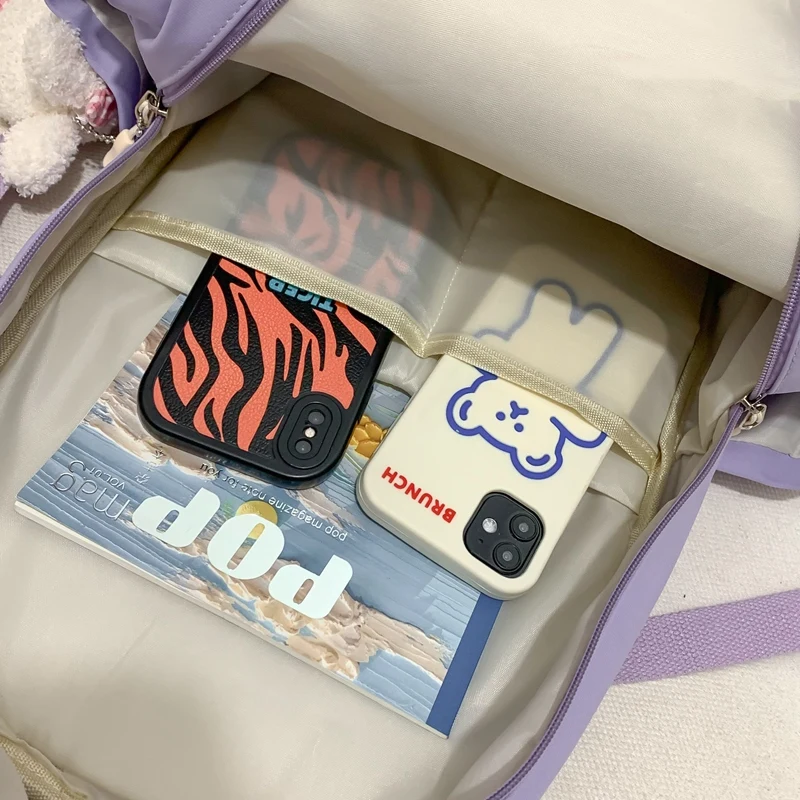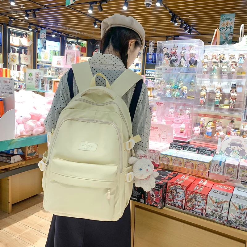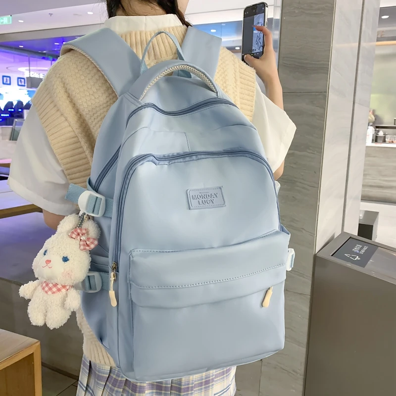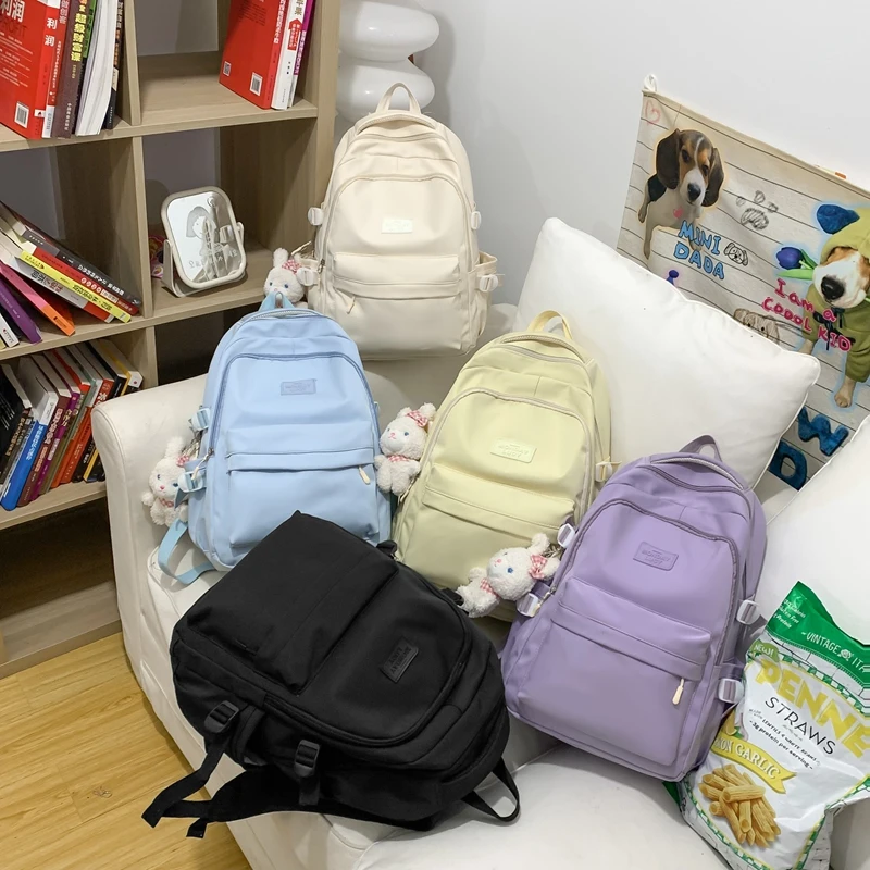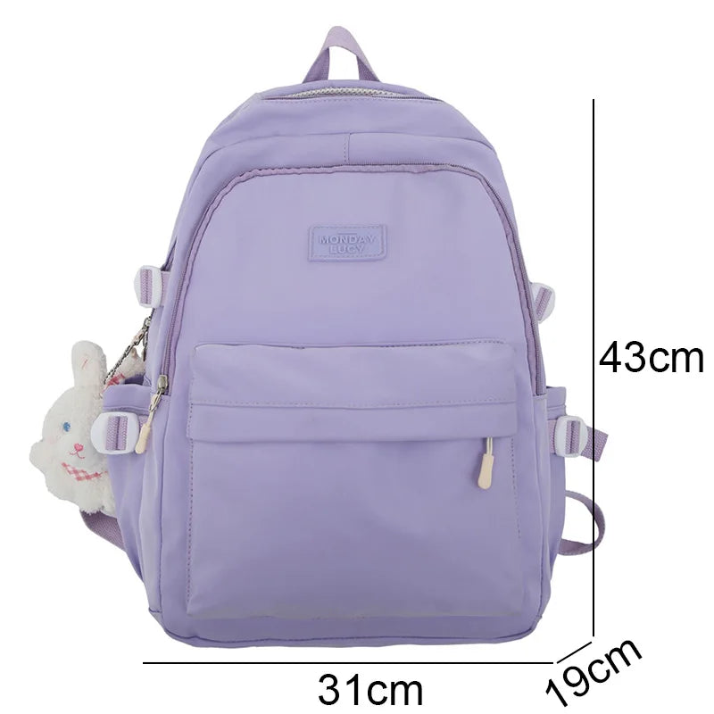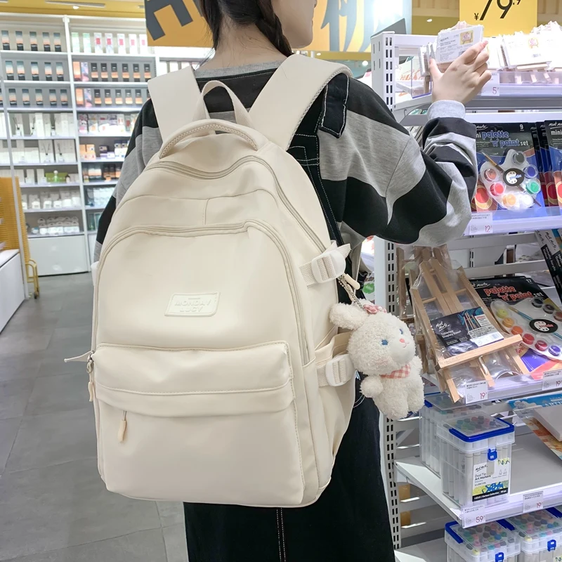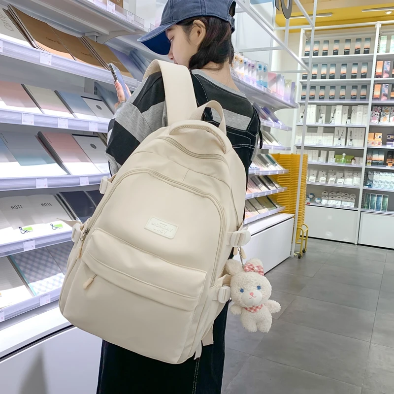 Ladies White Leisure College Backpack Trendy Women Nylon Laptop Book Bag Girl Cute Travel School Bag Fashion Female Cool Student