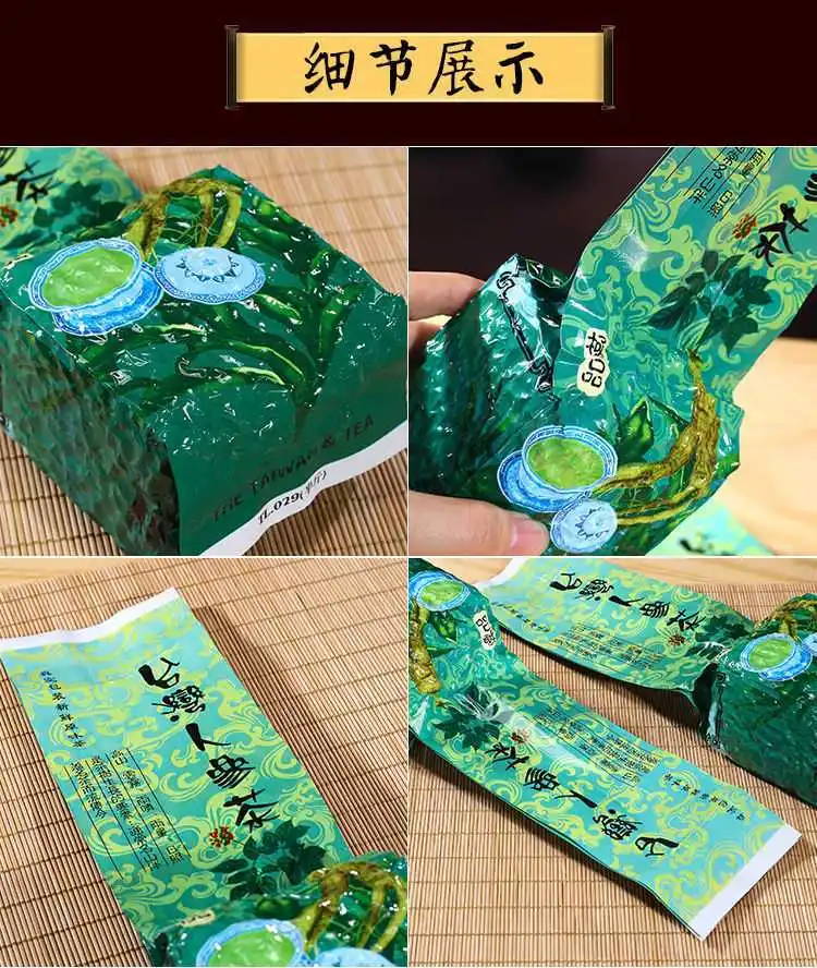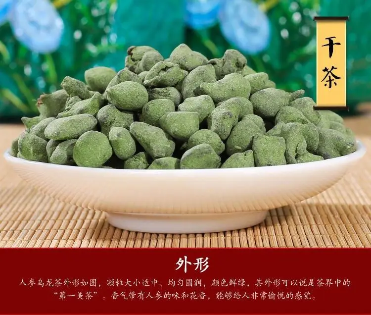As a mixture of 95 percent of traditional Oolong tea and 5 percent of American ginseng, this tea is called Ginseng Oolong. American ginseng is a kind of panax, which can promote blood circulation and improve immunity. Ginseng Oolong tea has not only the aroma of oolong, but also a particular flavor of American ginseng. This tea is much suitable for people interested in the health effects of teas.