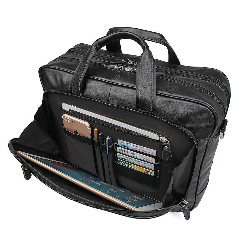 Large 15.6 inch Laptop Briefcase Men Genuine Leather Handbag Designer Fashion Male Travel Men's Cow Messenger Shoulder Bag