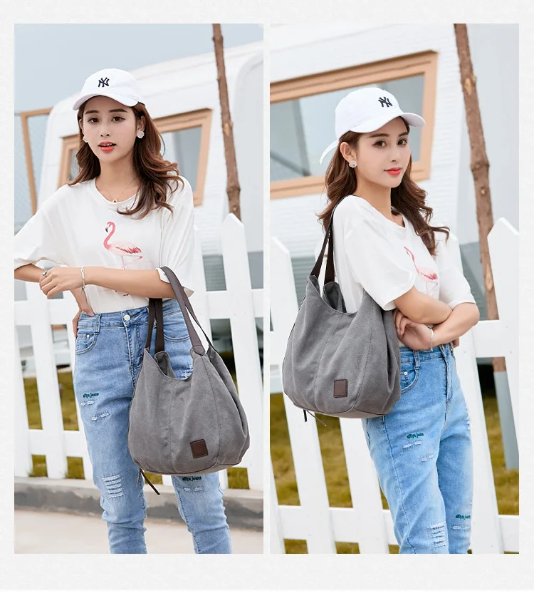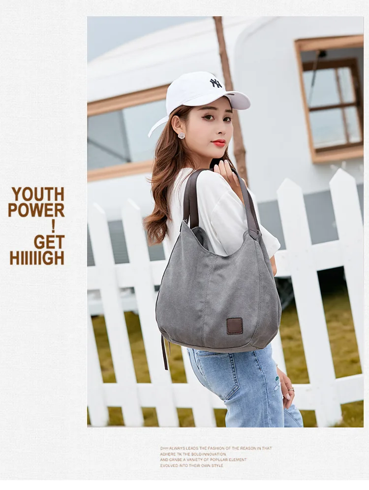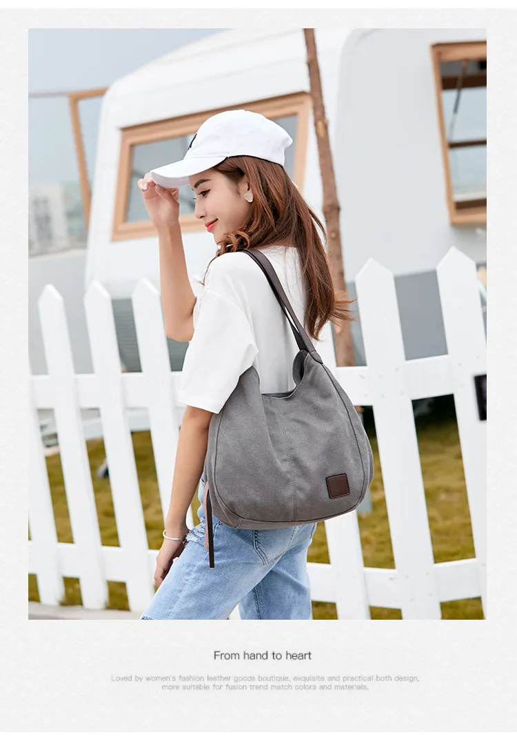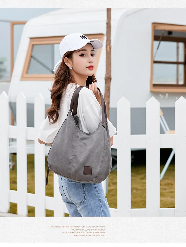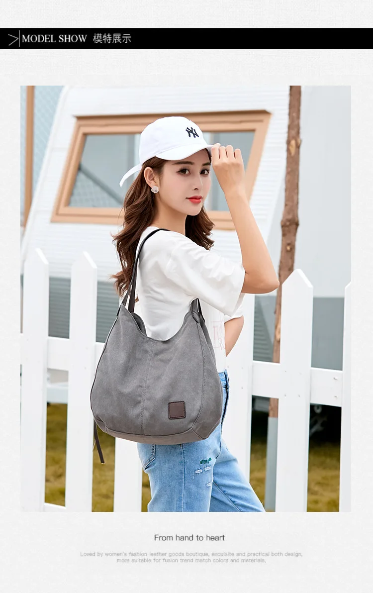 Large capacity canvas shoulder bag casual cute girls handbag daily handbag ladies shopping modern handbag travel bag wallet