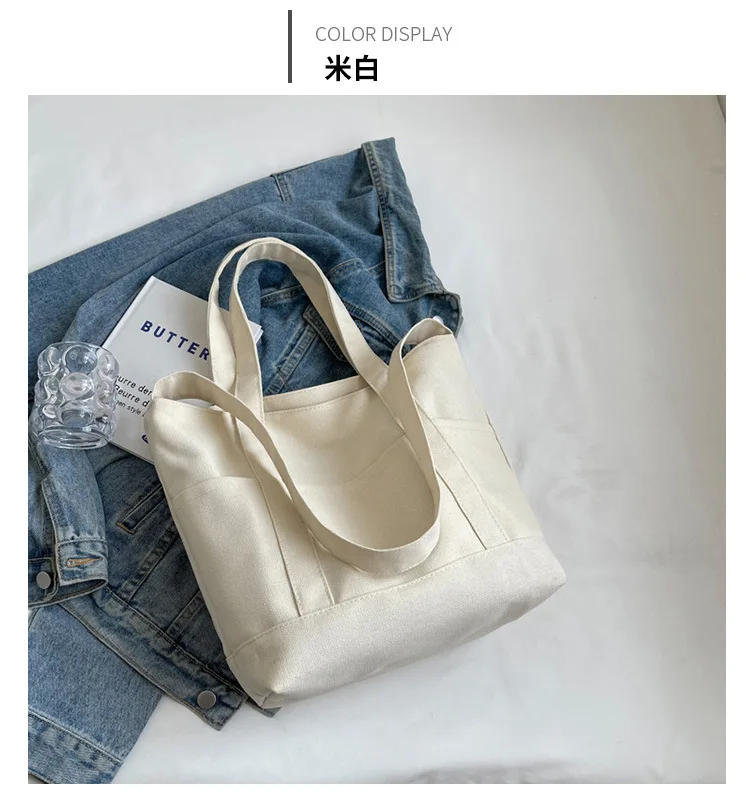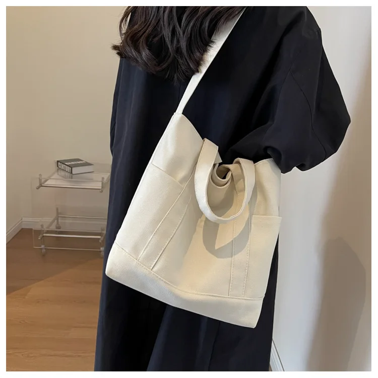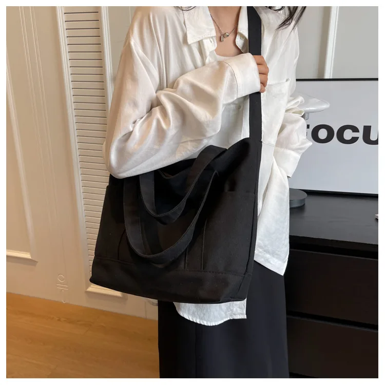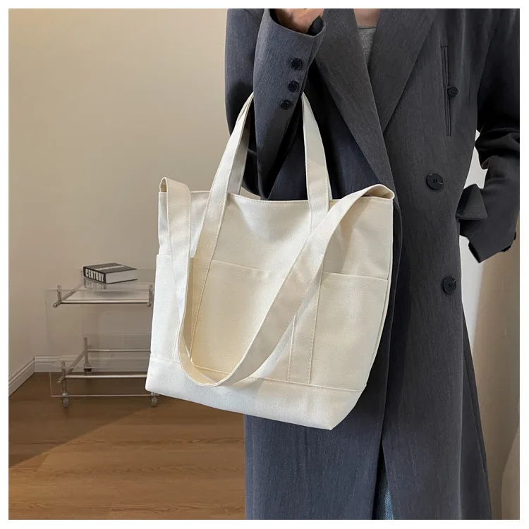Large Capacity Canvas Tote Bags for Women Office Lady Work Commuting Carrying Bag College Style Student Outfit Book Shoulder Bag