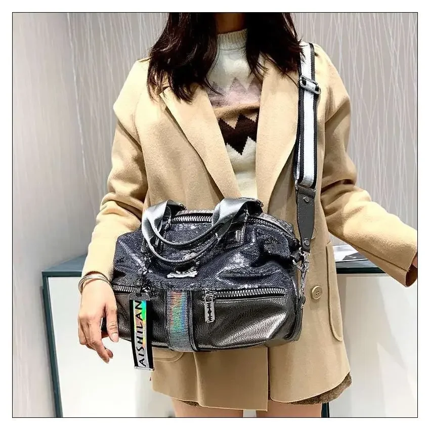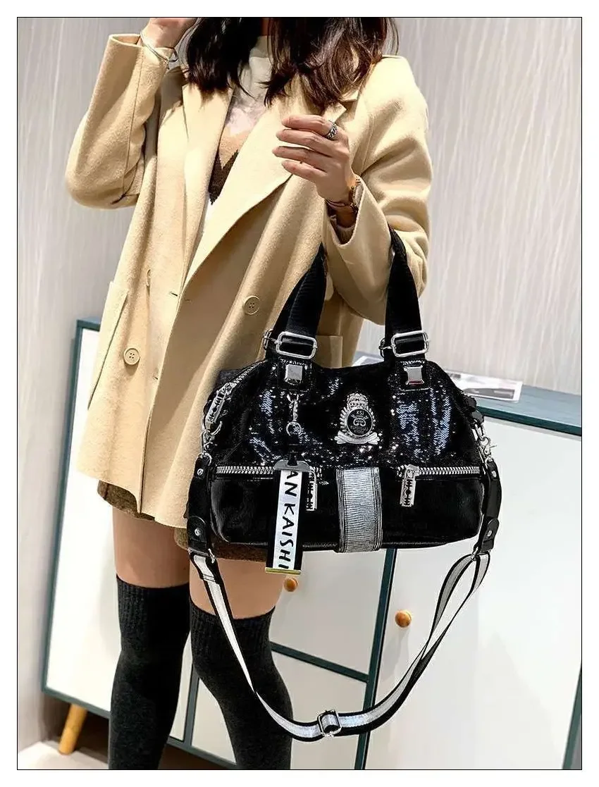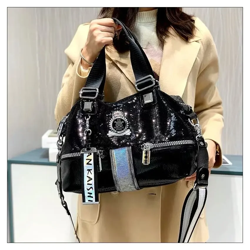 Large Capacity Handbag Female 2024 New Trend High-Grade Fashion Sequins Messenger Bag Luxury Designer Casual Tote Shoulder Bags
