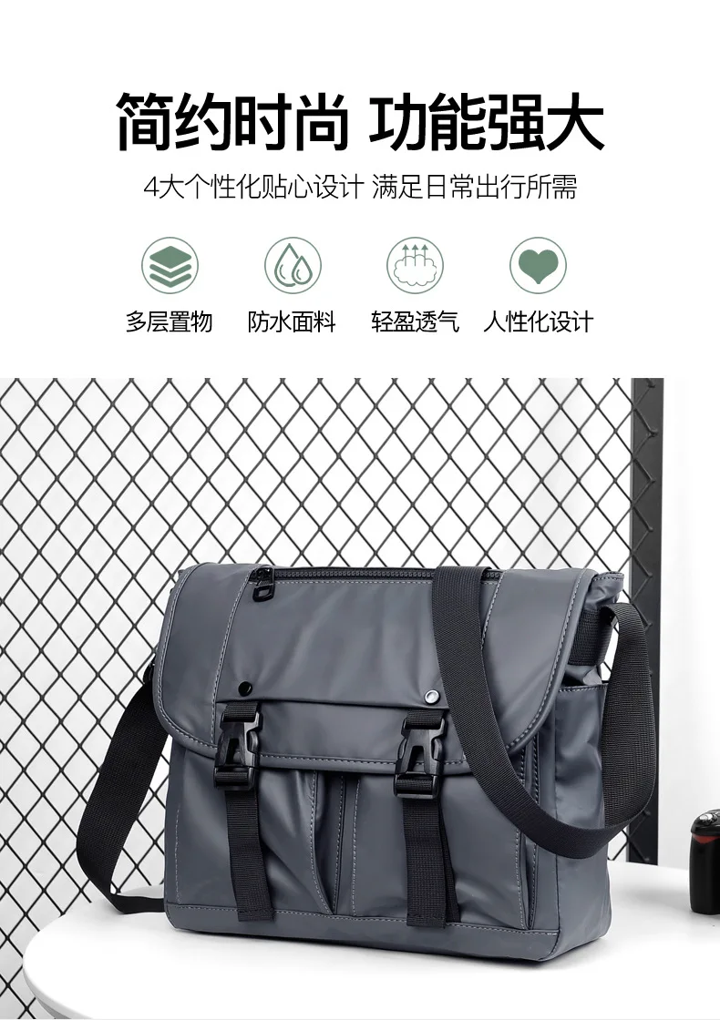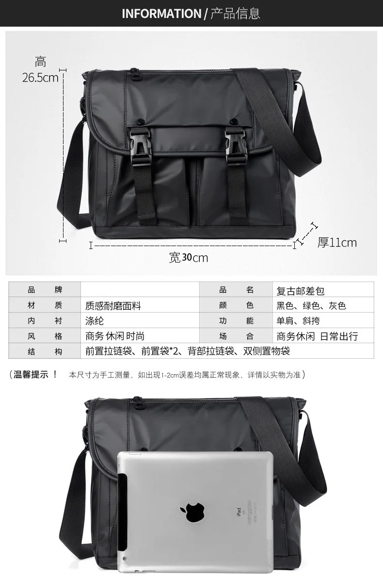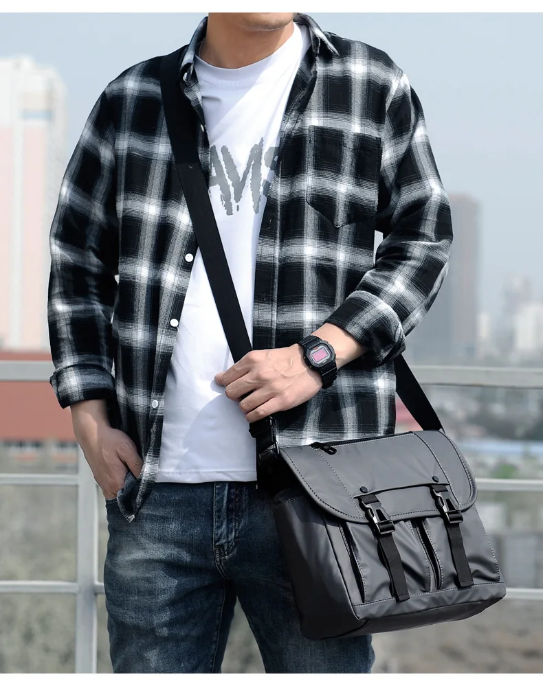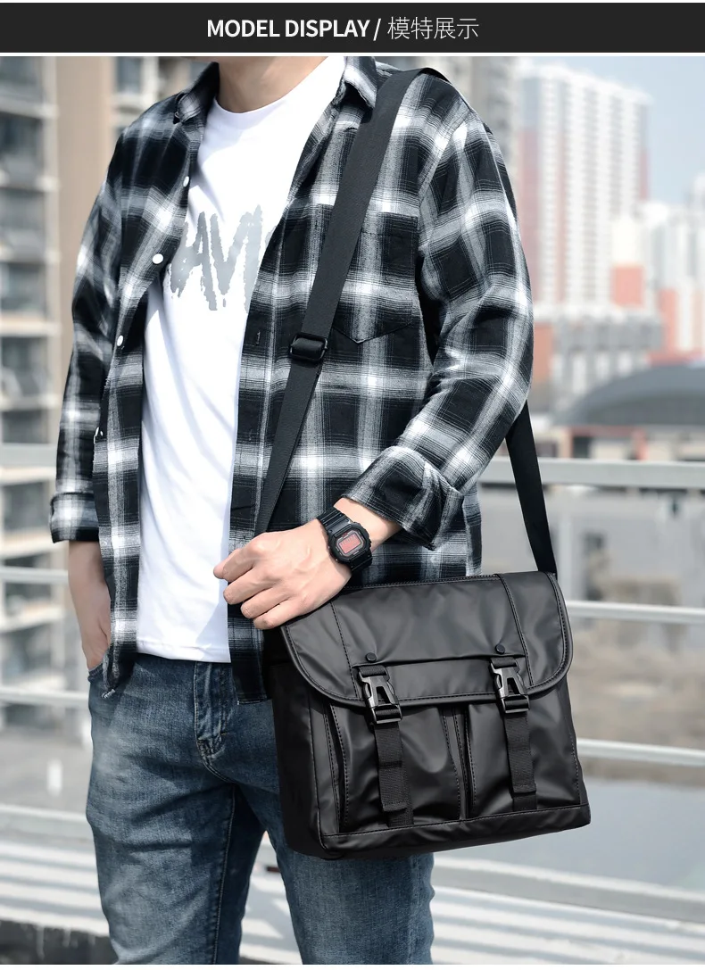 Large Capacity Men's Shoulder Bag Waterproof Casual Simple Handbag Business Retro Crossbody Bag Nylon Messenger Bag
