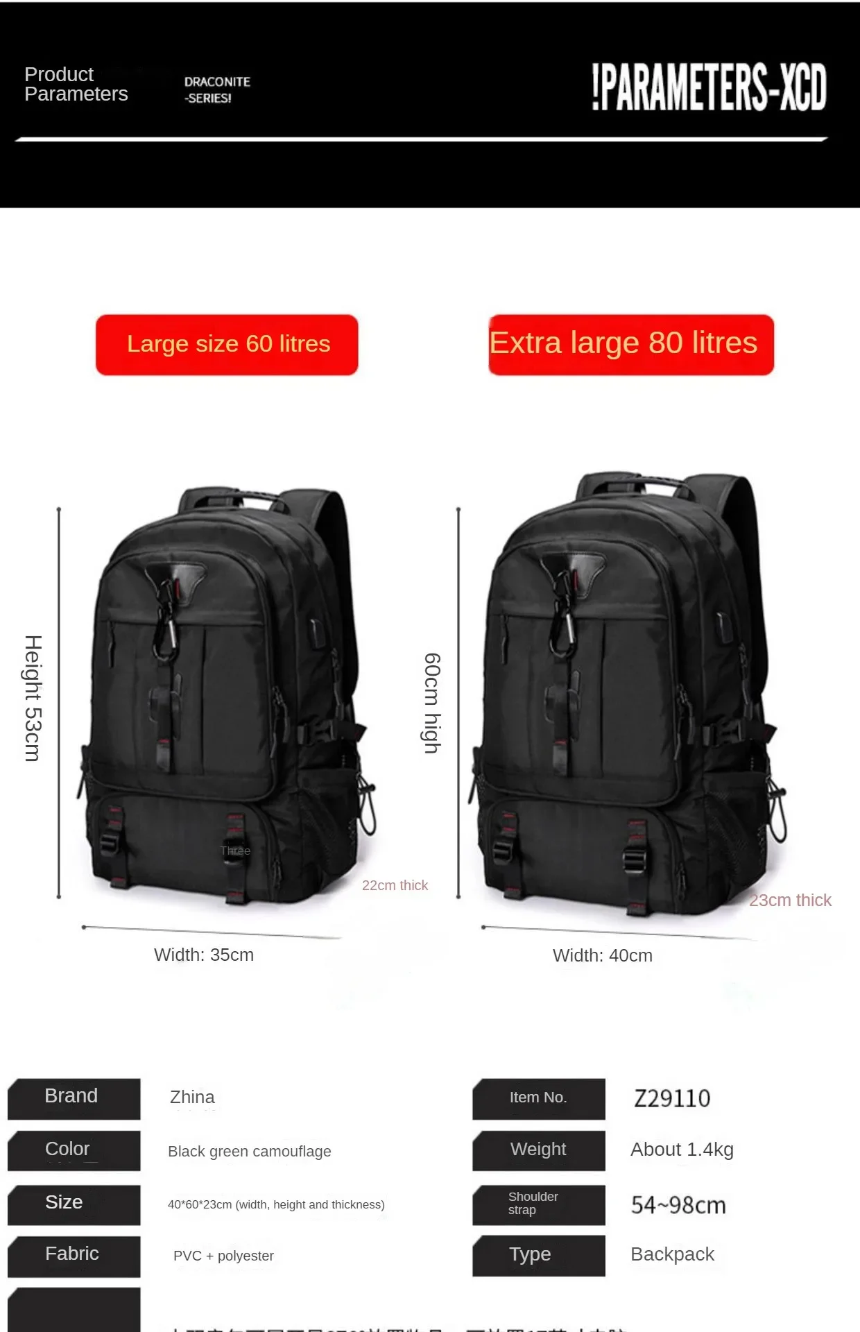 80L Size : 40cm(Width)*60cm(Height)*23cm(Thickness)