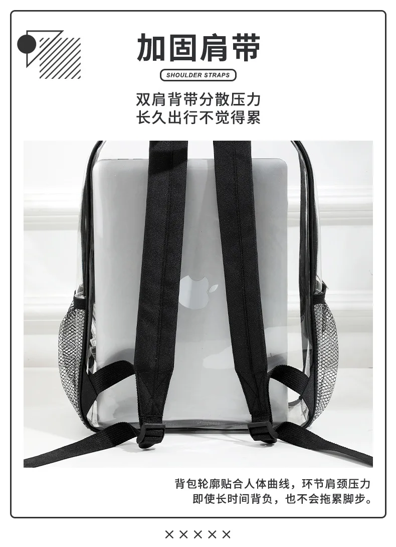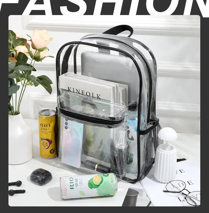 Large Capacity Transparent Backpack PVC Casual Zipper Waterproof Clear Backpack School Bag Travel Bagpack Vacation Beach bag