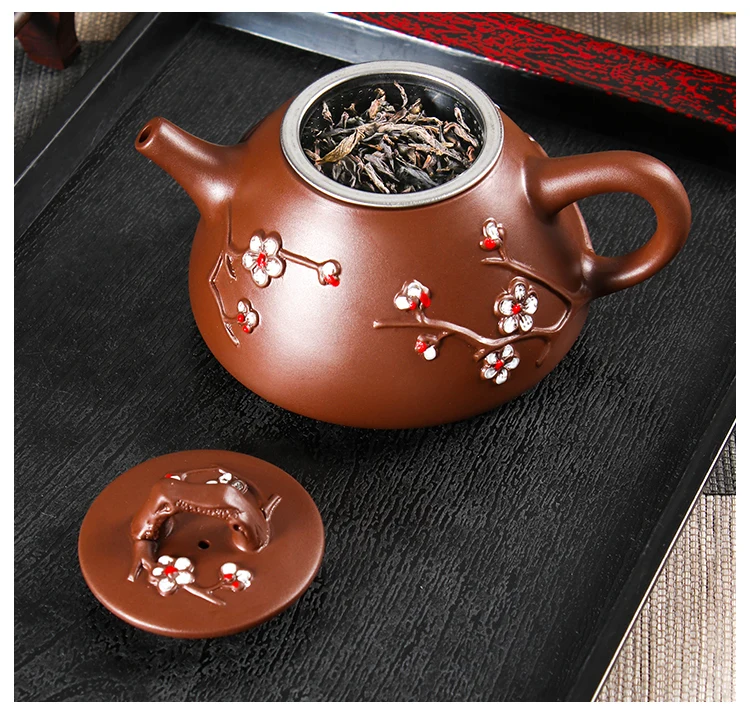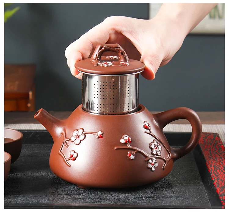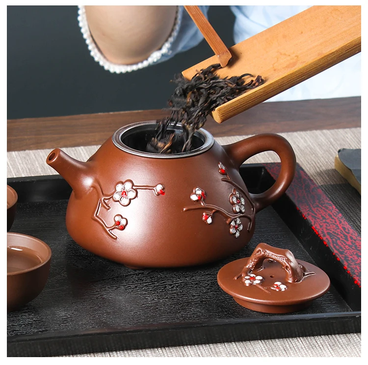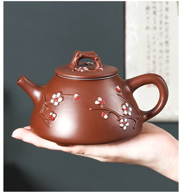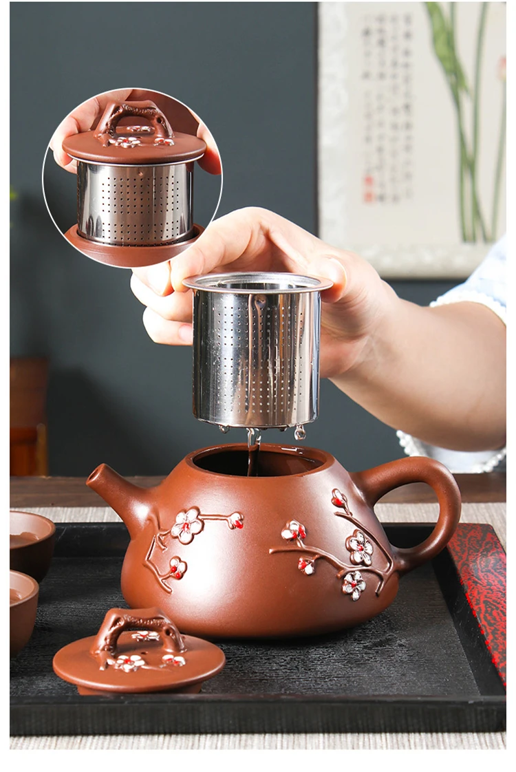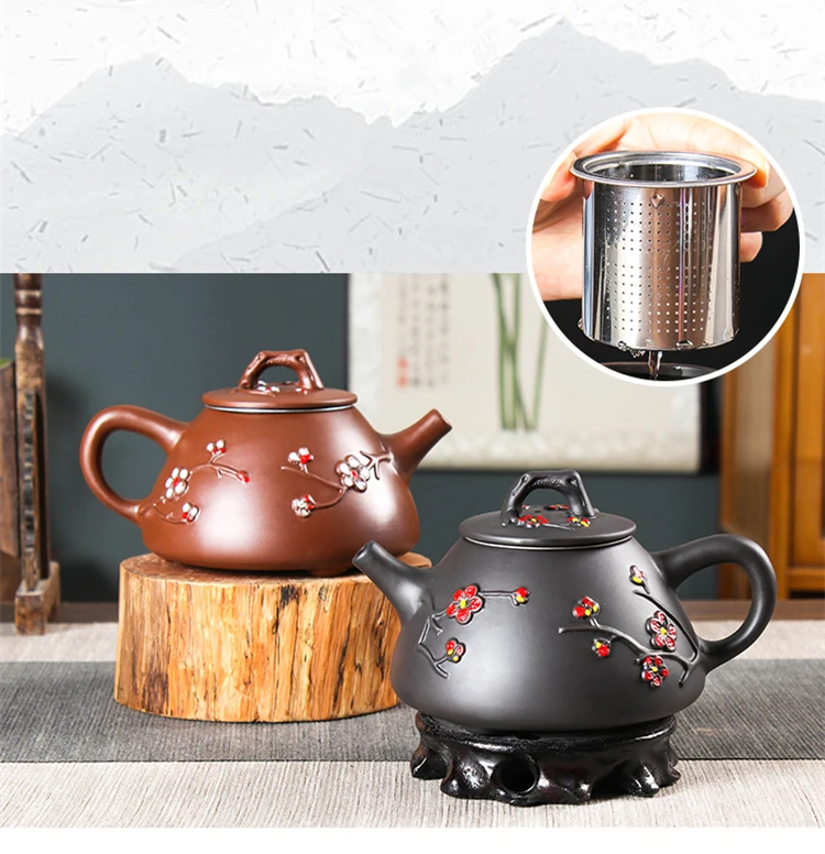 Large Capacity Yixing Clay Teapot, Hand Colored Stone Ladle, Plum Pot, Stainless Steel Filter, Handmade Kungfu Tea Kettle