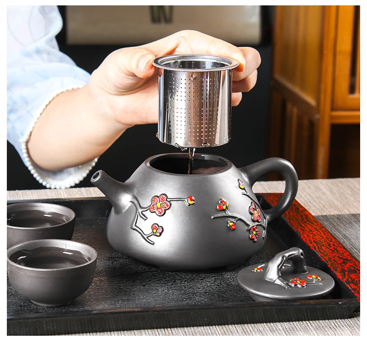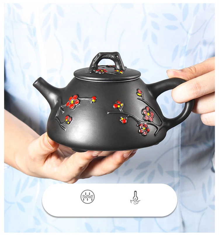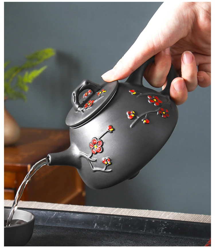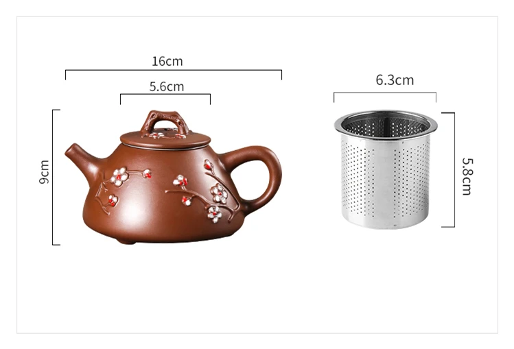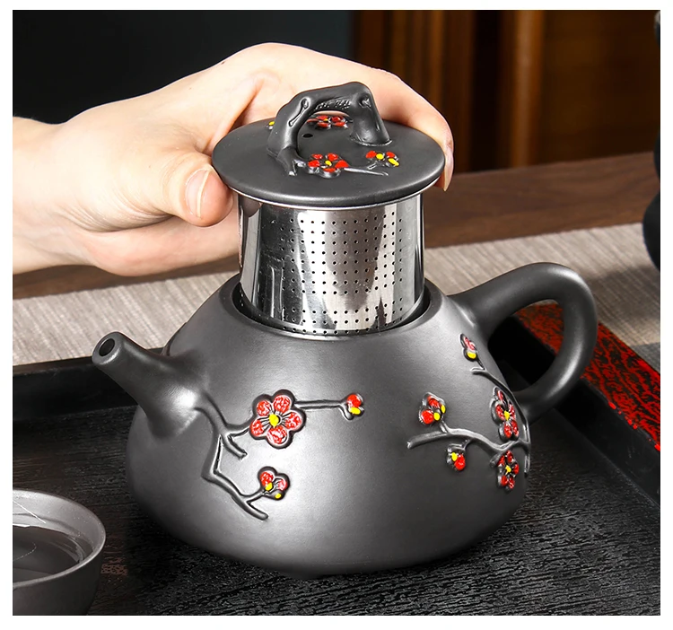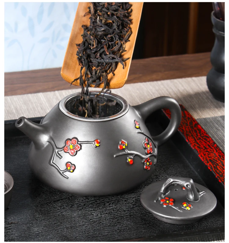 Large Capacity Yixing Clay Teapot, Hand Colored Stone Ladle, Plum Pot, Stainless Steel Filter, Handmade Kungfu Tea Kettle