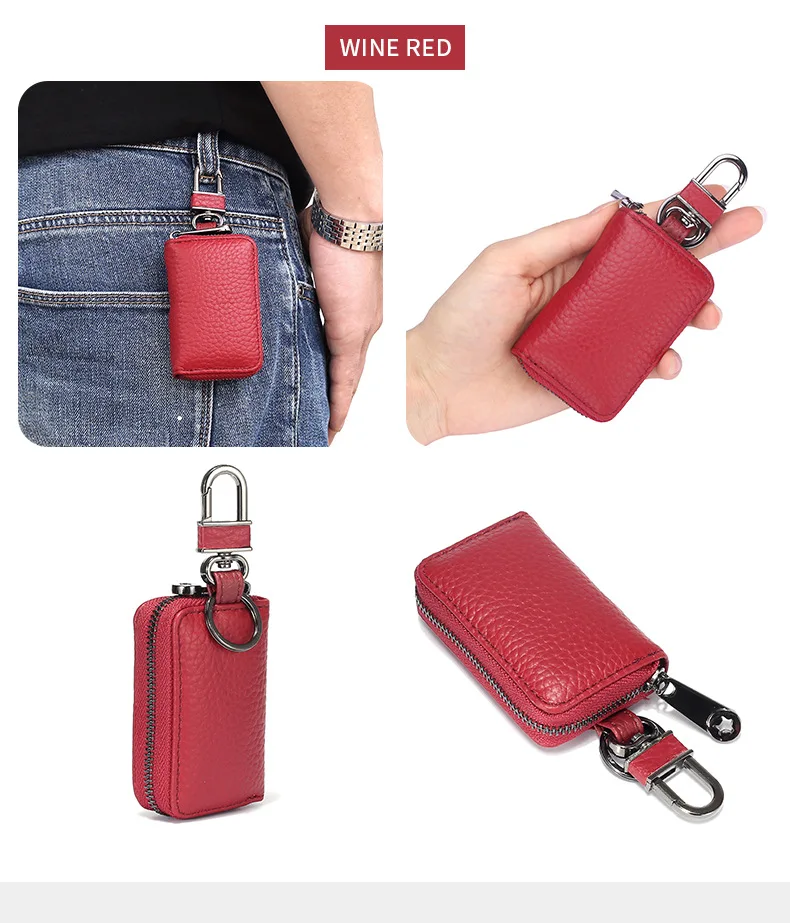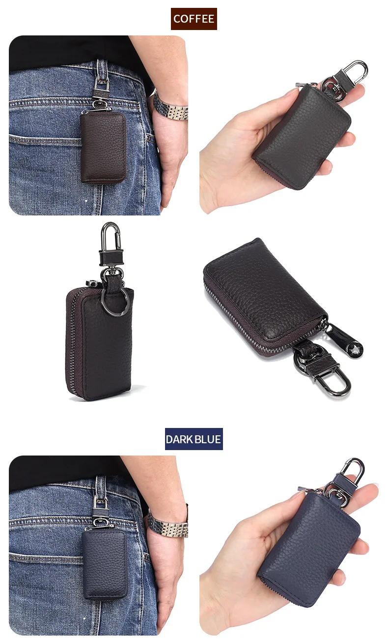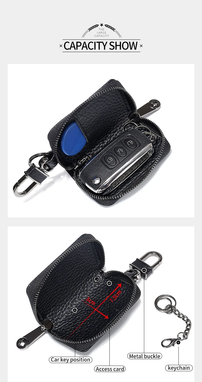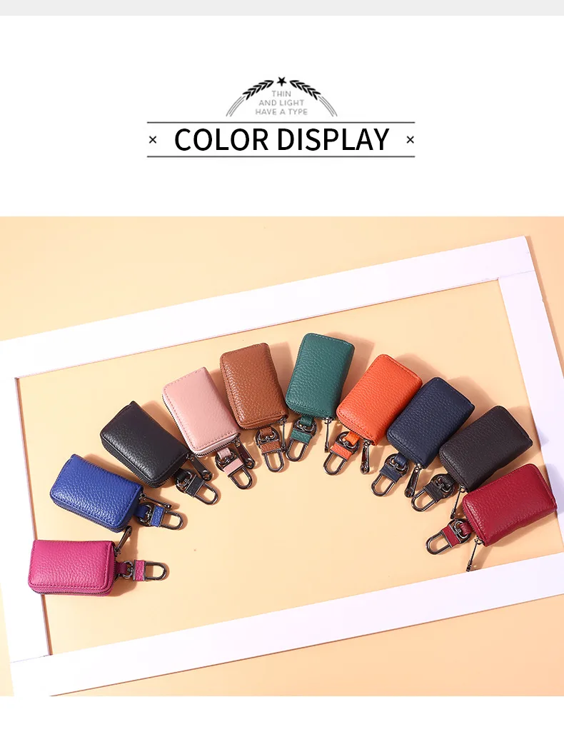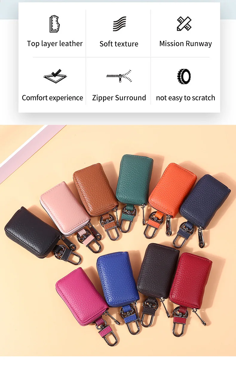 Leather Car Key Wallets Men Key Holder Housekeeper Mini Pouch Purse Keys Organizer Women Keychain Covers Zipper Key Case Bag