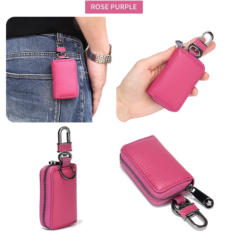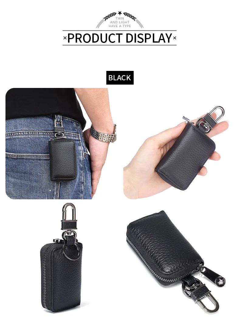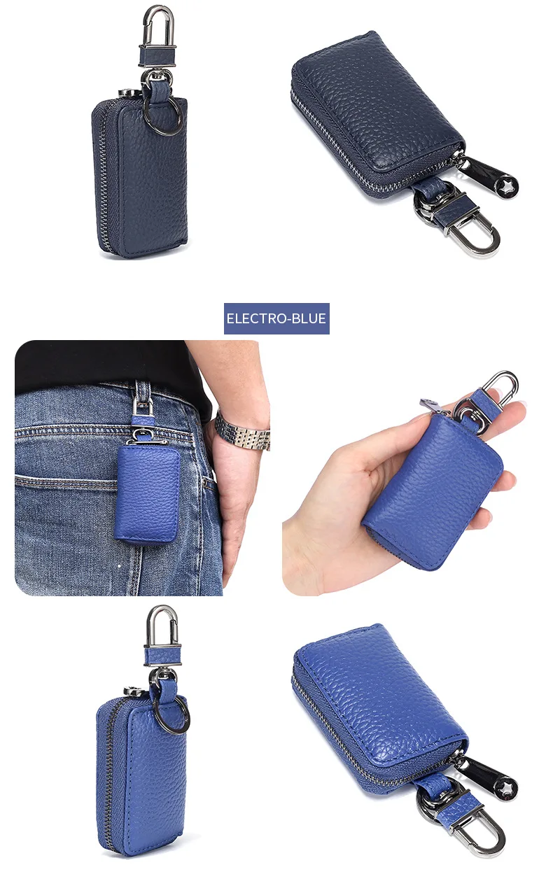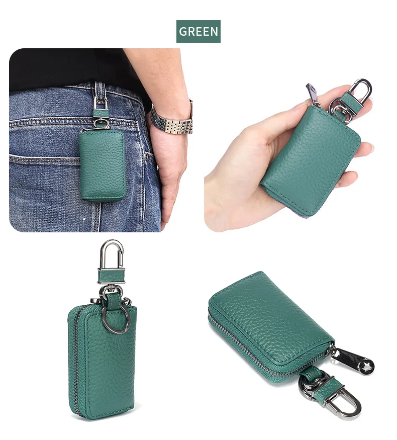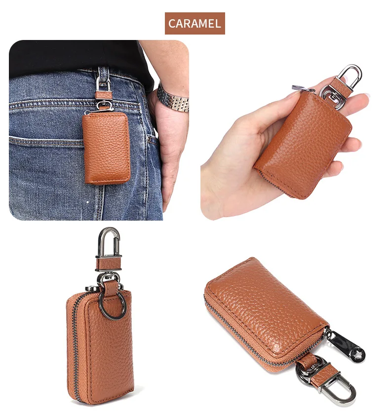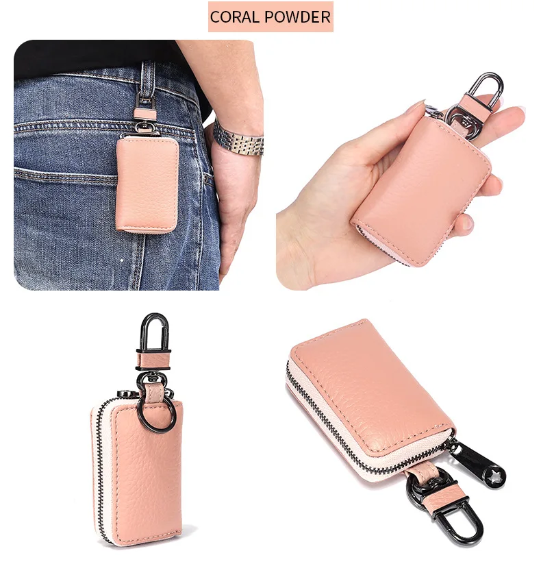 Leather Car Key Wallets Men Key Holder Housekeeper Mini Pouch Purse Keys Organizer Women Keychain Covers Zipper Key Case Bag