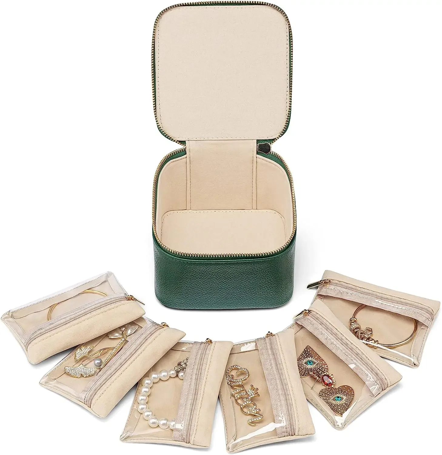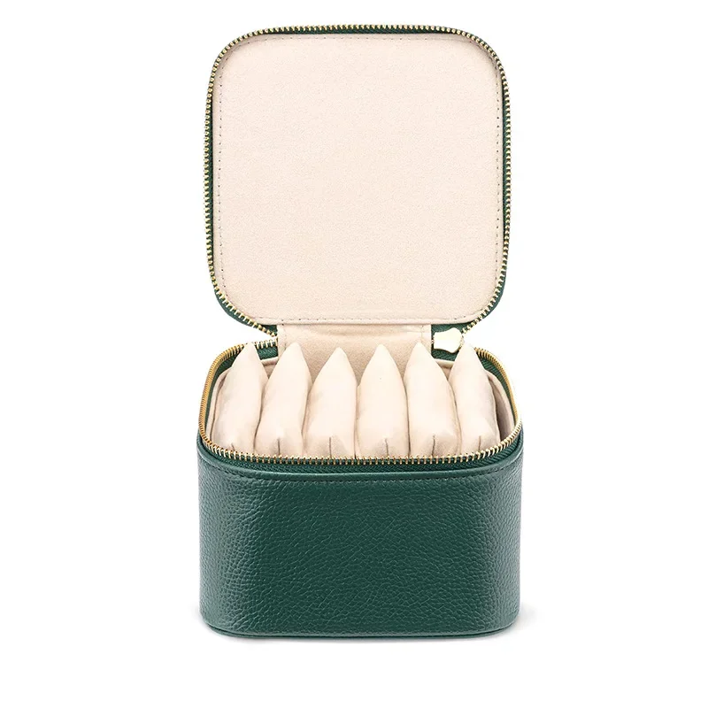 Customized cardamom hardware handle, hardware zipper for easy storage and pulling; velvet lining to prevent jewelry scratching; lychee grain leather material, durable;
