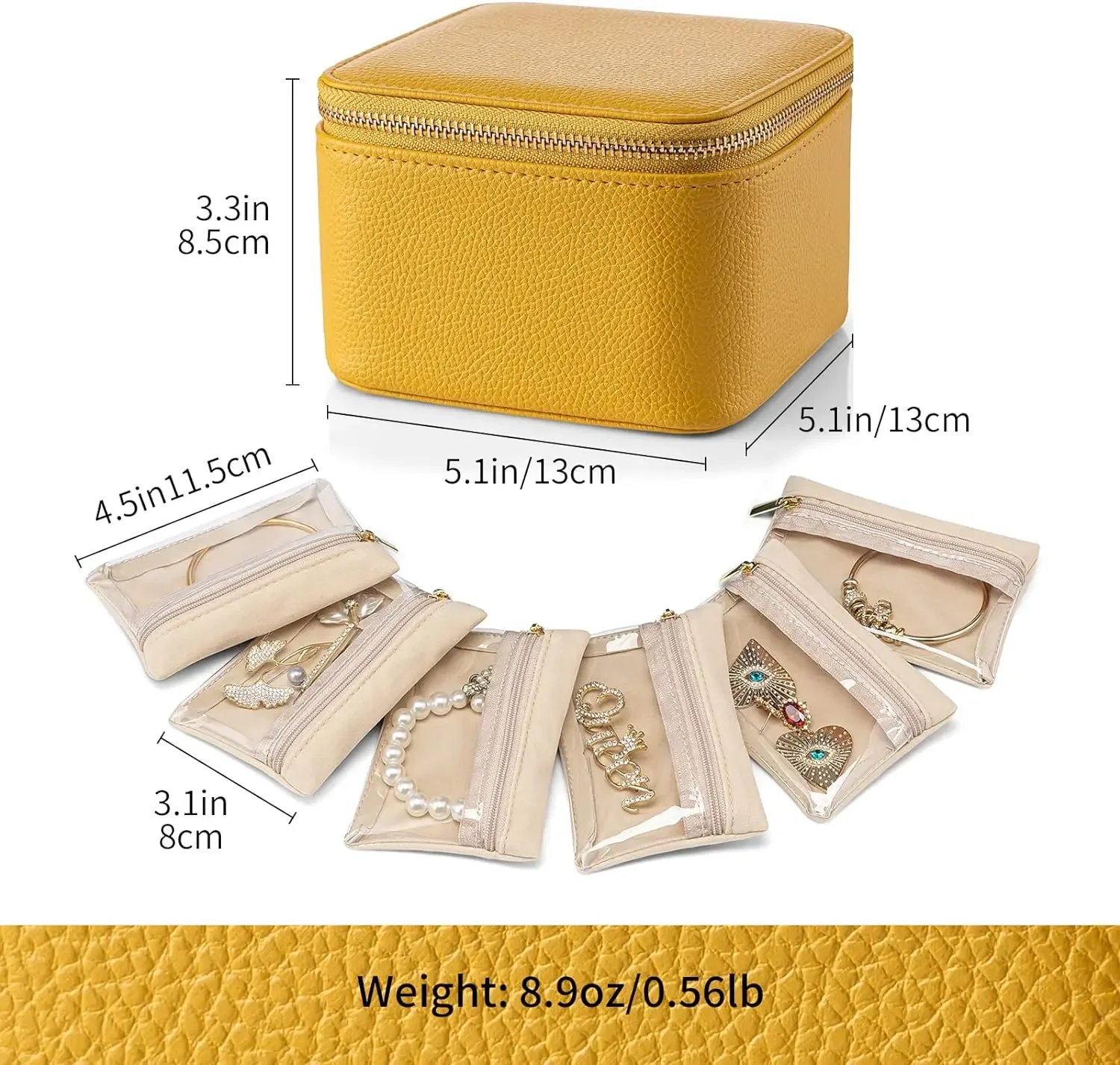 Lychee grain leather jewelry storage box, including 6 velvet transparent storage bags, can be carried separately or placed inside the jewelry box storage, to prevent jewelry oxidation affect the use.