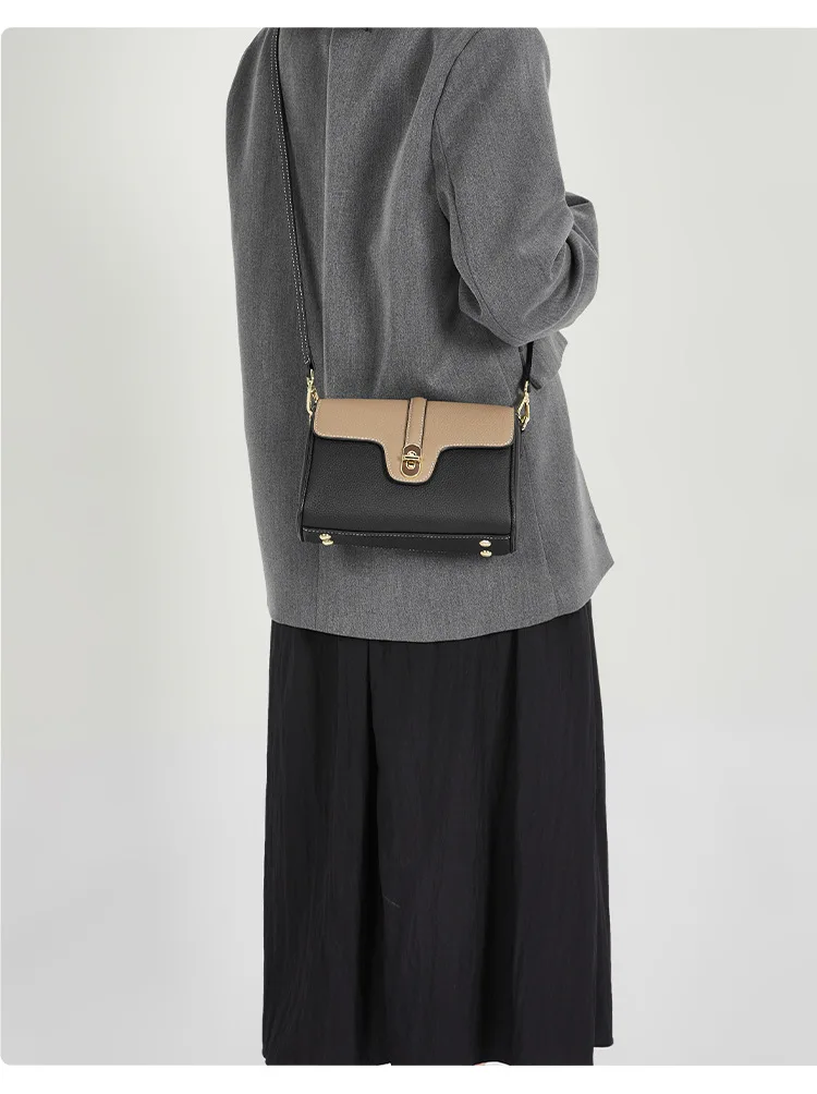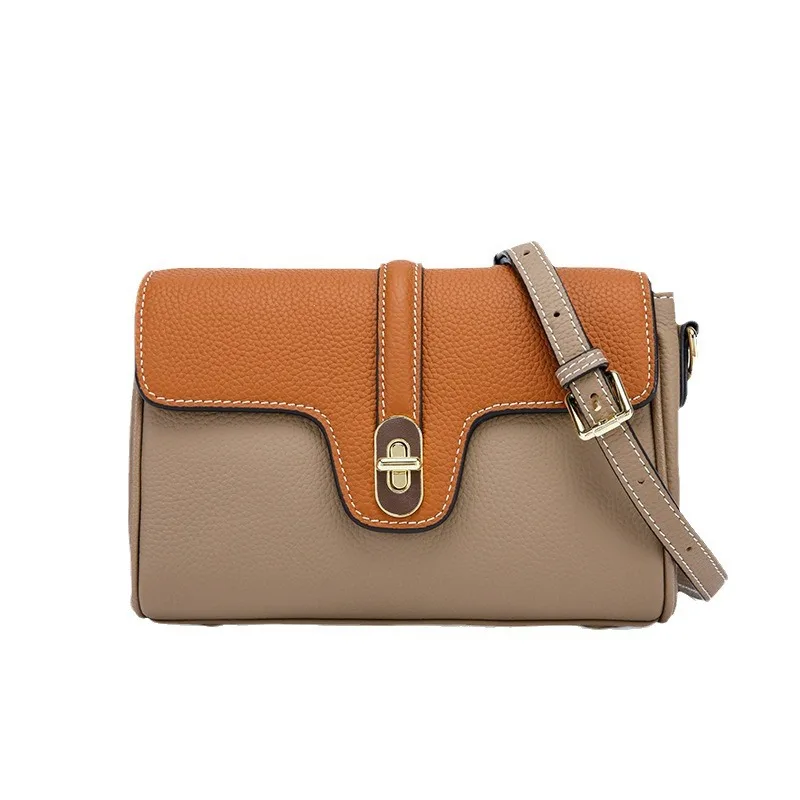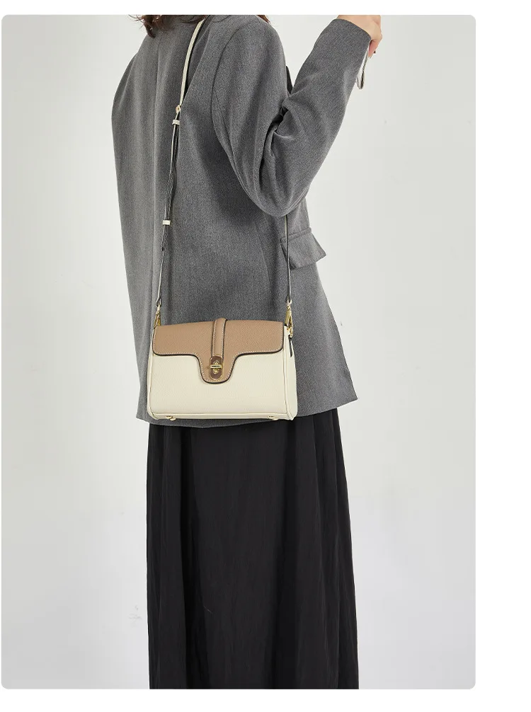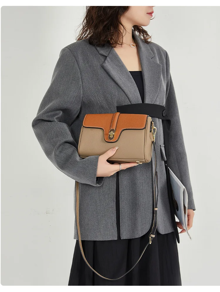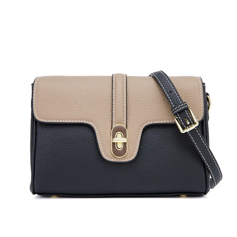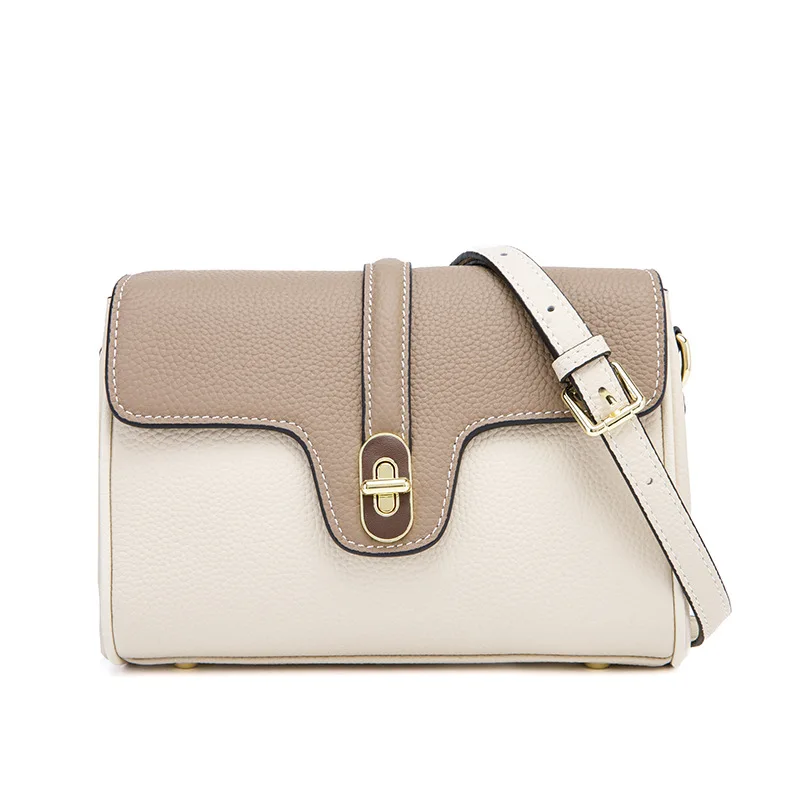 Leather Shoulder Bag Contrasting Colors Simple Small Golden Buckle Square Bag Advanced Sense Two-color Messenger Bags for Women
