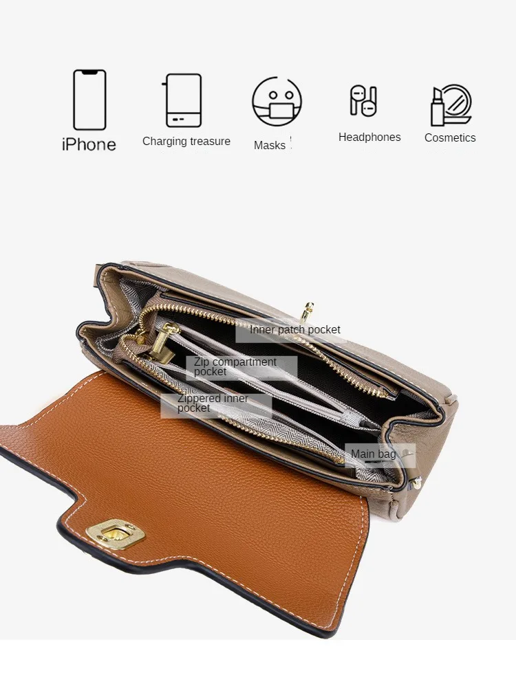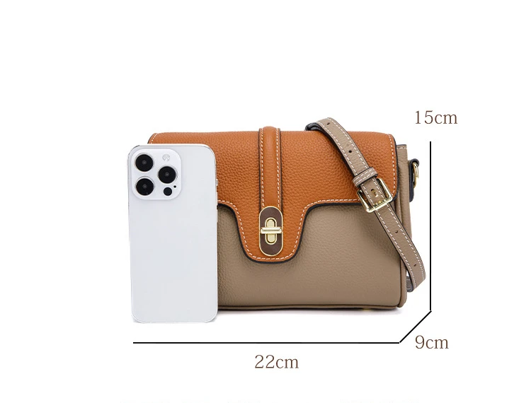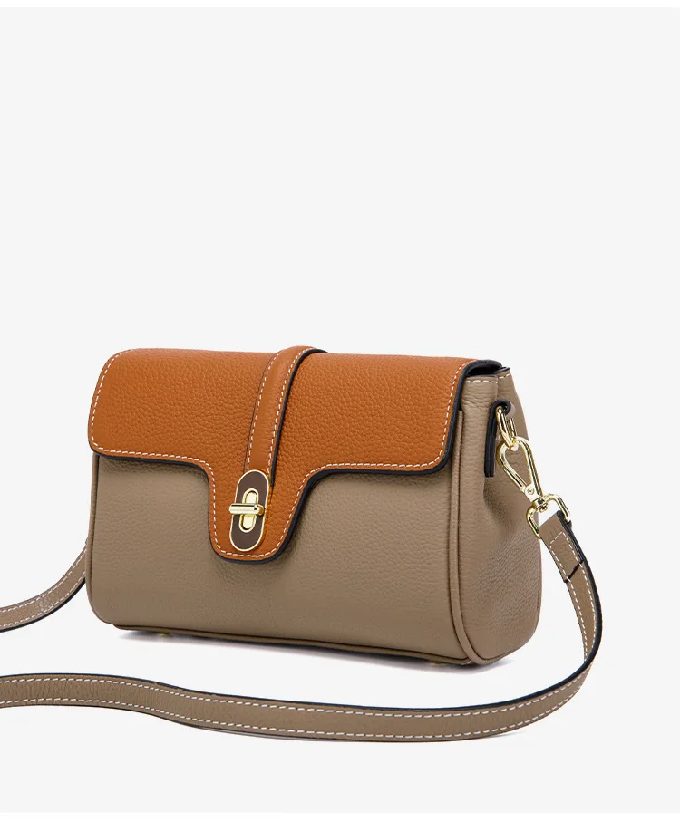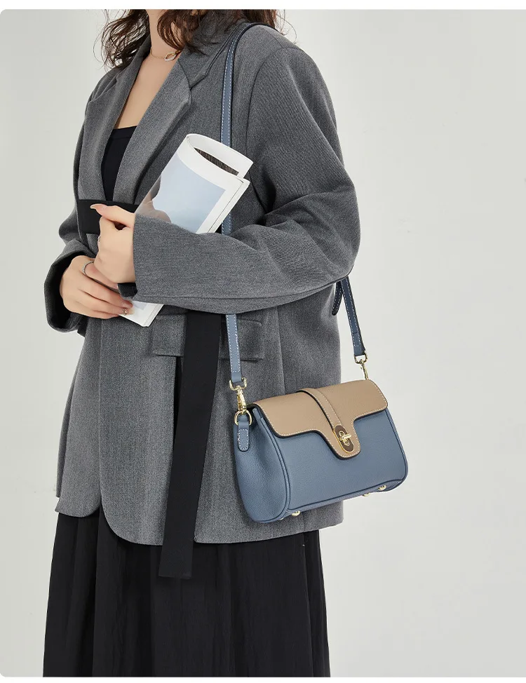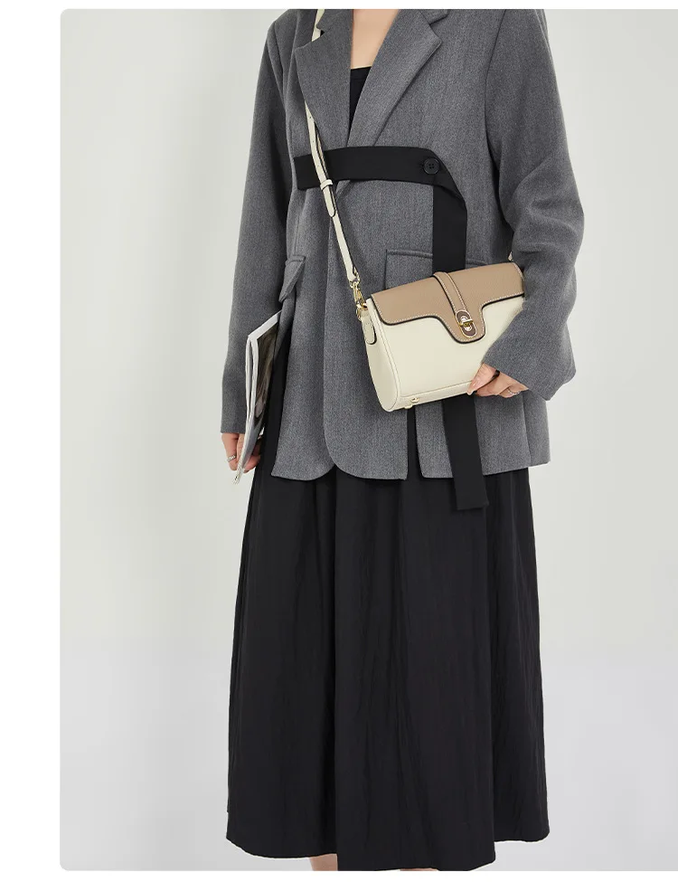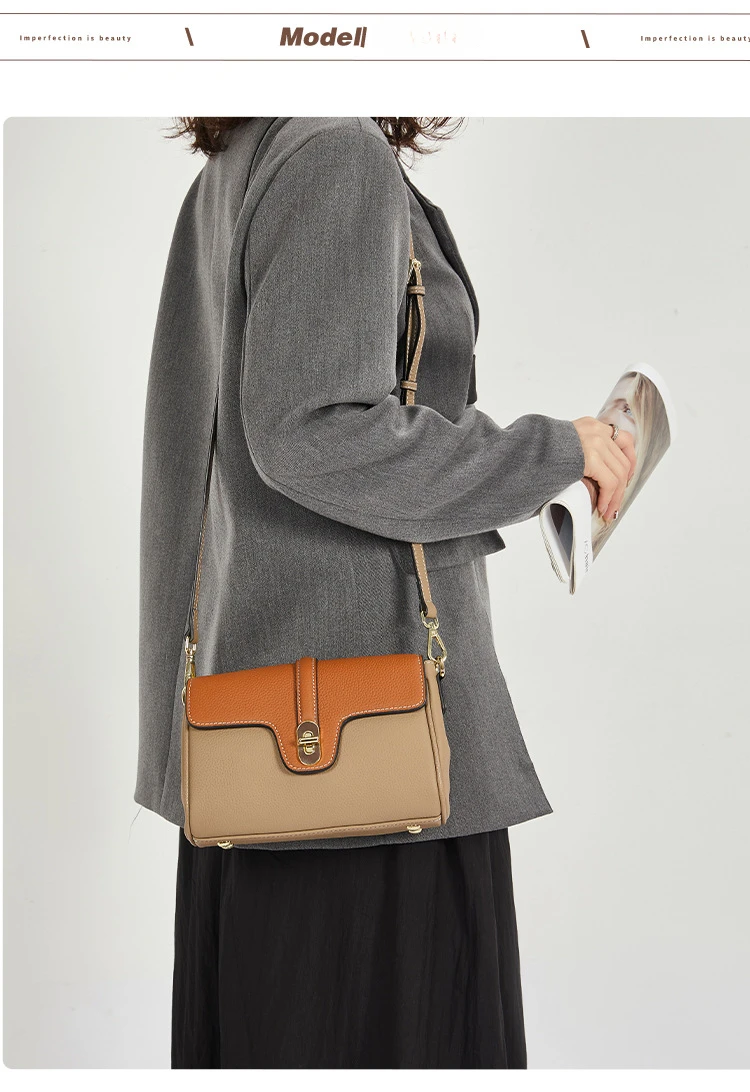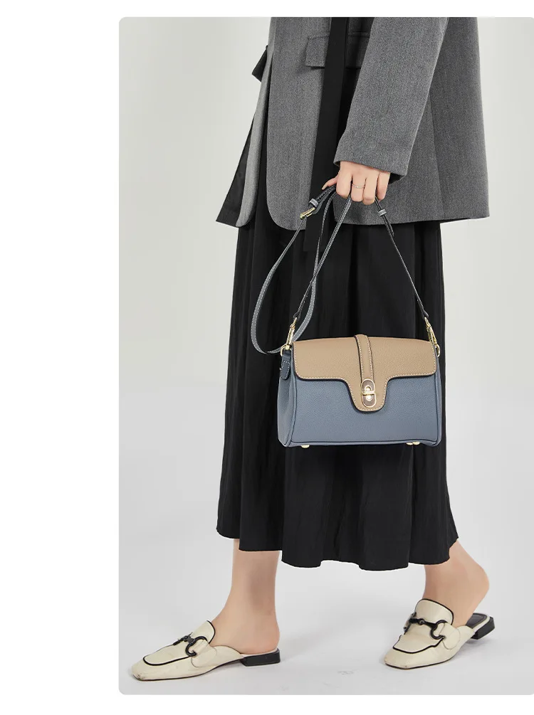 Leather Shoulder Bag Contrasting Colors Simple Small Golden Buckle Square Bag Advanced Sense Two-color Messenger Bags for Women