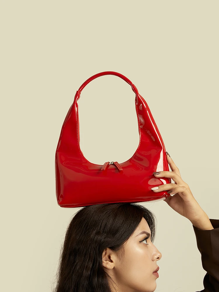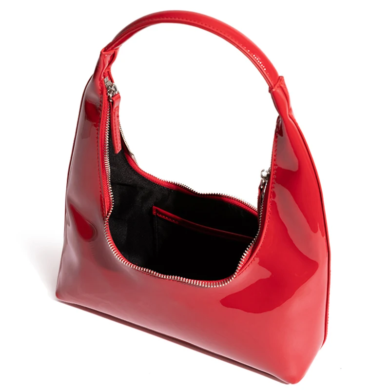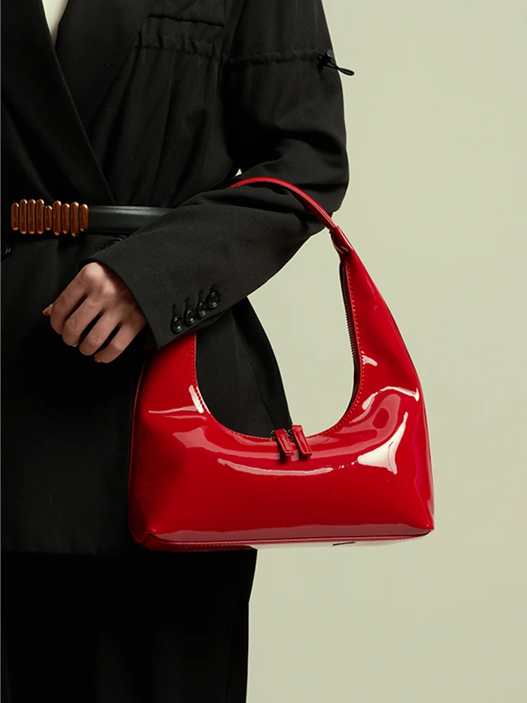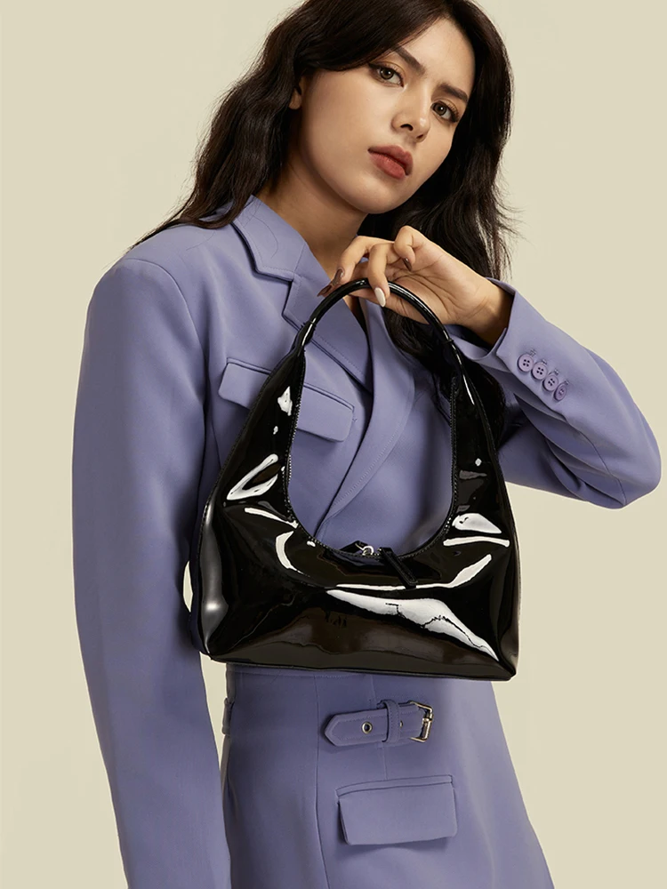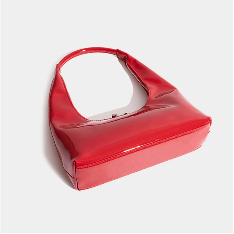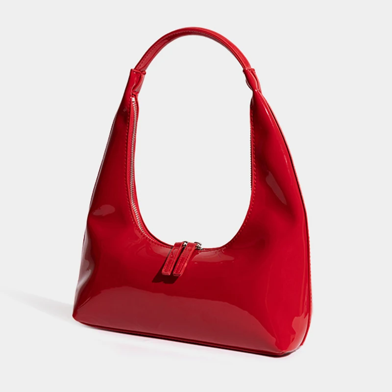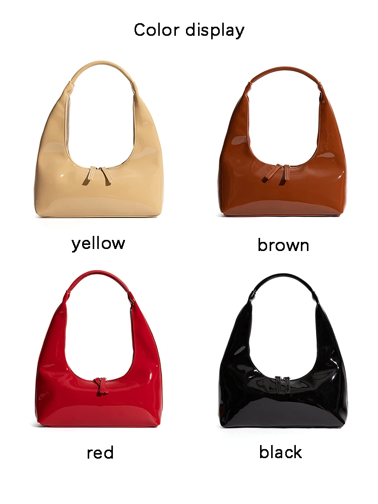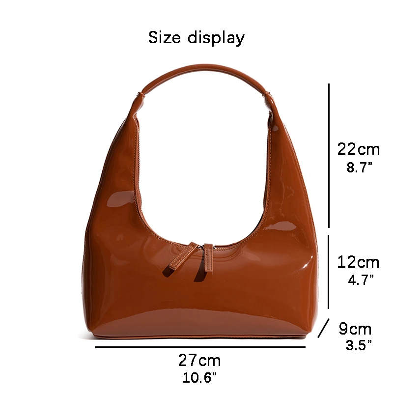 Patent Leather Half Moon Bag Size: Length: 27cm (10.6in) Thickness: 9cm (3.5in) Height: 12cm (4.7in) Shoulder strap height : 22cm (8.7in) (Manual measurement error exists 1-3cm)